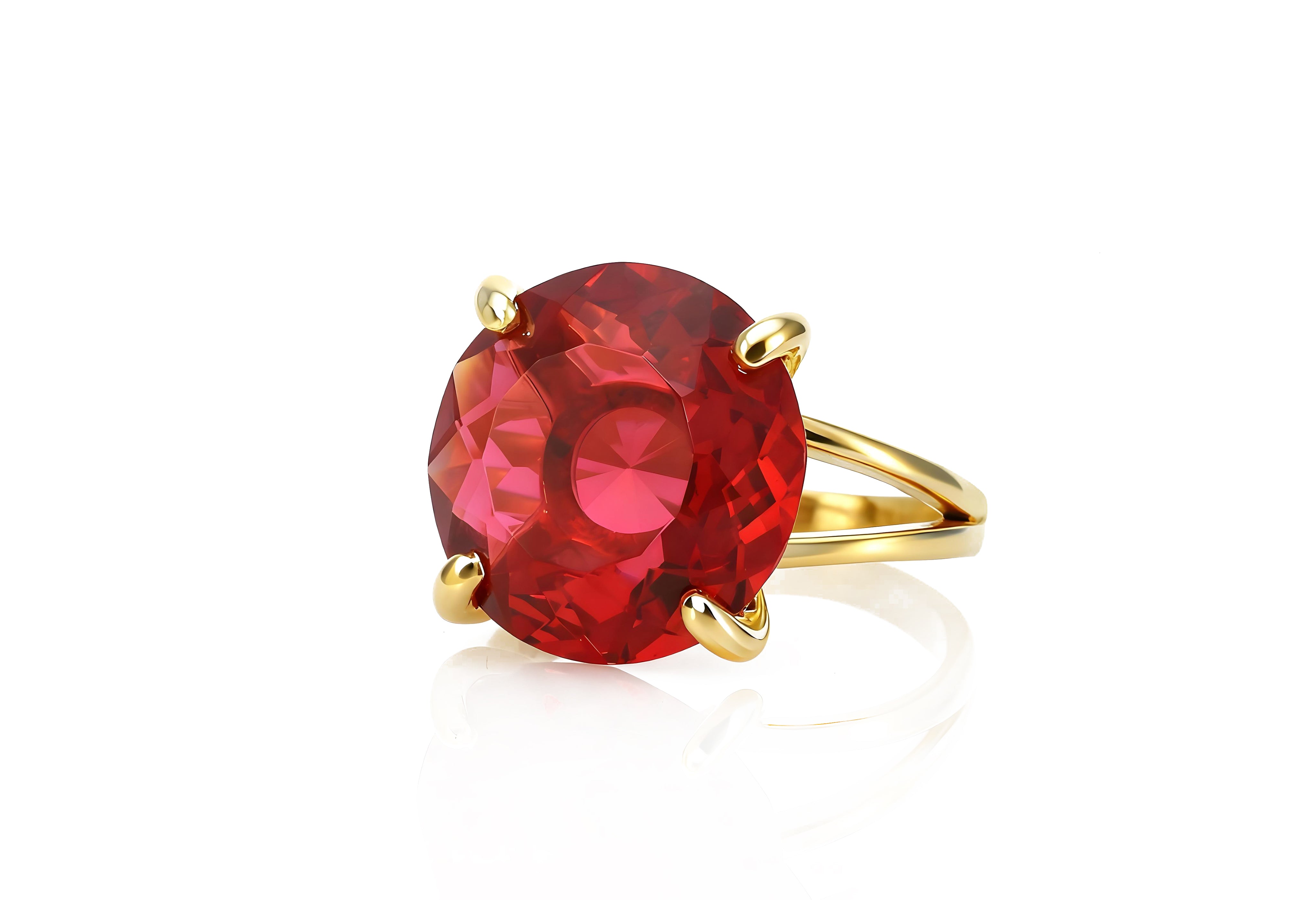 This pink tourmaline ring features a dazzling round-cut gemstone set in polished 18k gold vermeil. Its radiant pink hue captures the light beautifully, creating a vivid and timeless sparkle. Designed with a smooth band and sturdy prongs, this ring offers a perfect balance of bold color and refined style, ideal for October birthdays or as an elegant statement piece.