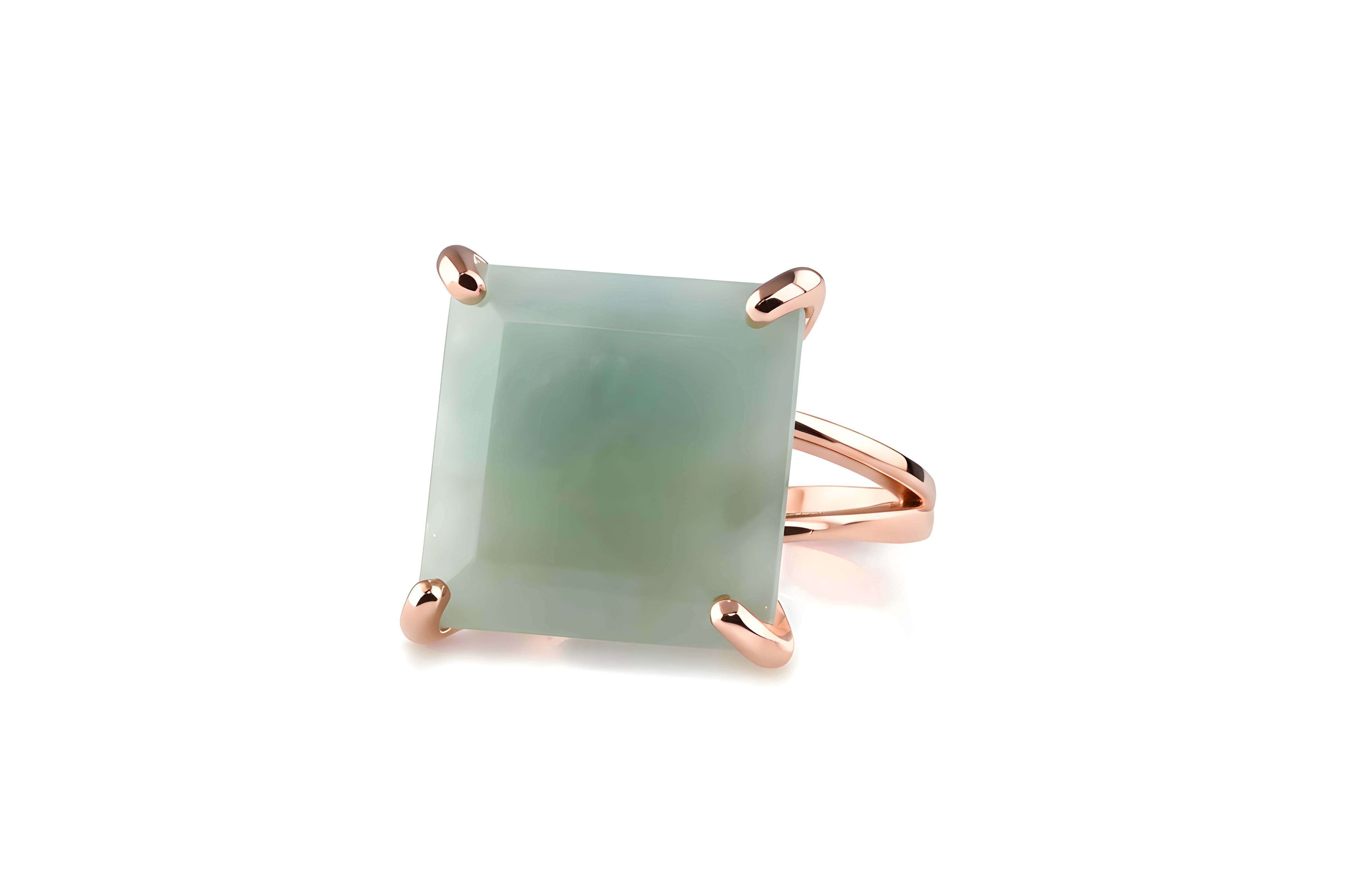 This rose gold aquamarine ring features a square princess-cut stone in a delicate double split band design. The soft blue of the aquamarine radiates calm and clarity — perfect for those born in March or anyone drawn to serene beauty. Crafted in polished pink gold, this handmade statement ring blends modern geometry with timeless charm, making it an ideal gift or centerpiece piece for your collection.