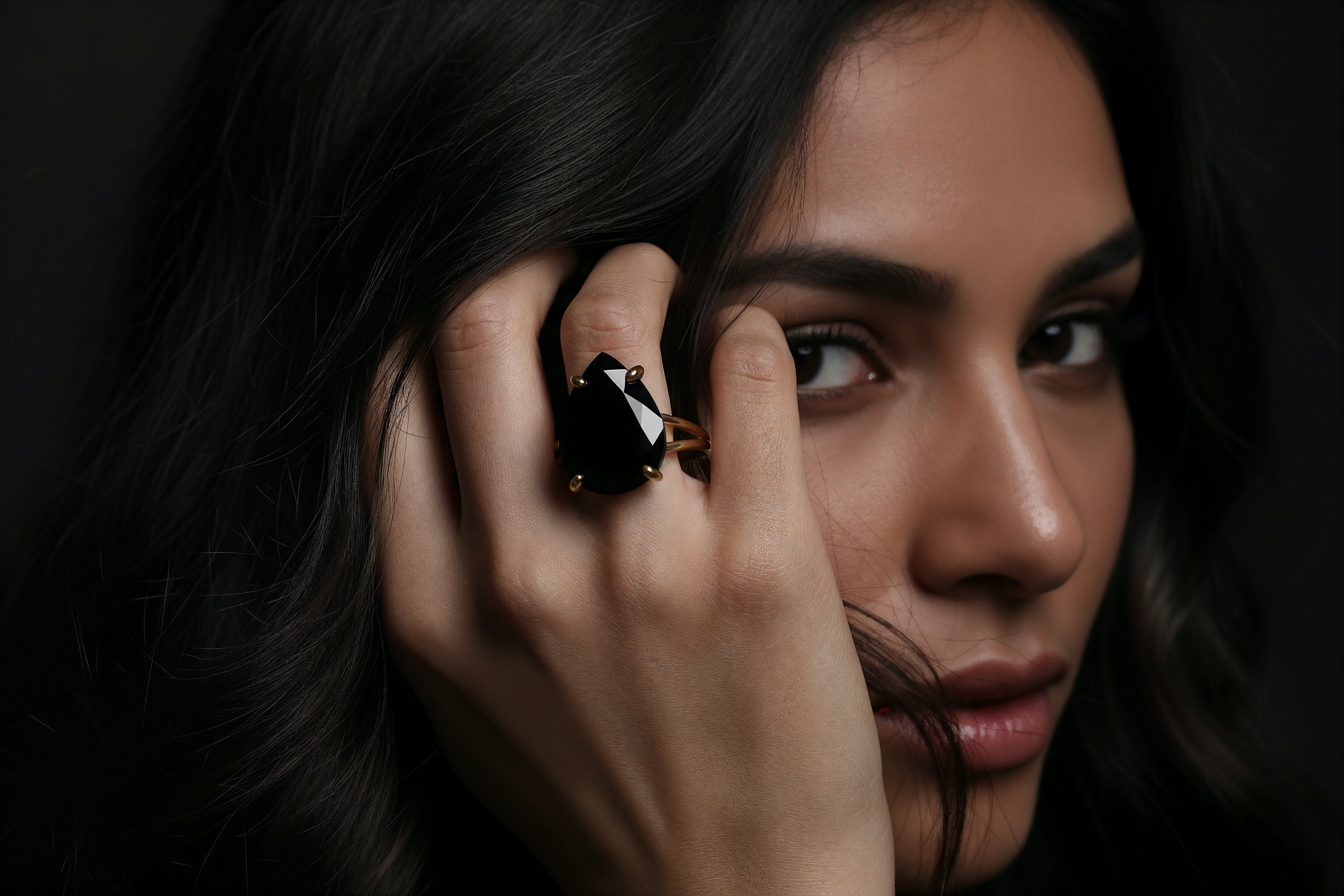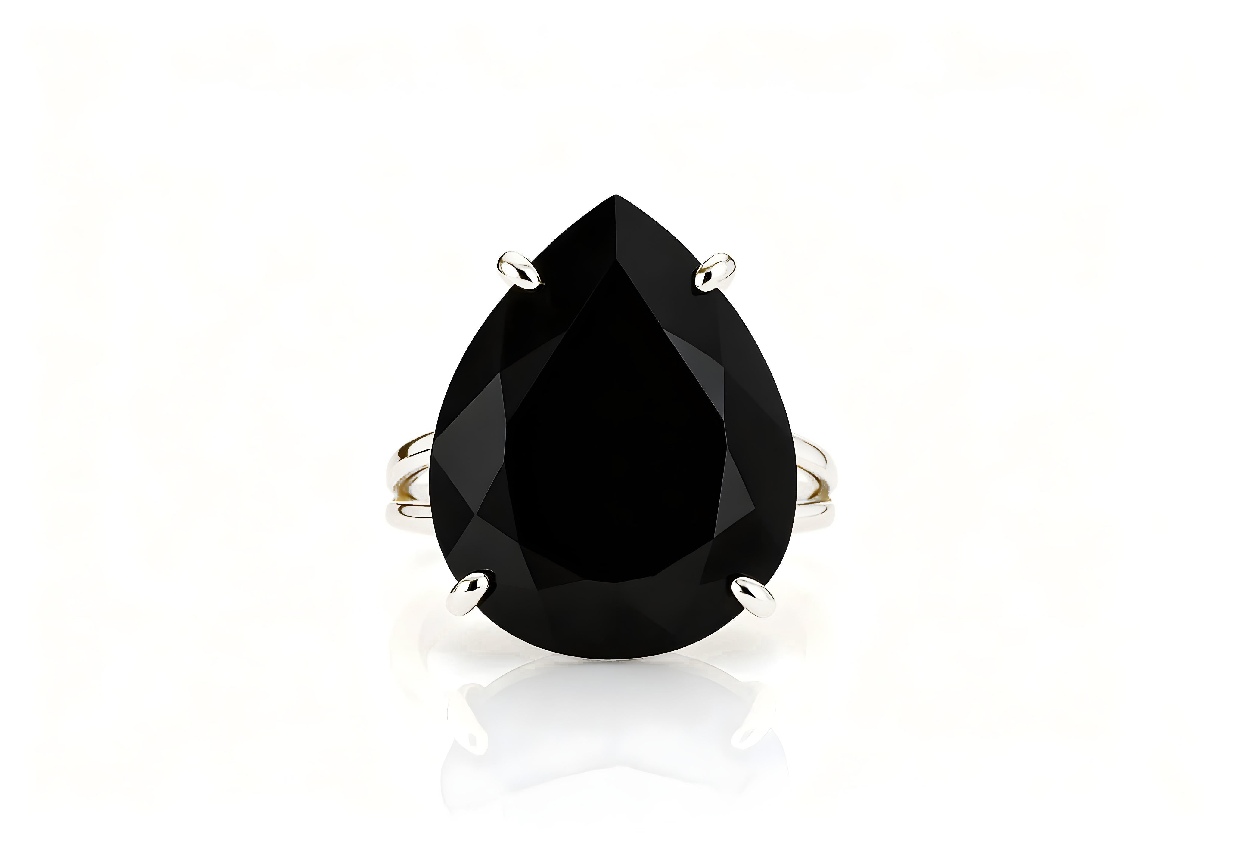 This sterling silver ring showcases a pear-shaped black onyx gemstone set in a polished teardrop design. Known for its grounding and protective qualities, black onyx adds strength and elegance to this fine silver piece. Crafted as a cocktail-style ring, it combines timeless beauty with modern appeal. Handcrafted with care, this gemstone ring is perfect for women seeking a meaningful gift or a bold addition to their jewelry collection.