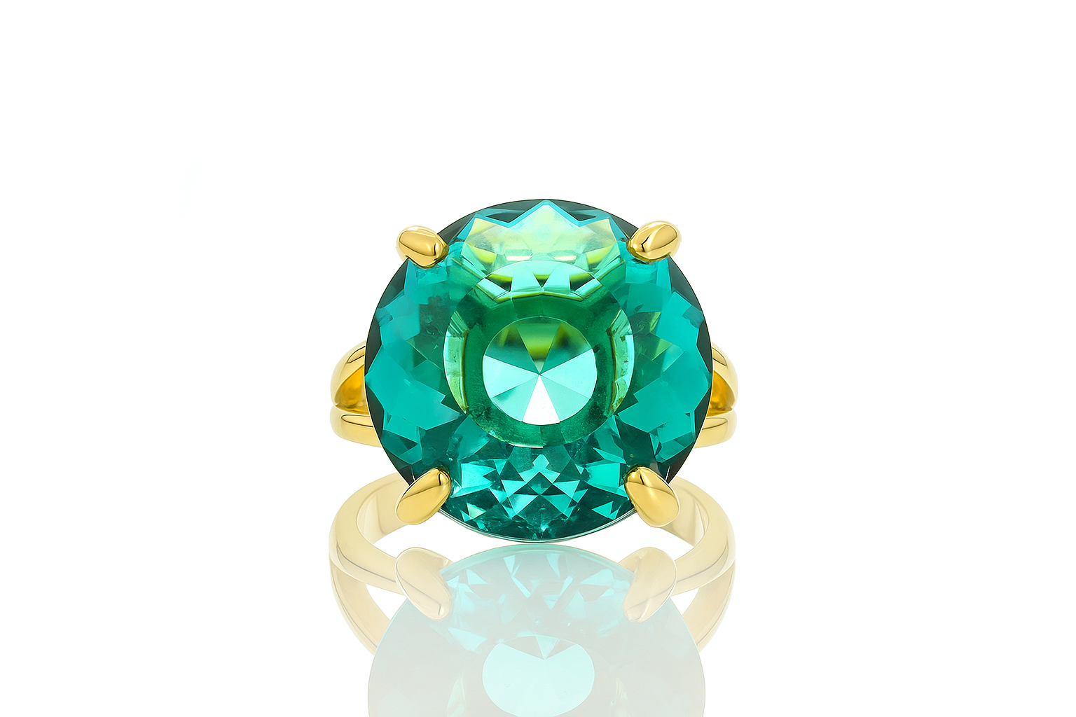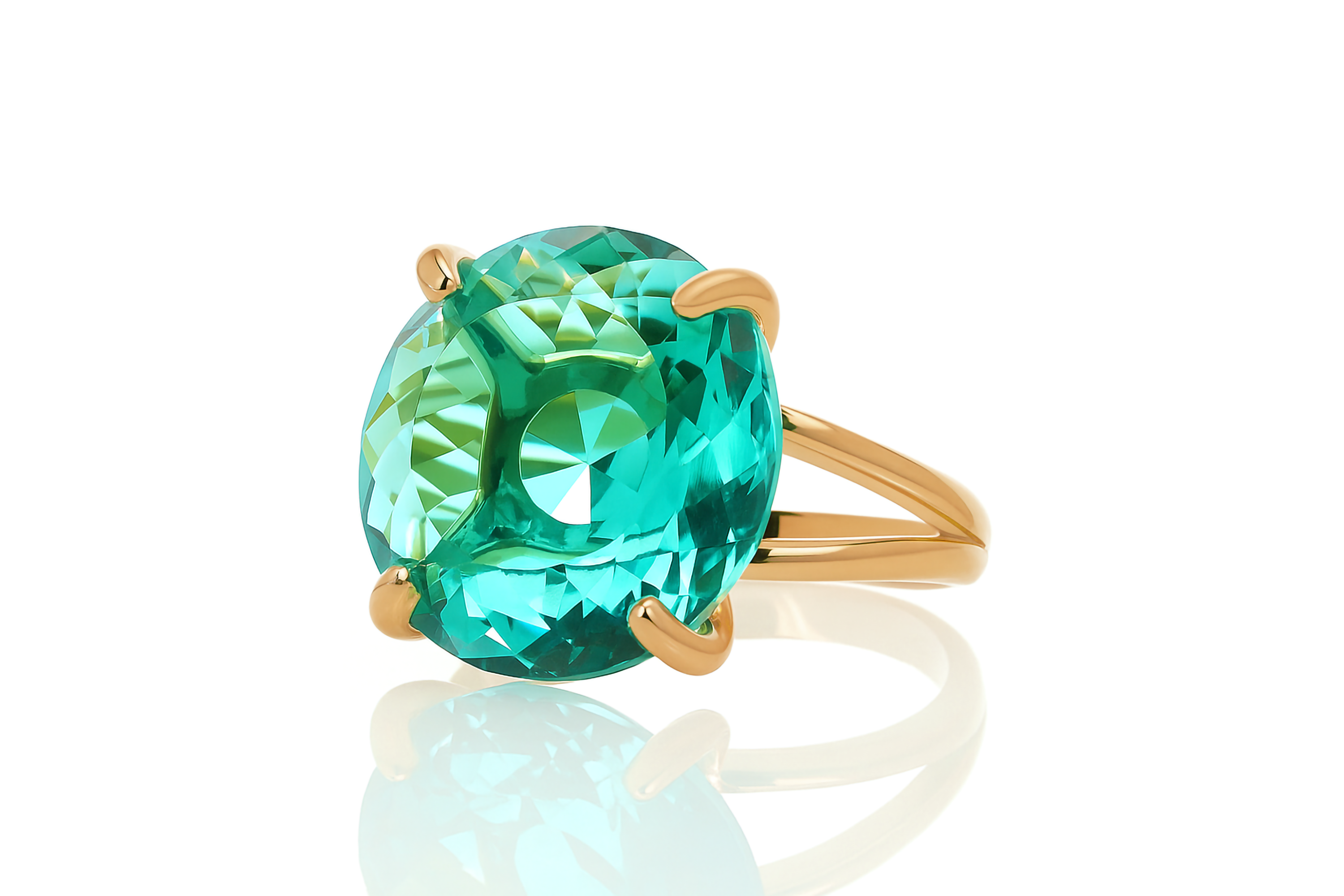 Blue Round Cut Tourmaline Gold Gemstone Ring