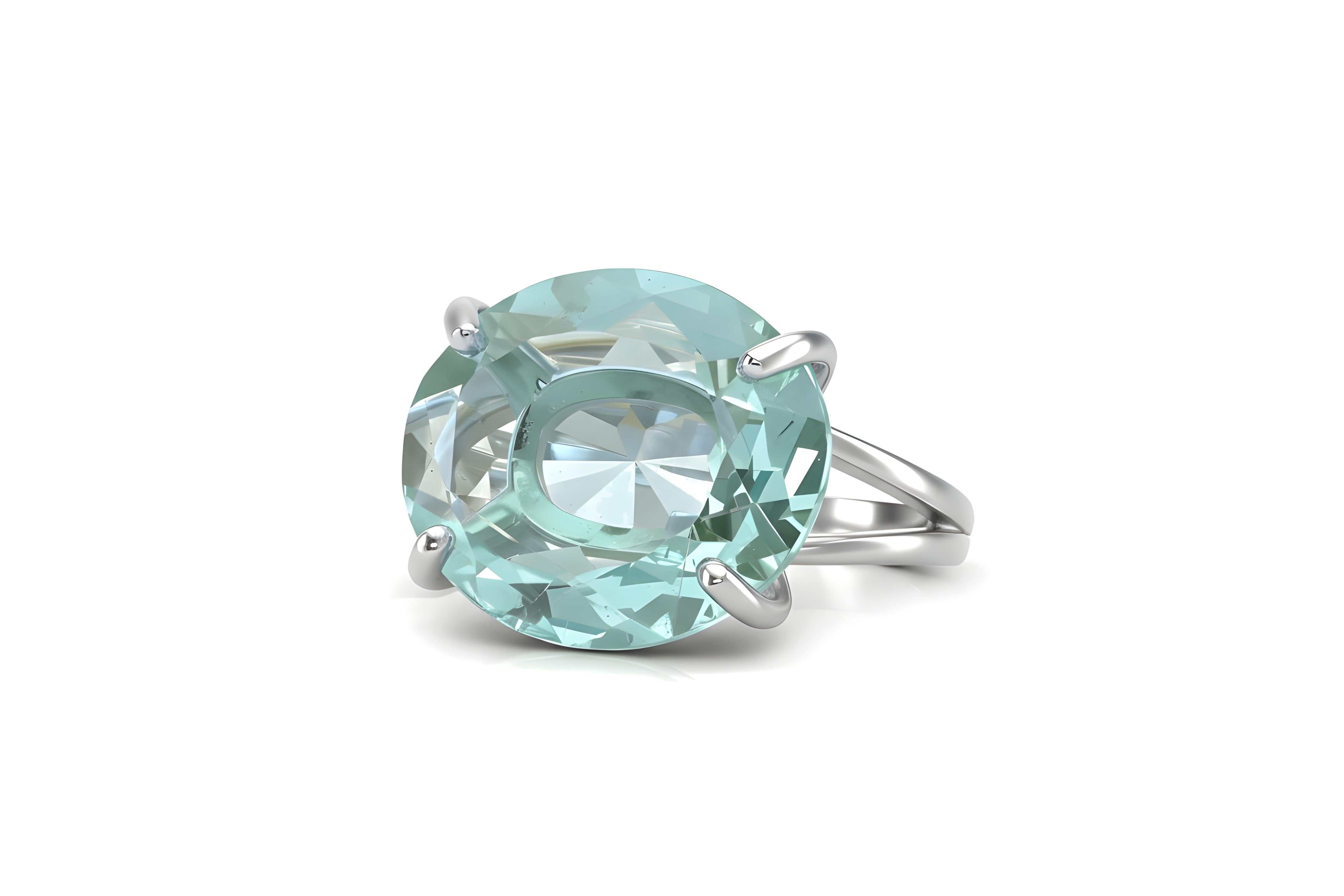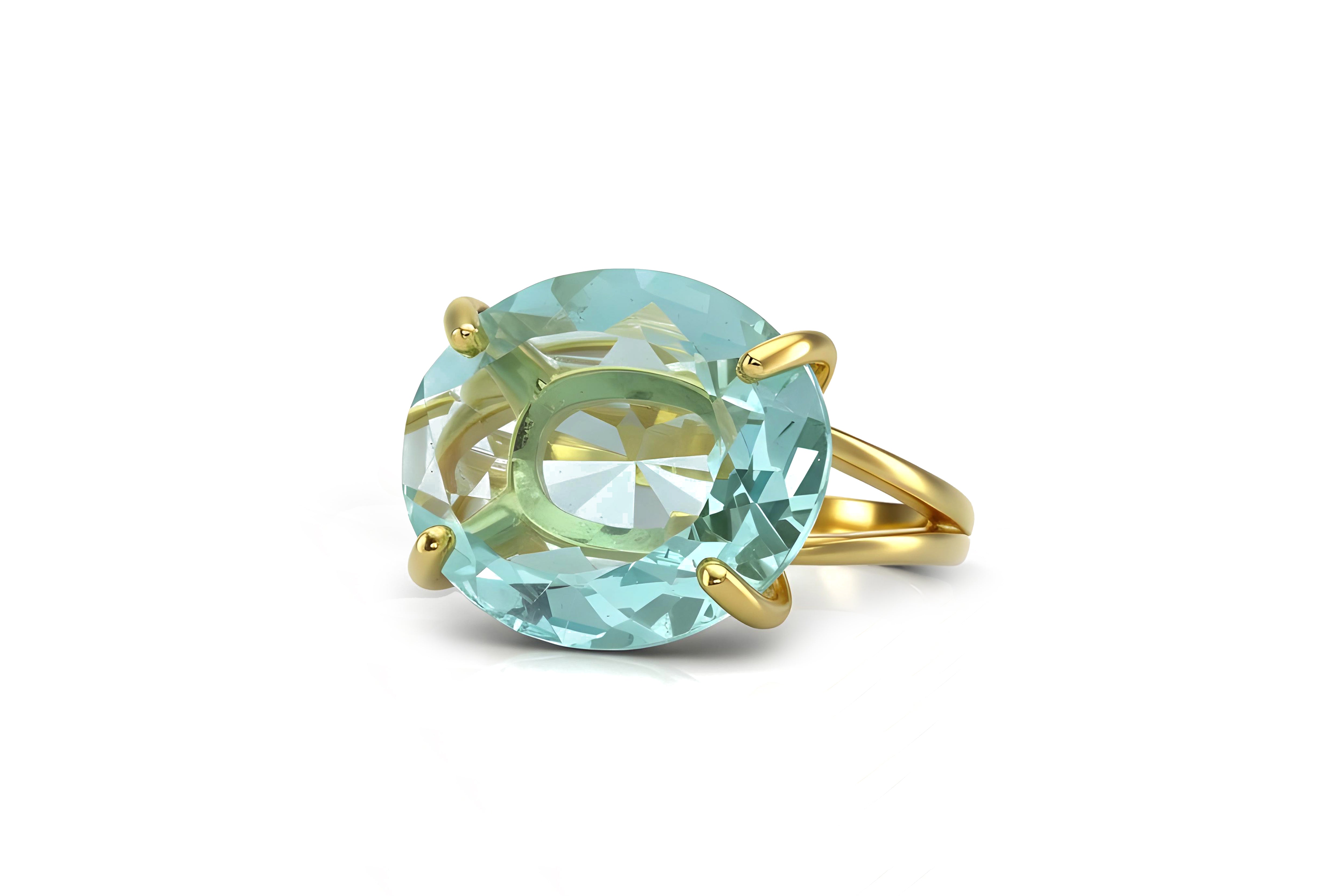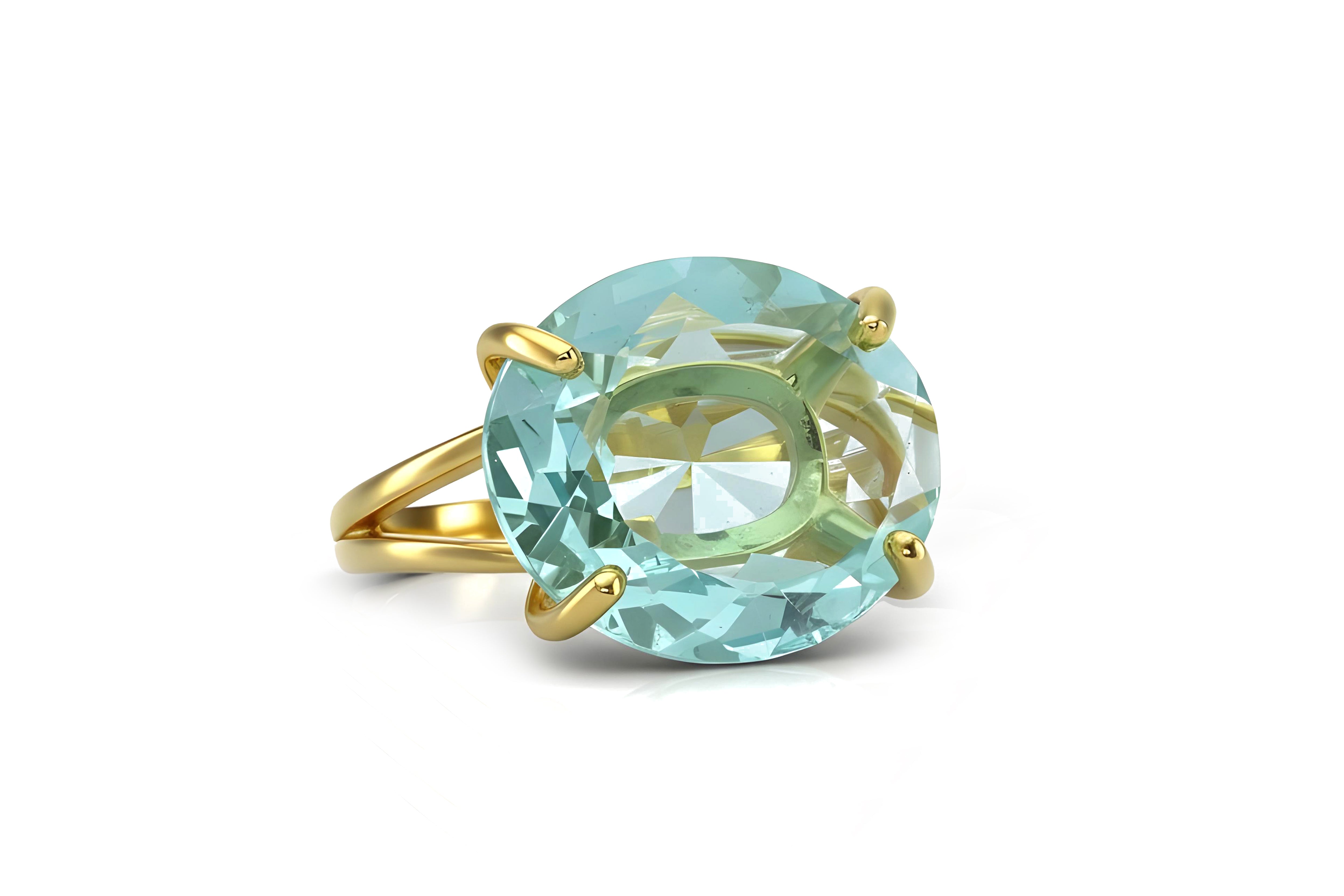 Blue Topaz Gold Cocktail 4 Prong Ring