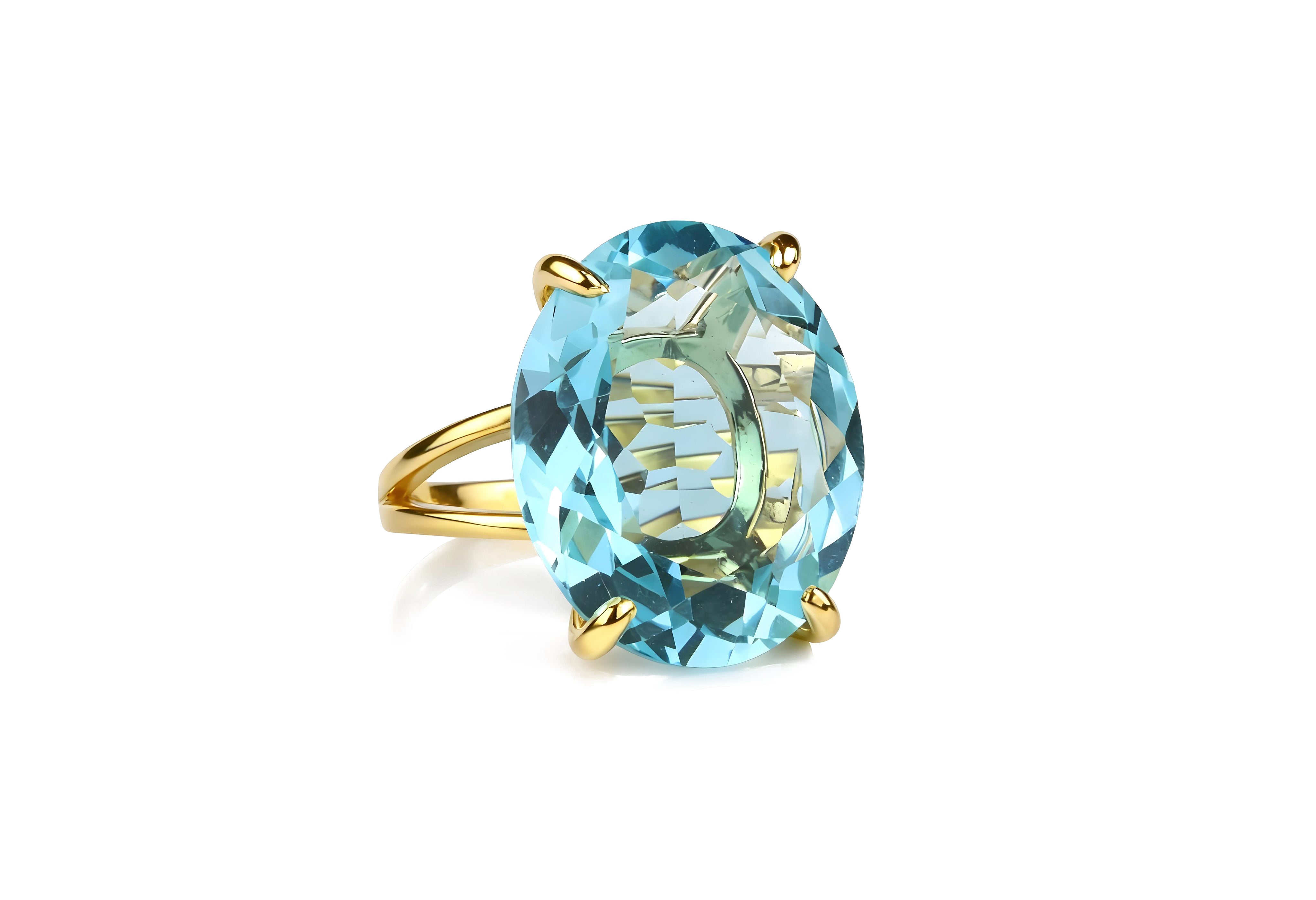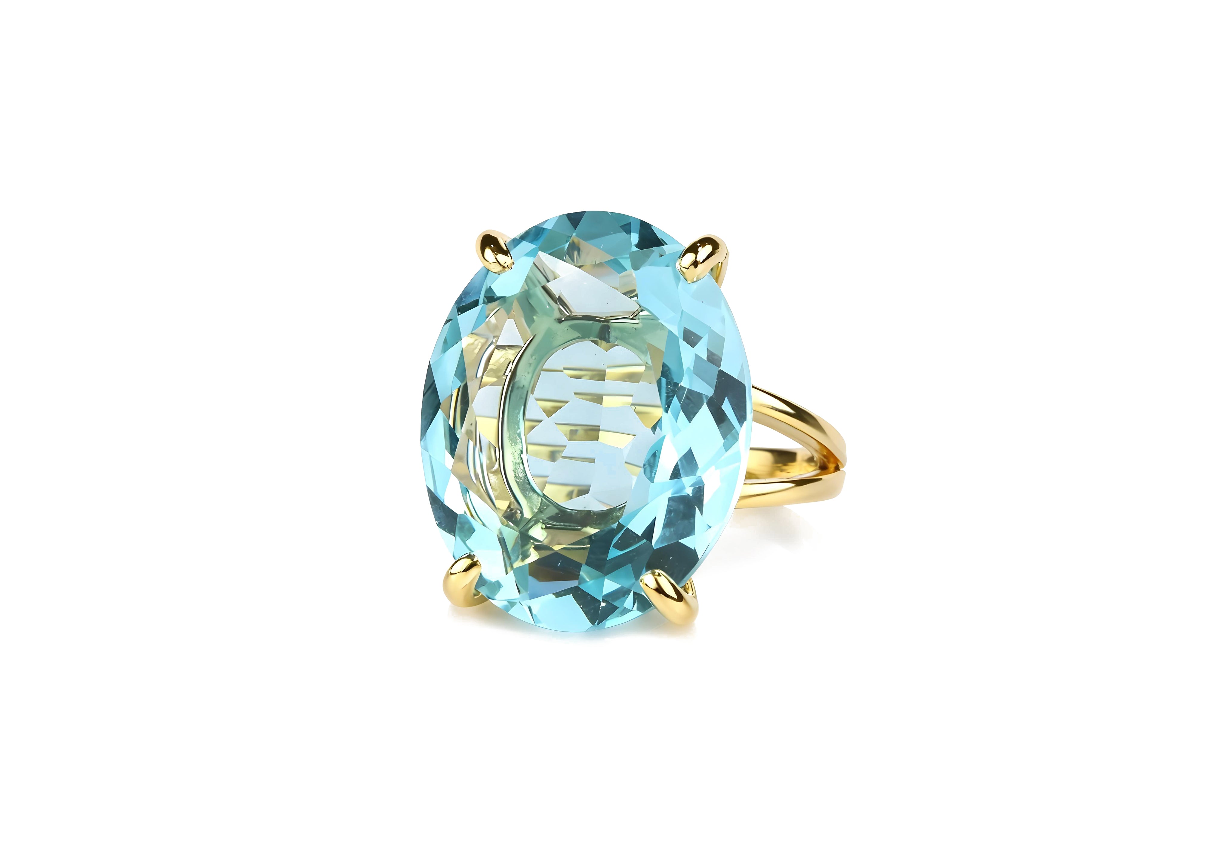 This blue topaz ring in 14k gold radiates a cool, captivating brilliance. The oval-cut gemstone is faceted to reflect light beautifully from every angle, set securely in a classic prong setting. Its sky-blue tone adds a serene touch to any look, making it a standout choice for both daily wear and elegant occasions.