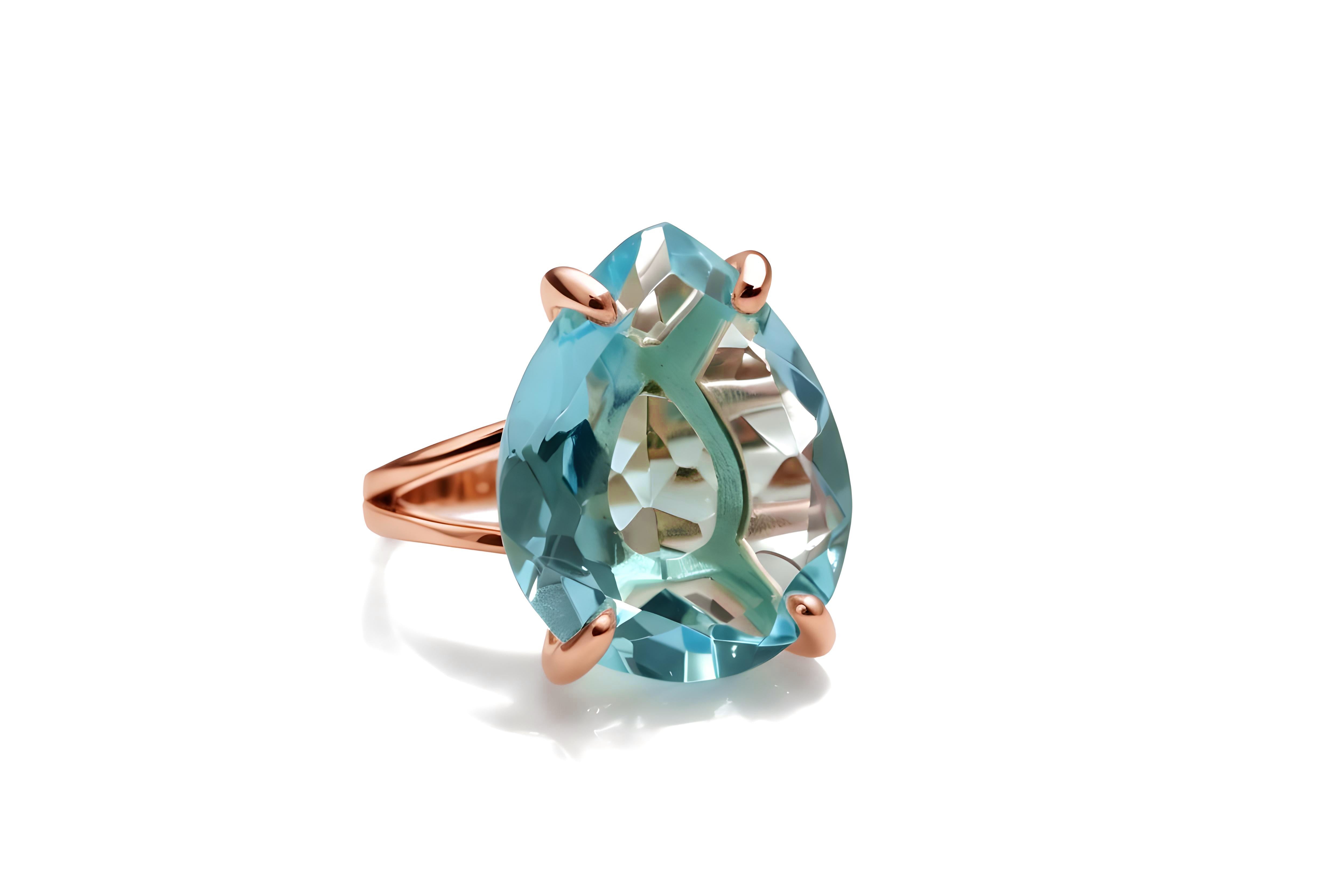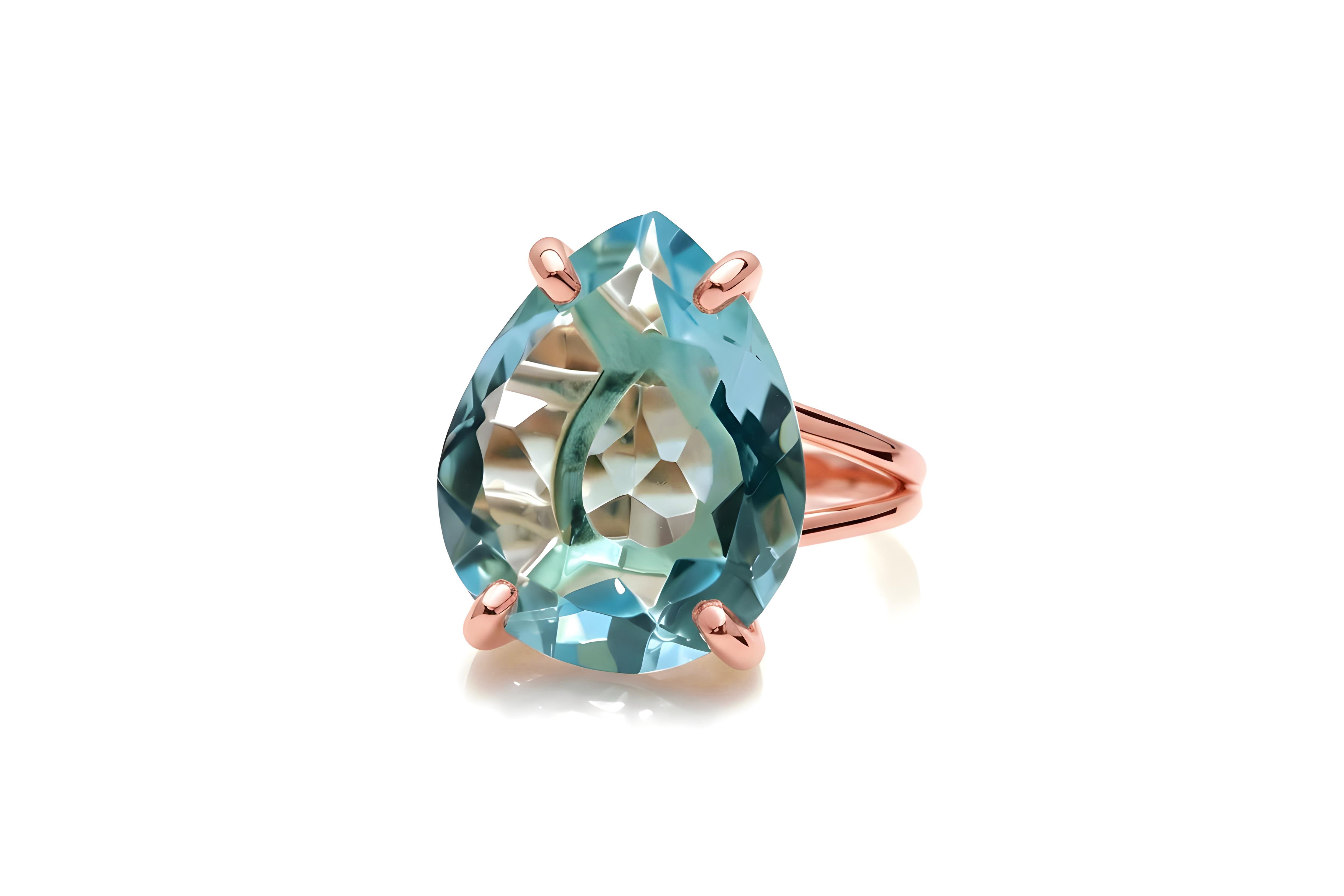 This pear-cut blue topaz ring glows with soft ocean hues, set in luminous 14k rose gold filled metal. The handcrafted prong setting enhances the gemstone’s brilliance, creating a timeless blend of sophistication and warmth. Perfect as a statement cocktail ring or a meaningful birthstone gift, it adds elegance to any collection.