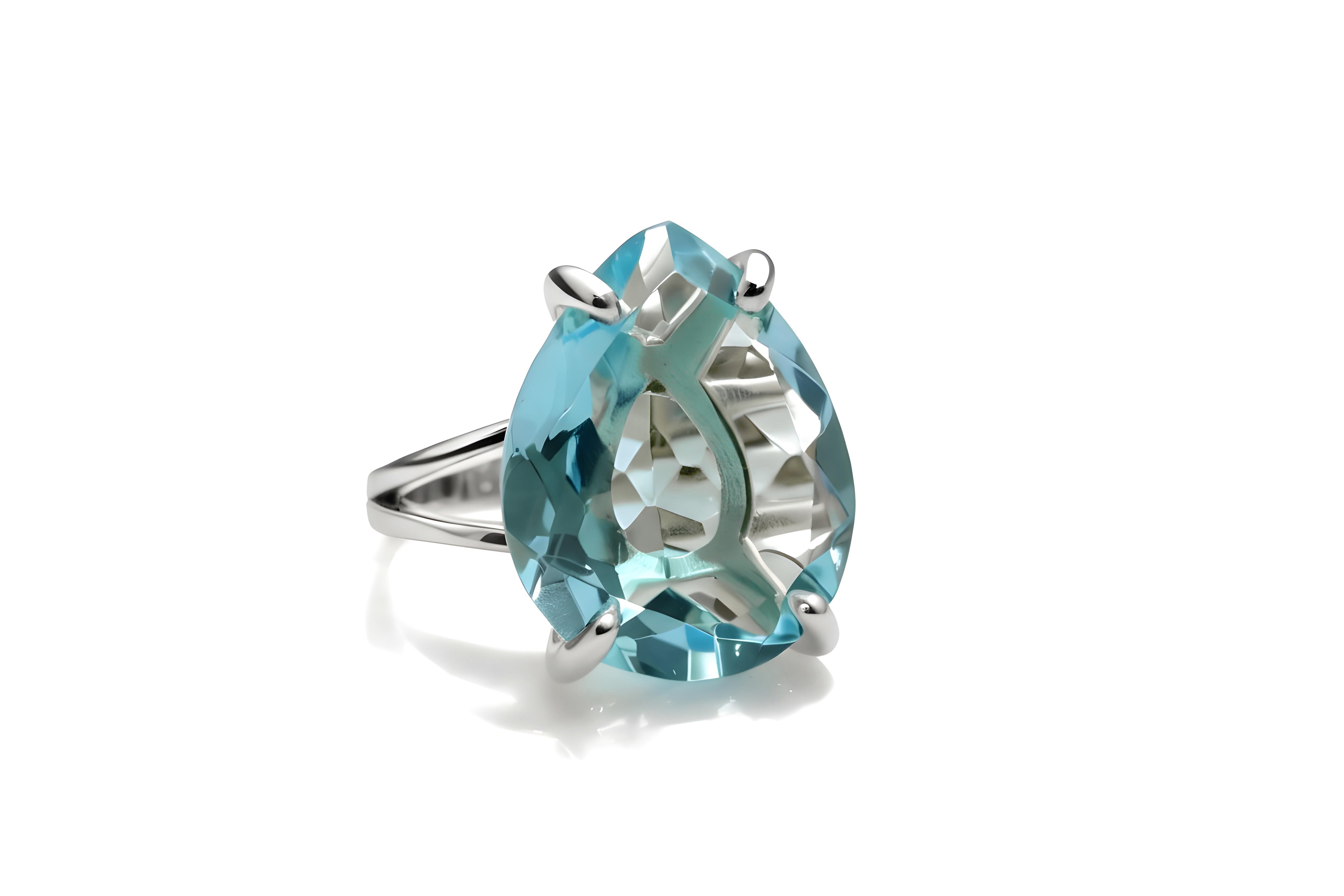This stunning blue topaz teardrop ring is crafted in solid sterling silver and features a beautifully faceted pear-cut gemstone. The bright sky-blue topaz captures light effortlessly, while the polished silver setting adds a refined touch. A handcrafted statement piece perfect for both everyday wear and elegant occasions.