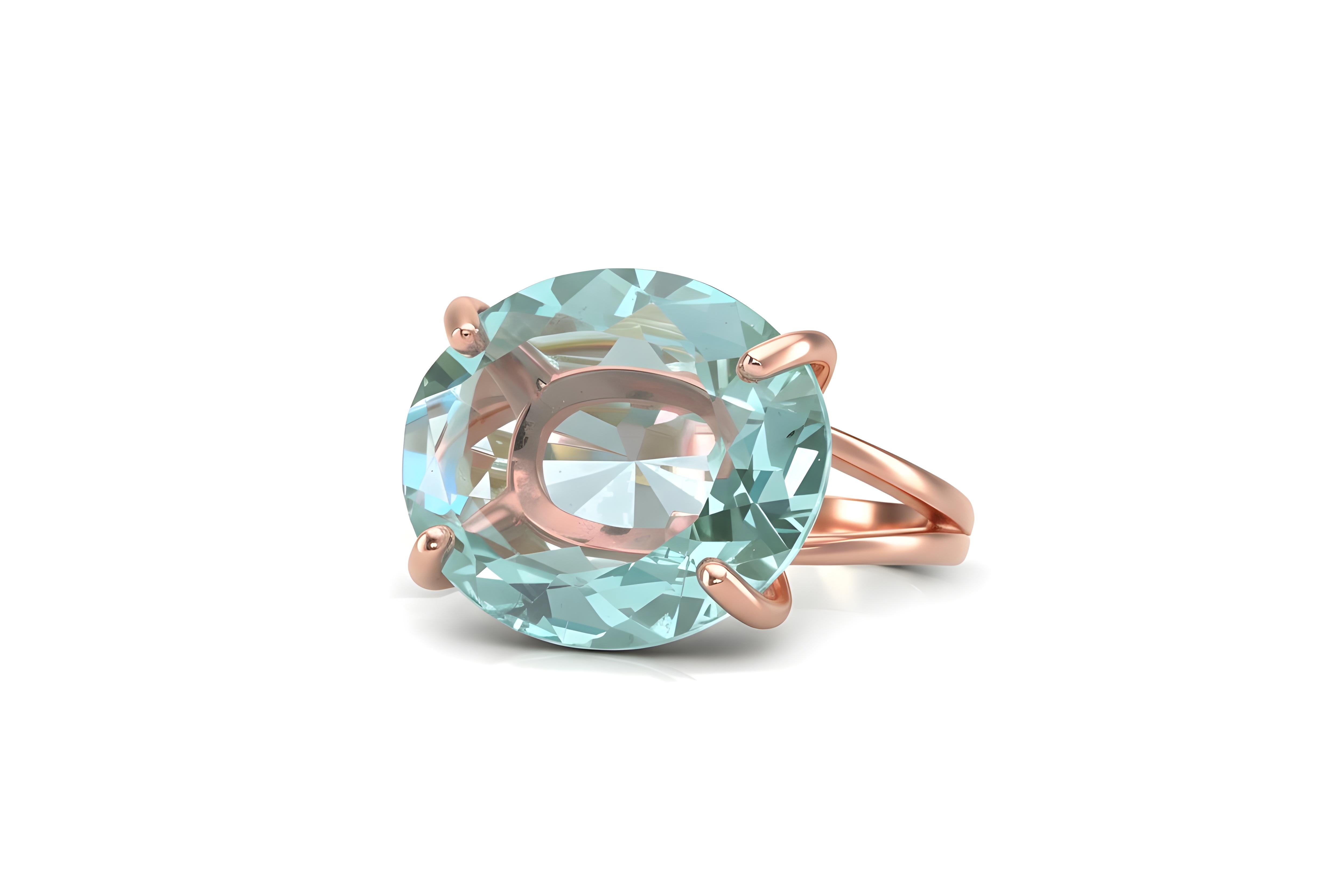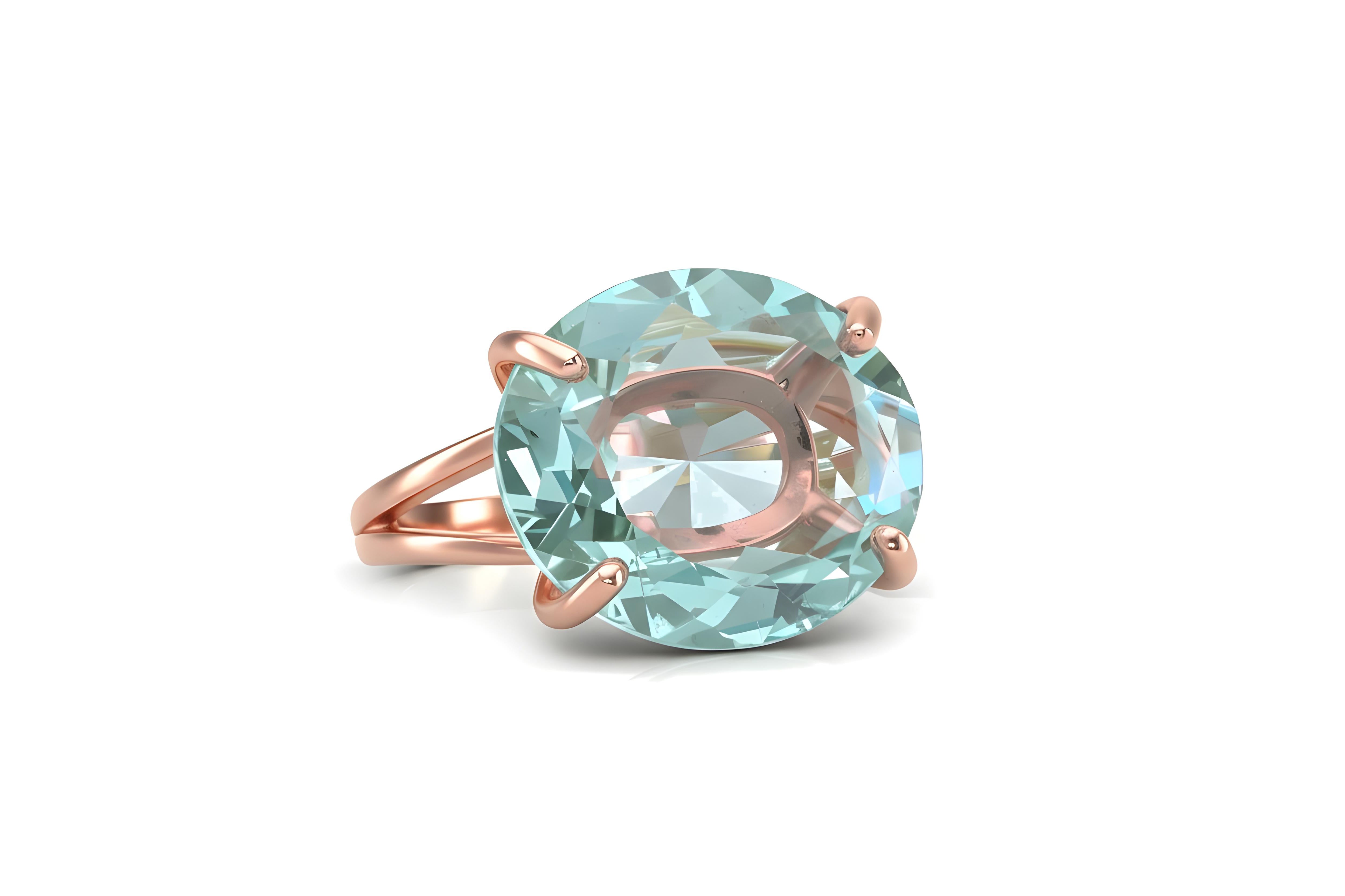 Blue Topaz Rose Gold Cocktail Oval Cut Ring