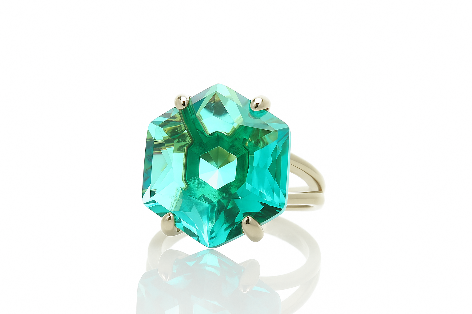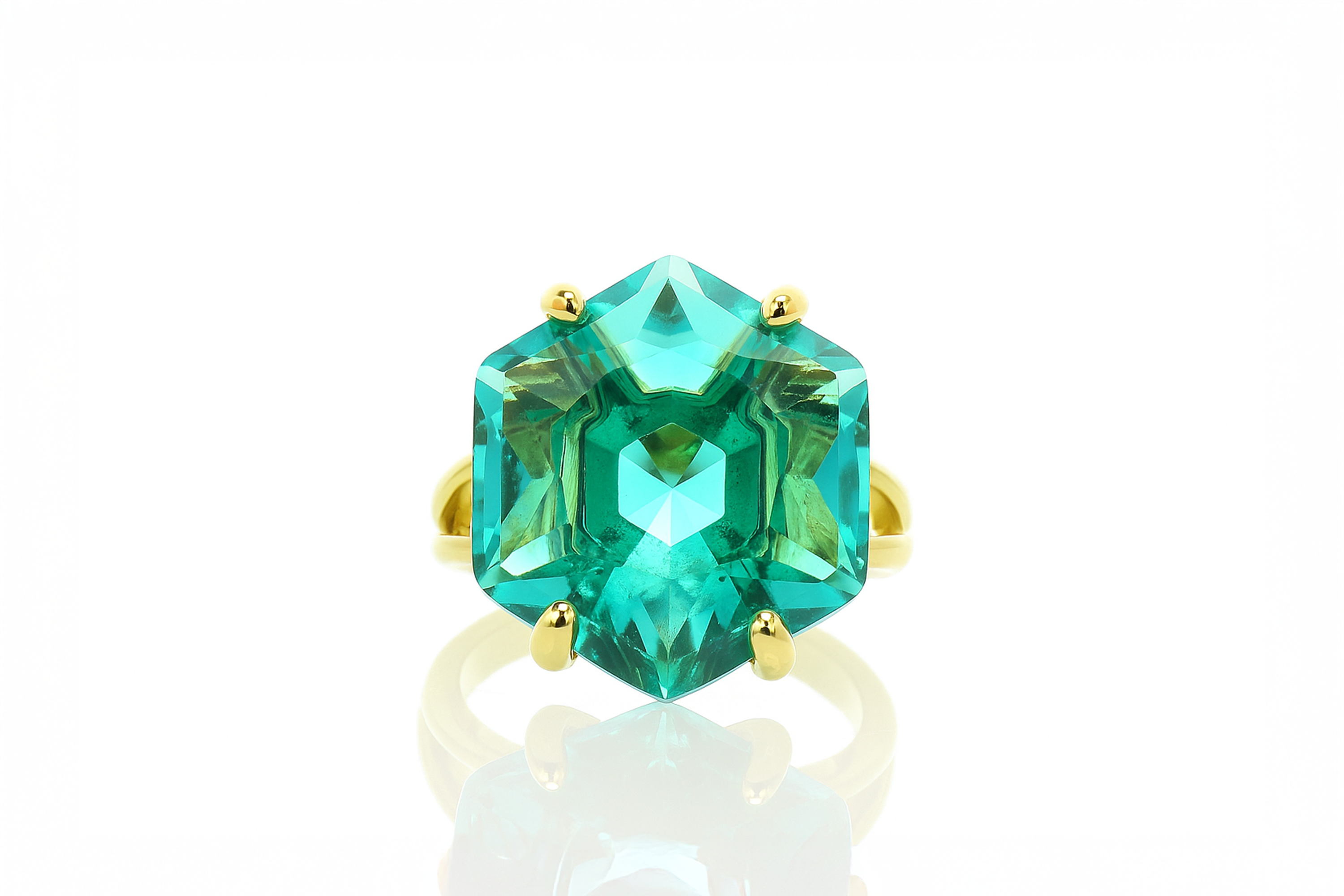 Blue Tourmaline Solitaire Hexagon Cut Gold Ring