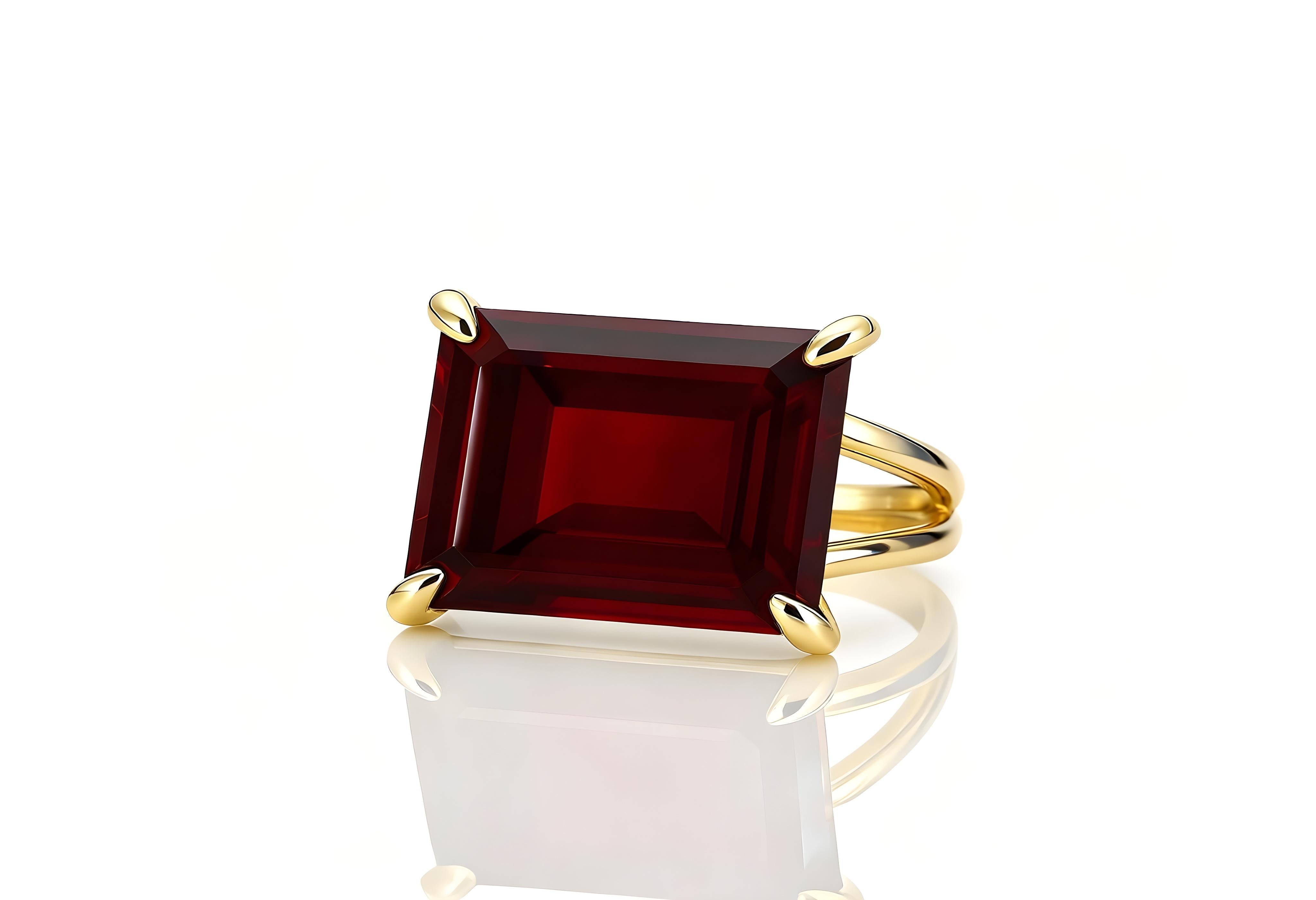 This rectangular garnet ring is crafted in 14k gold filled and features a faceted emerald cut gemstone. Garnet, the January birthstone, is cherished for its deep red tones symbolizing passion, energy, and love. The sleek rectangular cut adds a bold, modern touch, while the option for custom engraving makes it truly personal. Handcrafted with care, this ring is perfect as a statement cocktail ring, a thoughtful gift, or a meaningful keepsake.
