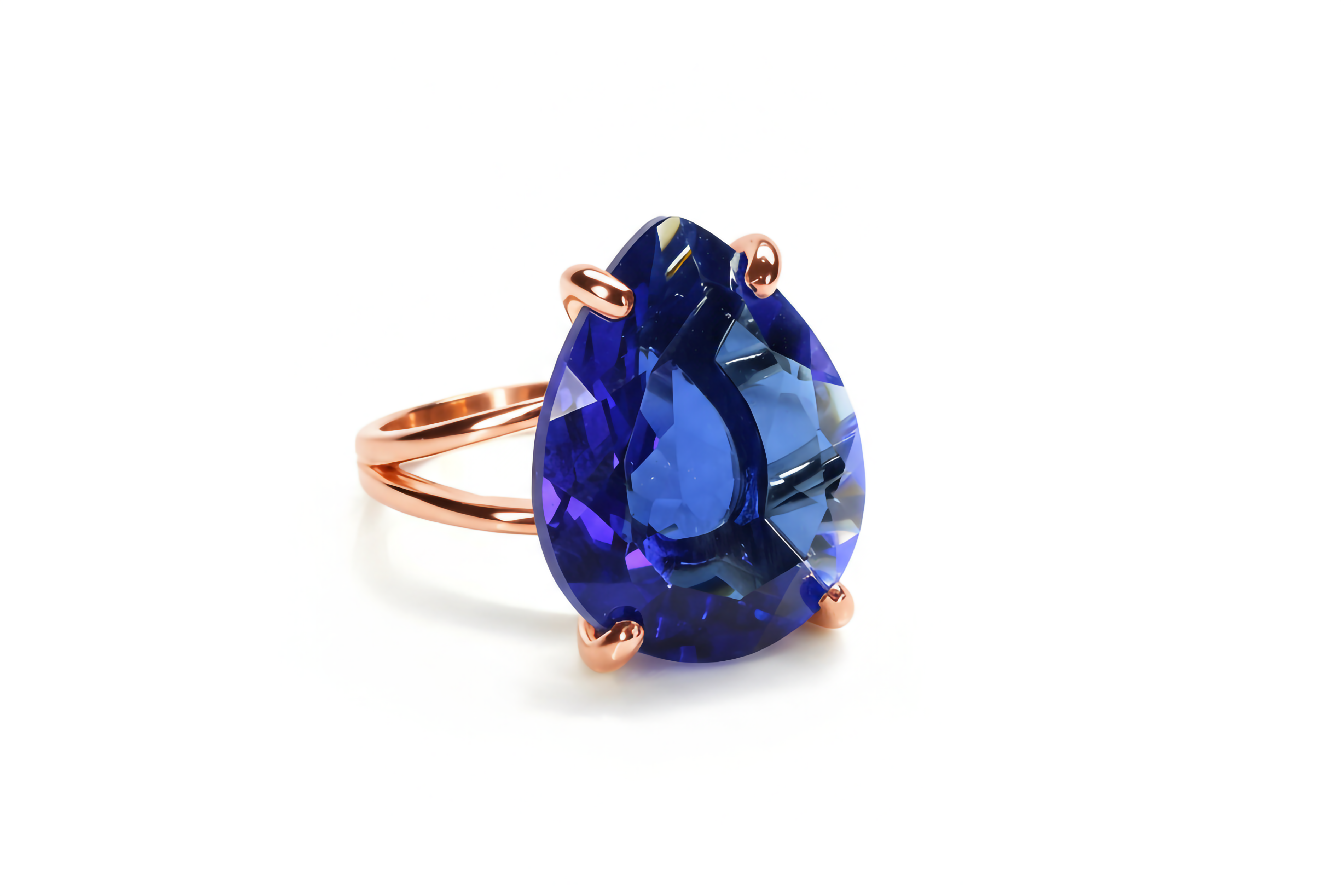 Brilliant Blue Sapphire Gemstone Rose Gold Ring