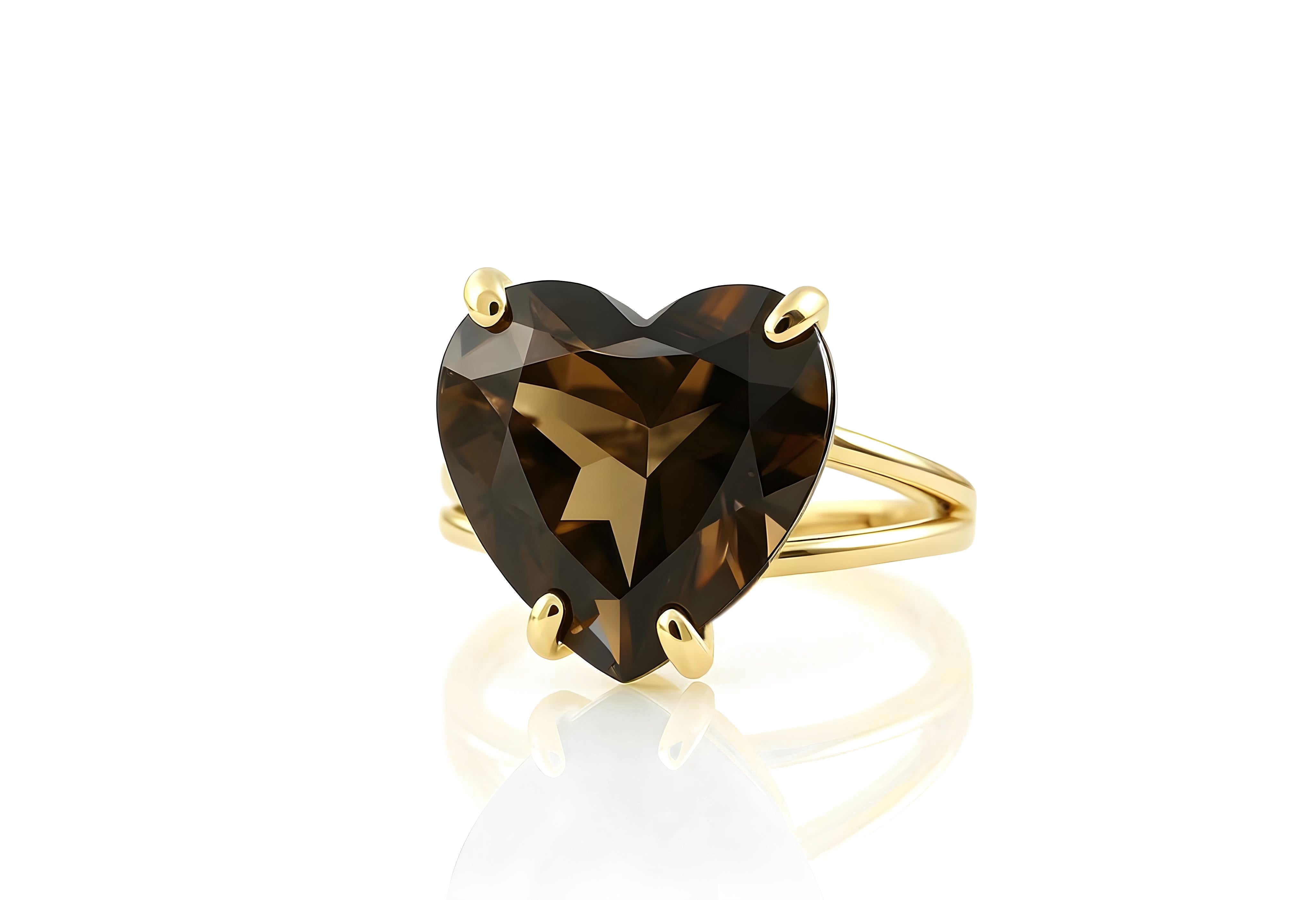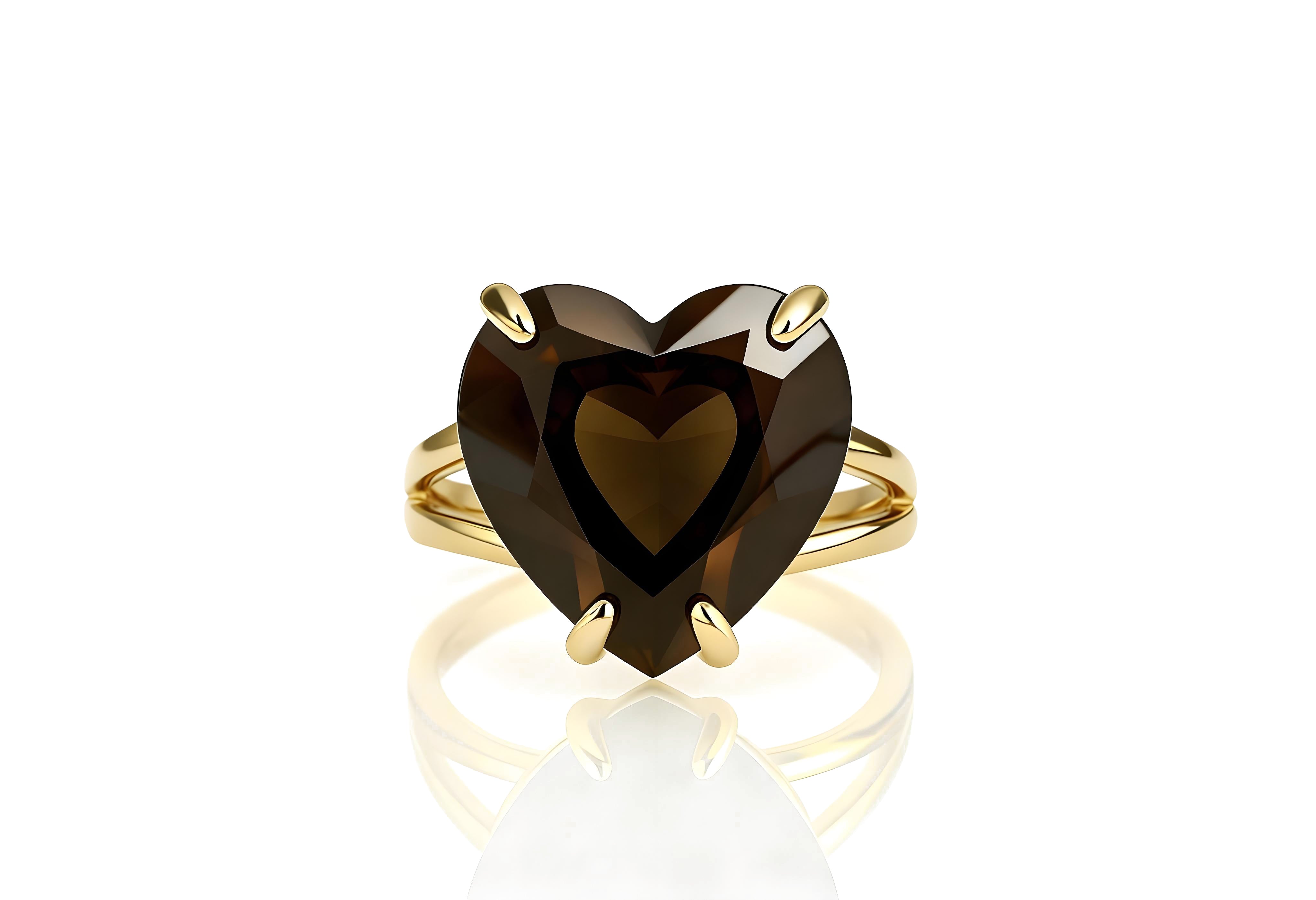 Make a bold impression with this heart-cut smoky quartz ring, featuring a striking 16mm gemstone set in a polished 14k gold-filled band. The rich brown tones of the quartz create a sense of depth and mystery, adding powerful energy to your look.