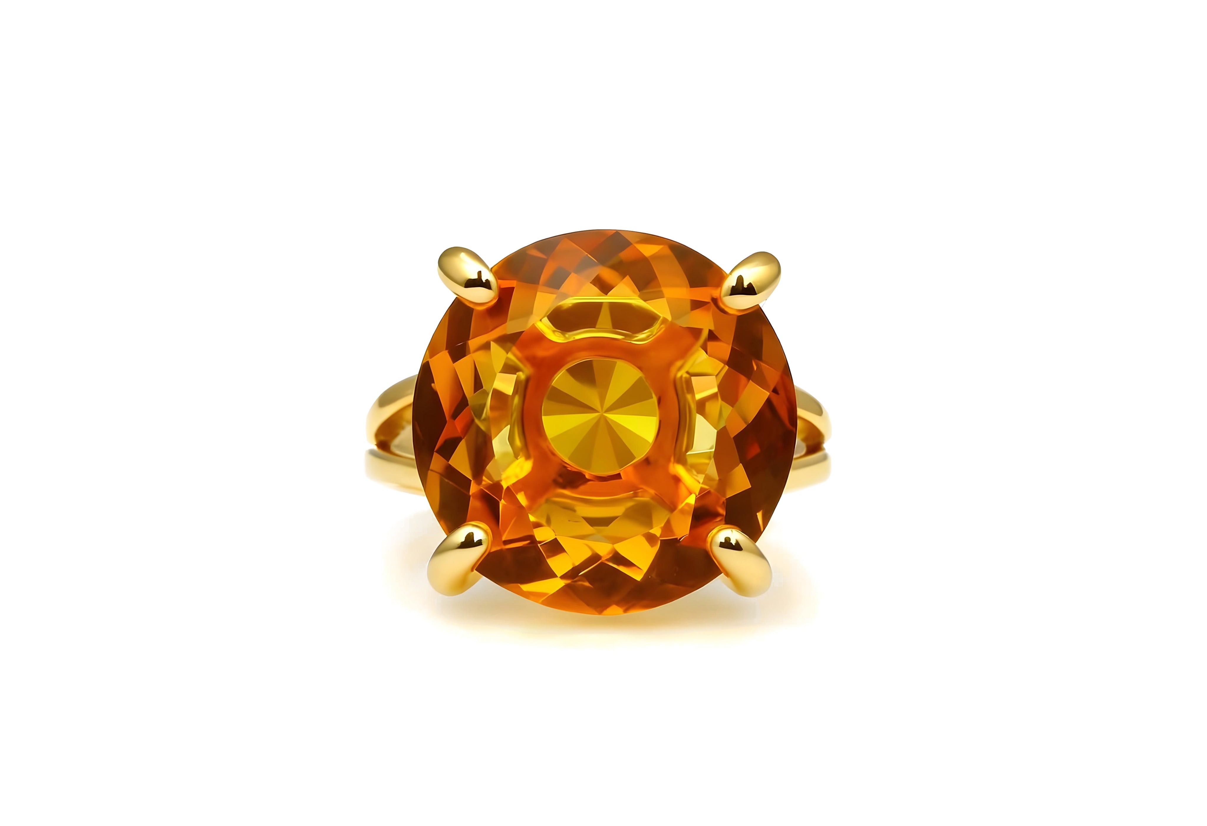 This gold citrine ring features a radiant gemstone that captures the warmth and energy of the November birthstone. Known as the stone of joy and abundance, citrine adds a touch of brightness to any look. Designed as a statement cocktail piece, the ring is both elegant and eye-catching. Handcrafted with care, it’s a perfect gift for women who love meaningful gemstone jewelry or want to add a vibrant accent to their collection.