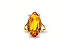 This large citrine ring features a faceted marquise-cut genuine gemstone in a polished gold setting. The radiant golden tones of citrine, November’s birthstone, symbolize joy, abundance, and positivity. Handcrafted with care, this gemstone ring combines bold design with timeless sophistication. Ideal for cocktail wear, special occasions, or as an elegant gift, this piece captures warmth and light in every angle.