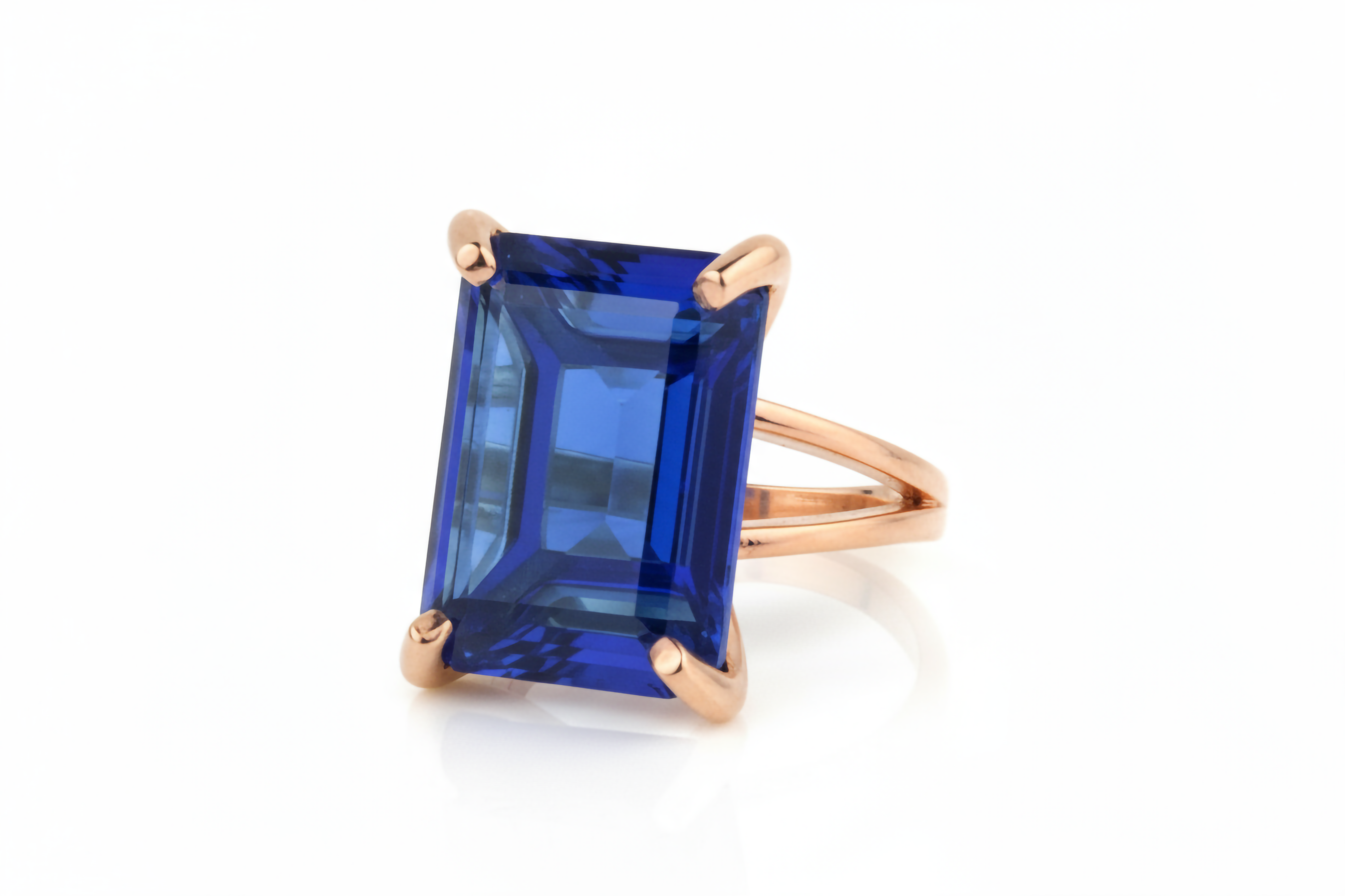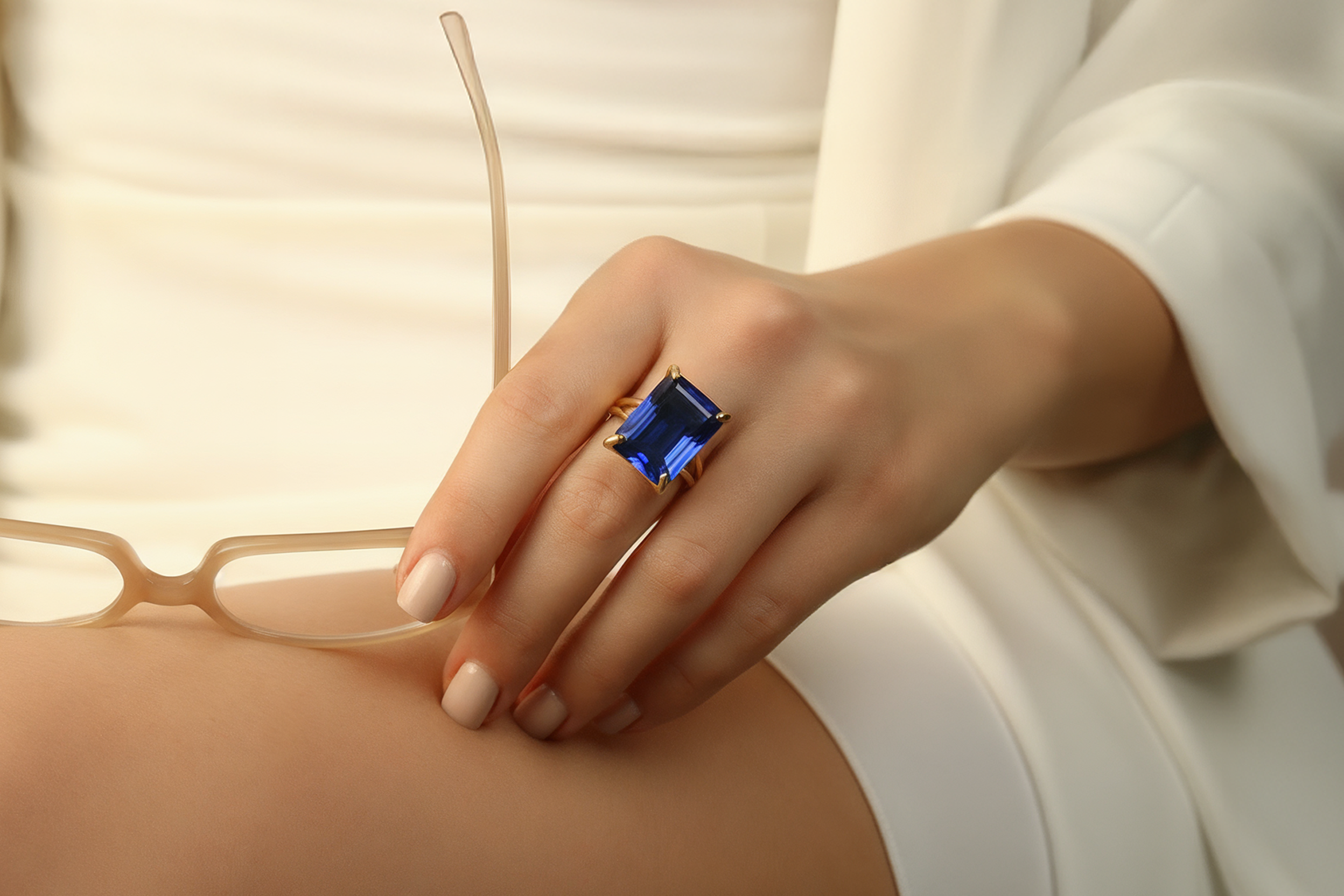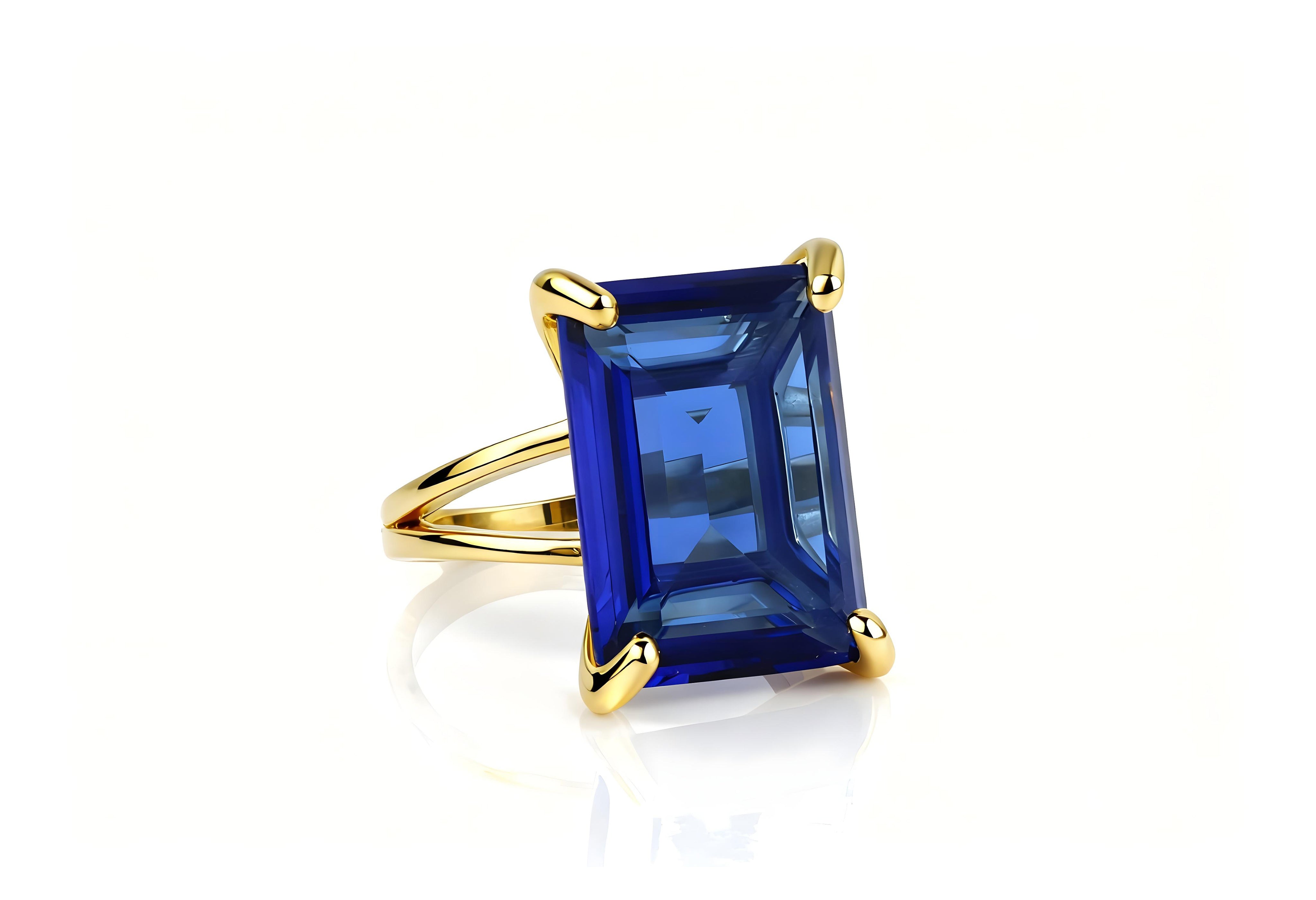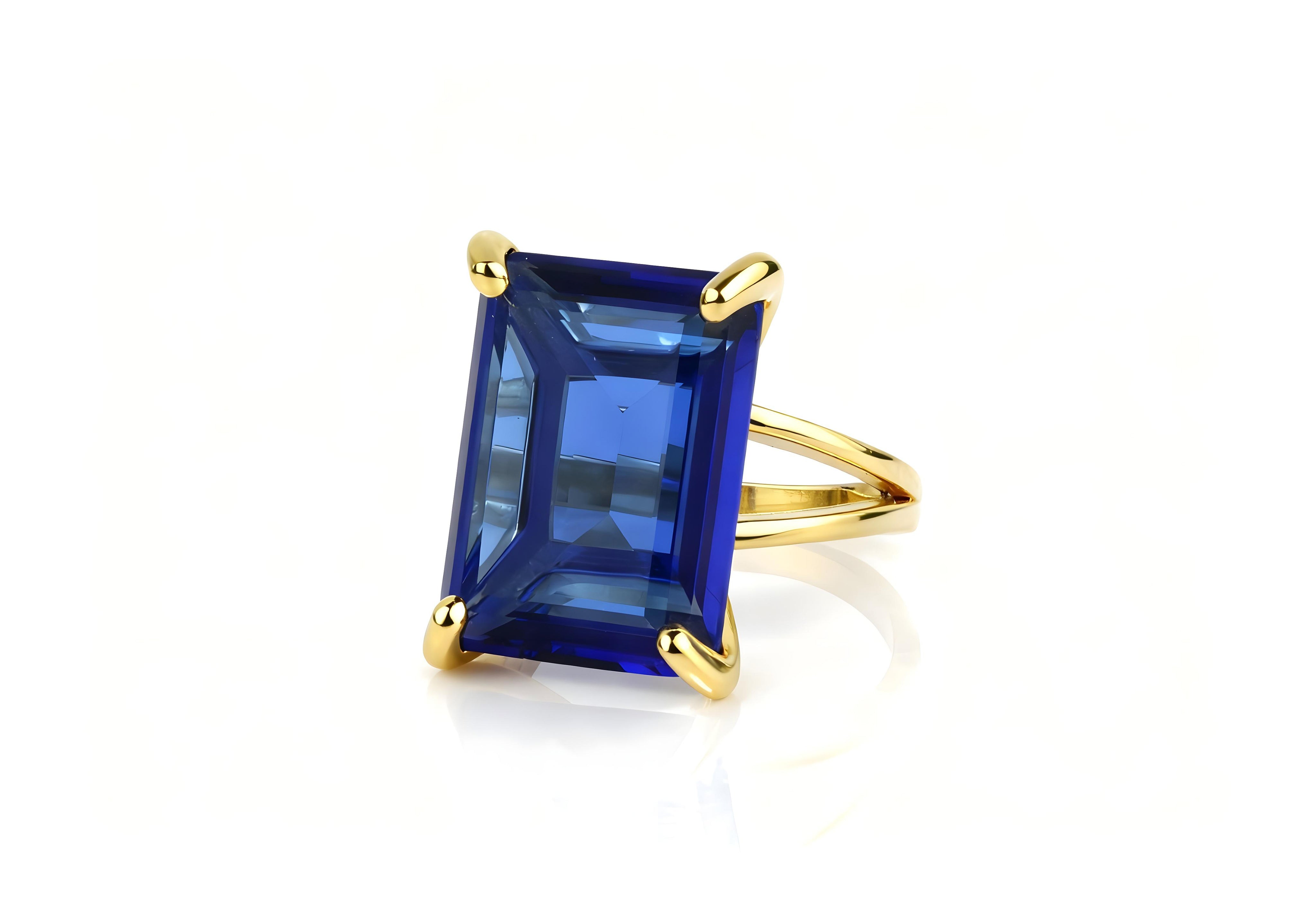 This rectangular sapphire ring is crafted in luminous 14k gold and set with a deep blue emerald-cut gemstone that exudes refined brilliance. The bold geometric silhouette highlights the sapphire’s rich tone, creating a luxurious modern classic. Perfect as a September birthstone piece or an elegant statement ring, it brings timeless sophistication and radiant depth to every look.