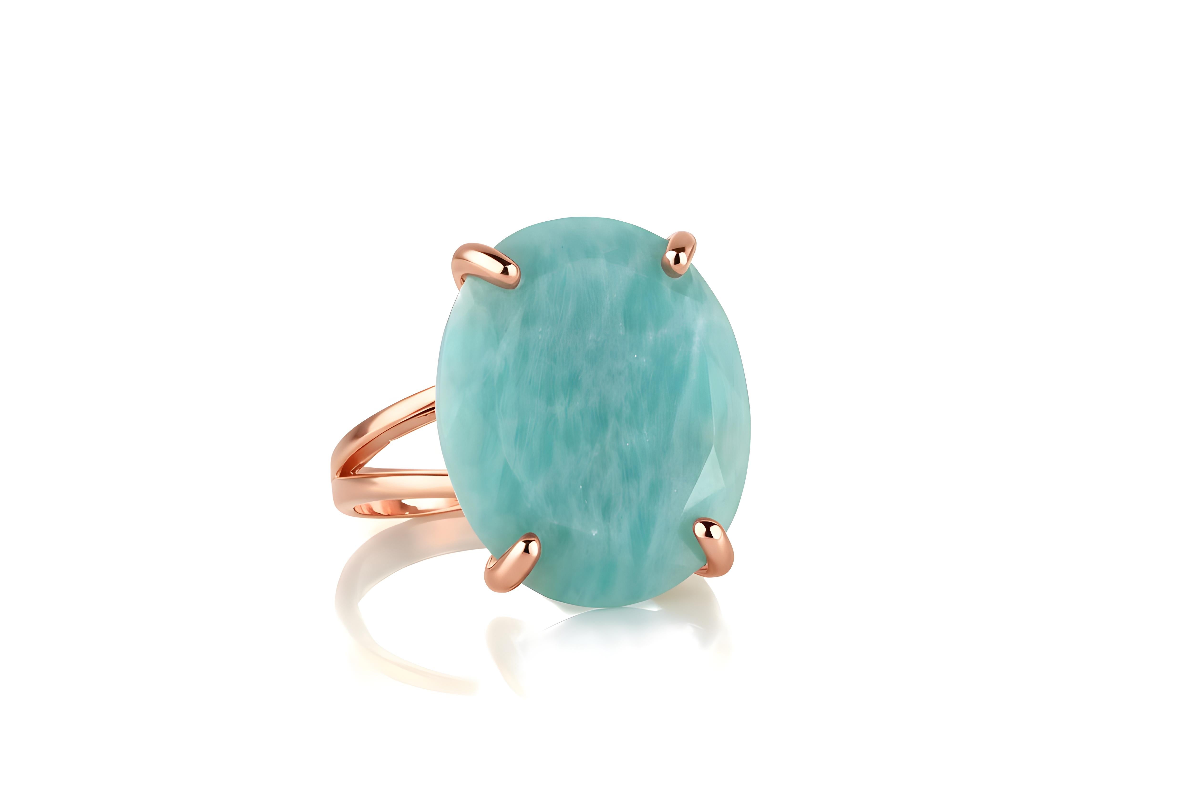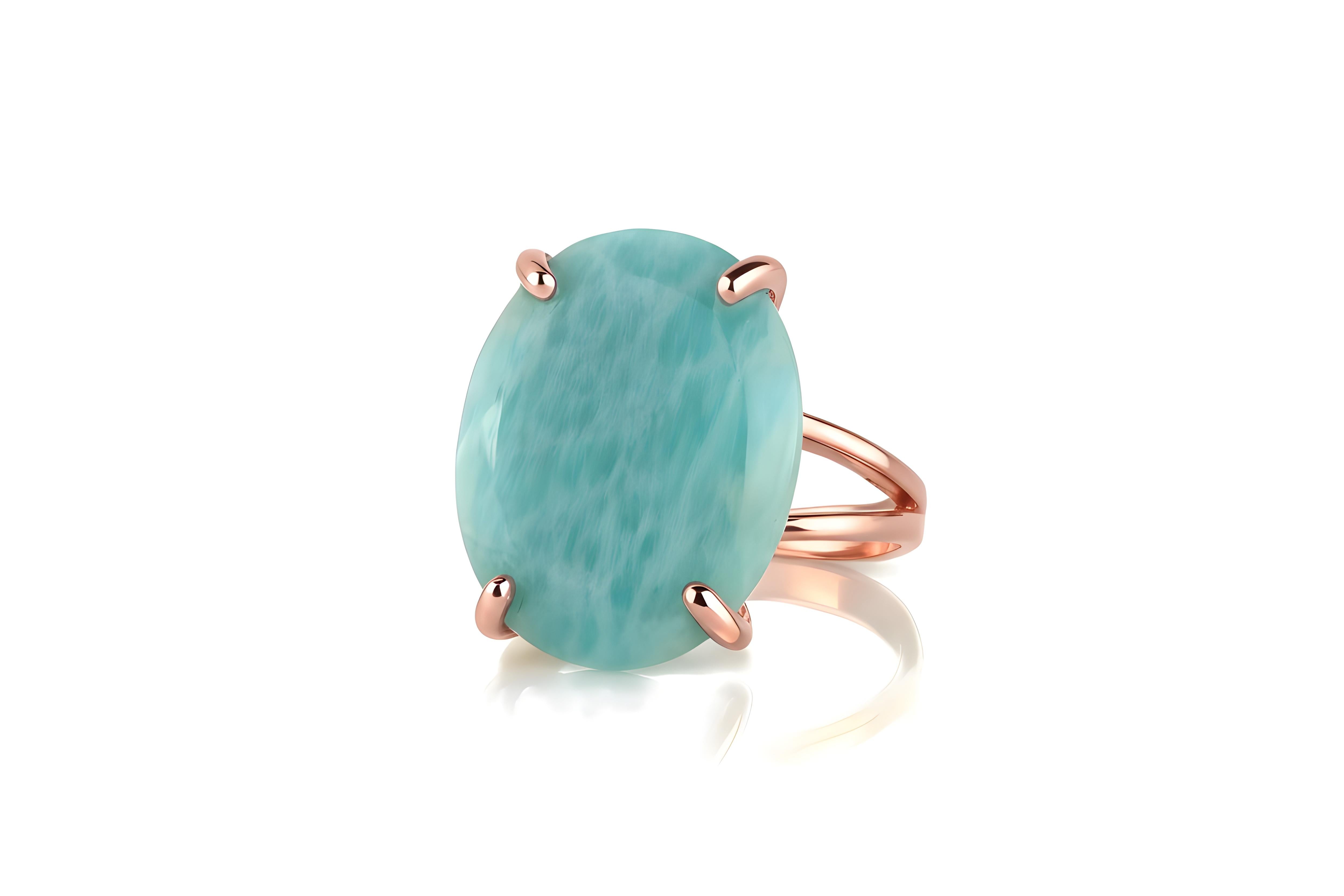 This beautiful oval amazonite ring is handcrafted in radiant 14k rose gold, highlighting the stone’s tranquil blue-green hues. The soft pink tone of the metal enhances the calming charm of the natural gemstone, creating a perfect balance between elegance and warmth. Designed for both everyday wear and special occasions, this handmade piece adds a touch of refined beauty to any look. Custom sizing and metal options available upon request.