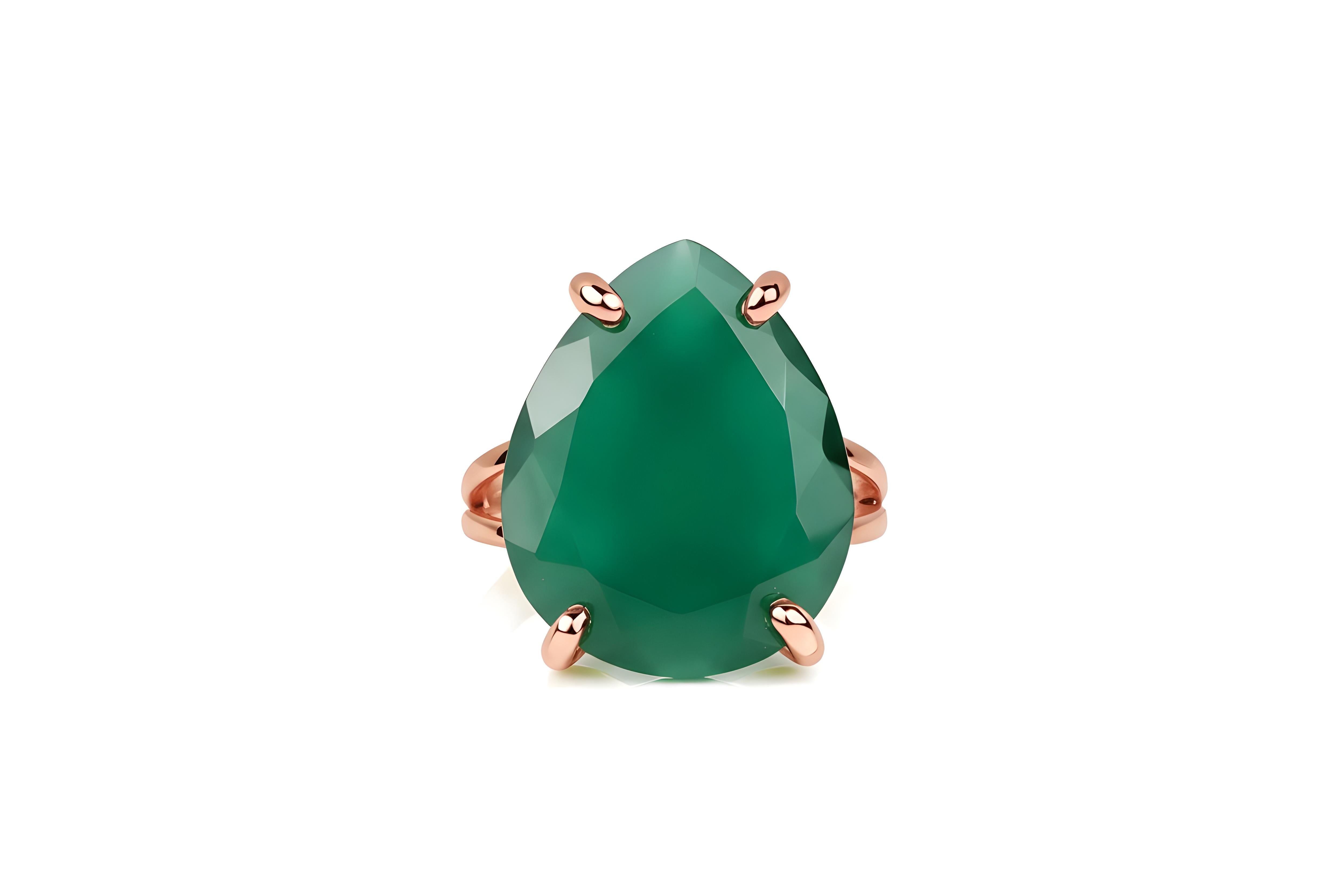 This exquisite handmade ring features a faceted pear-cut green onyx gemstone set in 14k rose gold, radiating warmth and sophistication. The rich green hue contrasts beautifully with the soft blush tone of the metal, making it a standout piece for both everyday wear and special occasions. Crafted with precision and care, it’s the perfect choice for anyone who loves gemstone jewelry that combines luxury, color, and character.