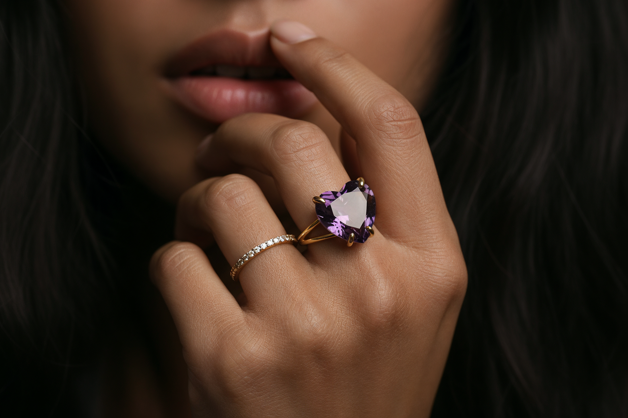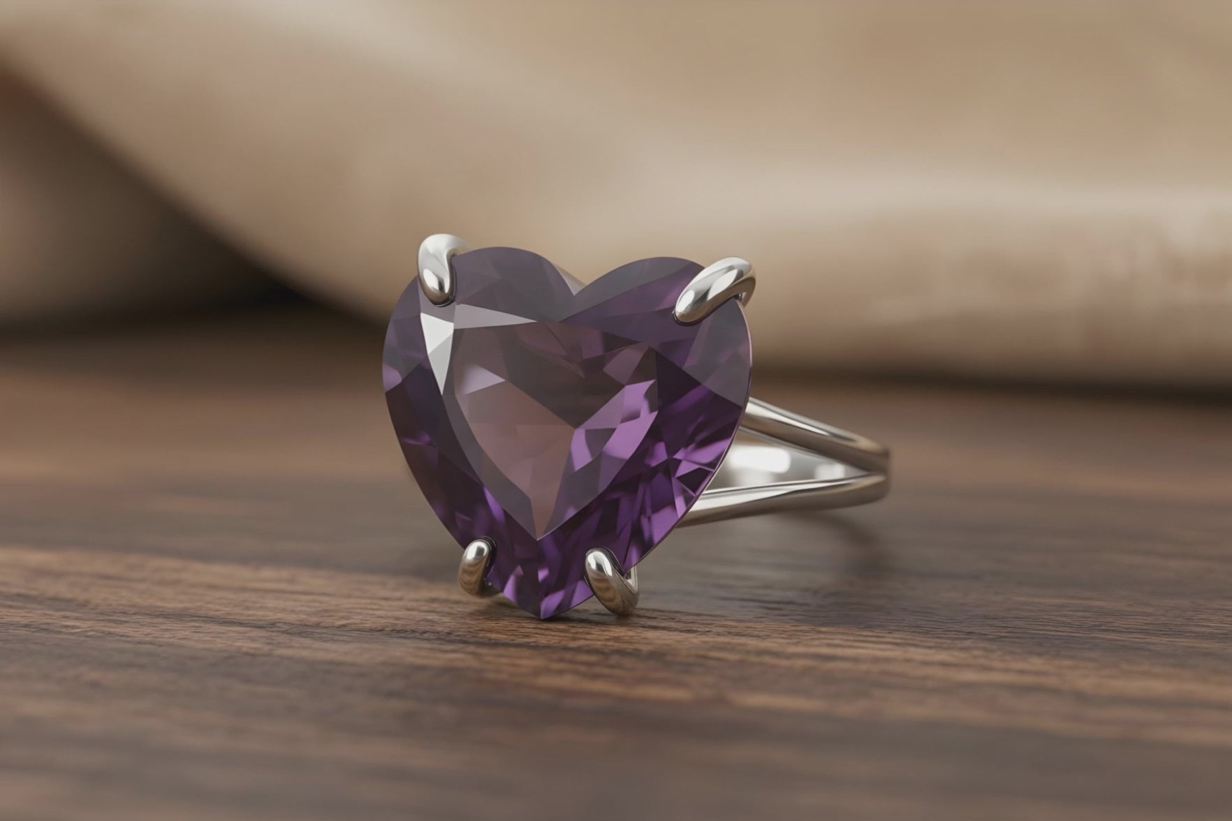 Heart-Cut Purple Amethyst Ring