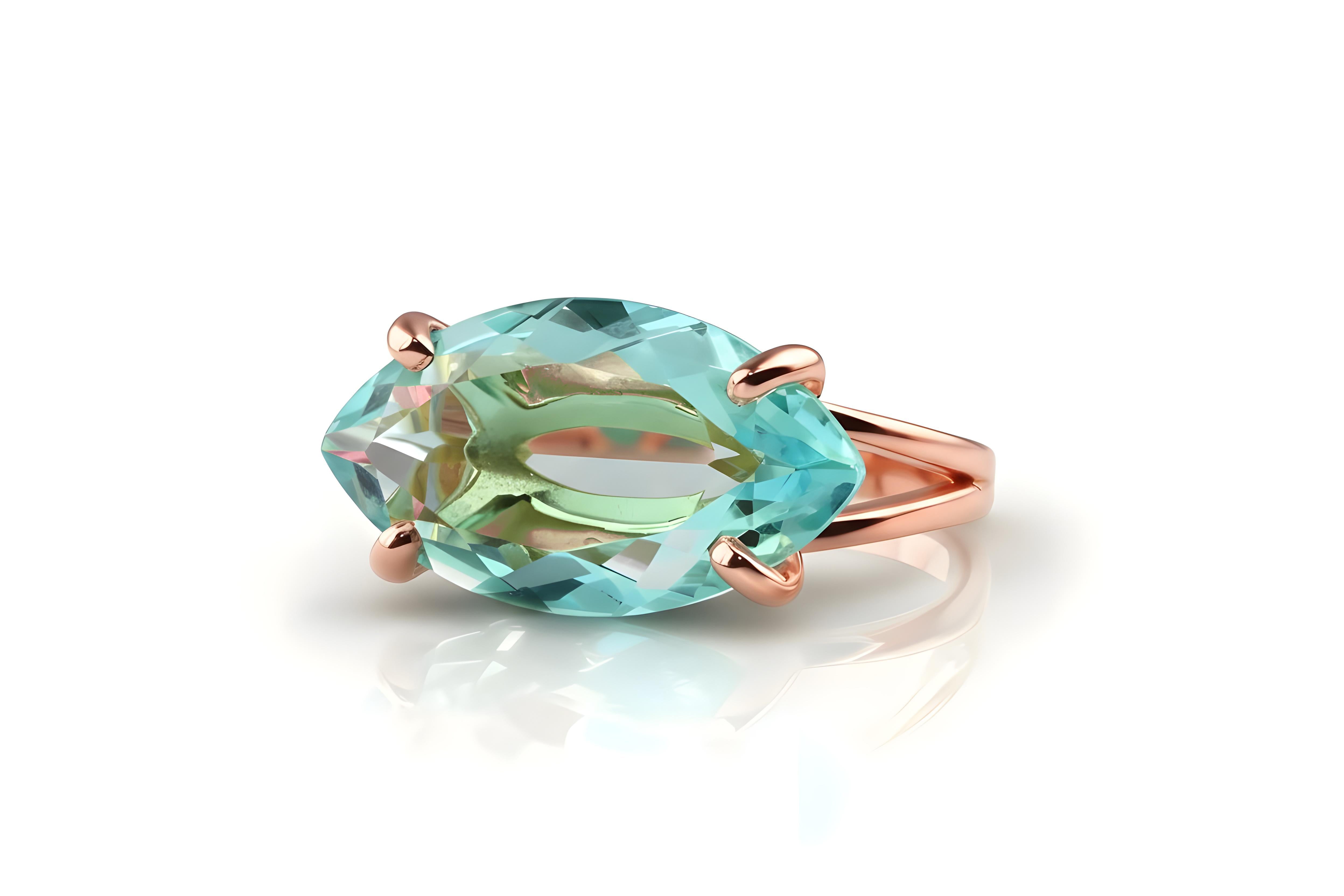 This exquisite marquise blue topaz ring is crafted in 14k gold filled metal and set with a radiant faceted gemstone that captures light from every angle. Its elongated silhouette enhances elegance and adds a vibrant touch of sky blue shimmer to any look. A perfect statement piece for women who appreciate timeless, handcrafted jewelry.