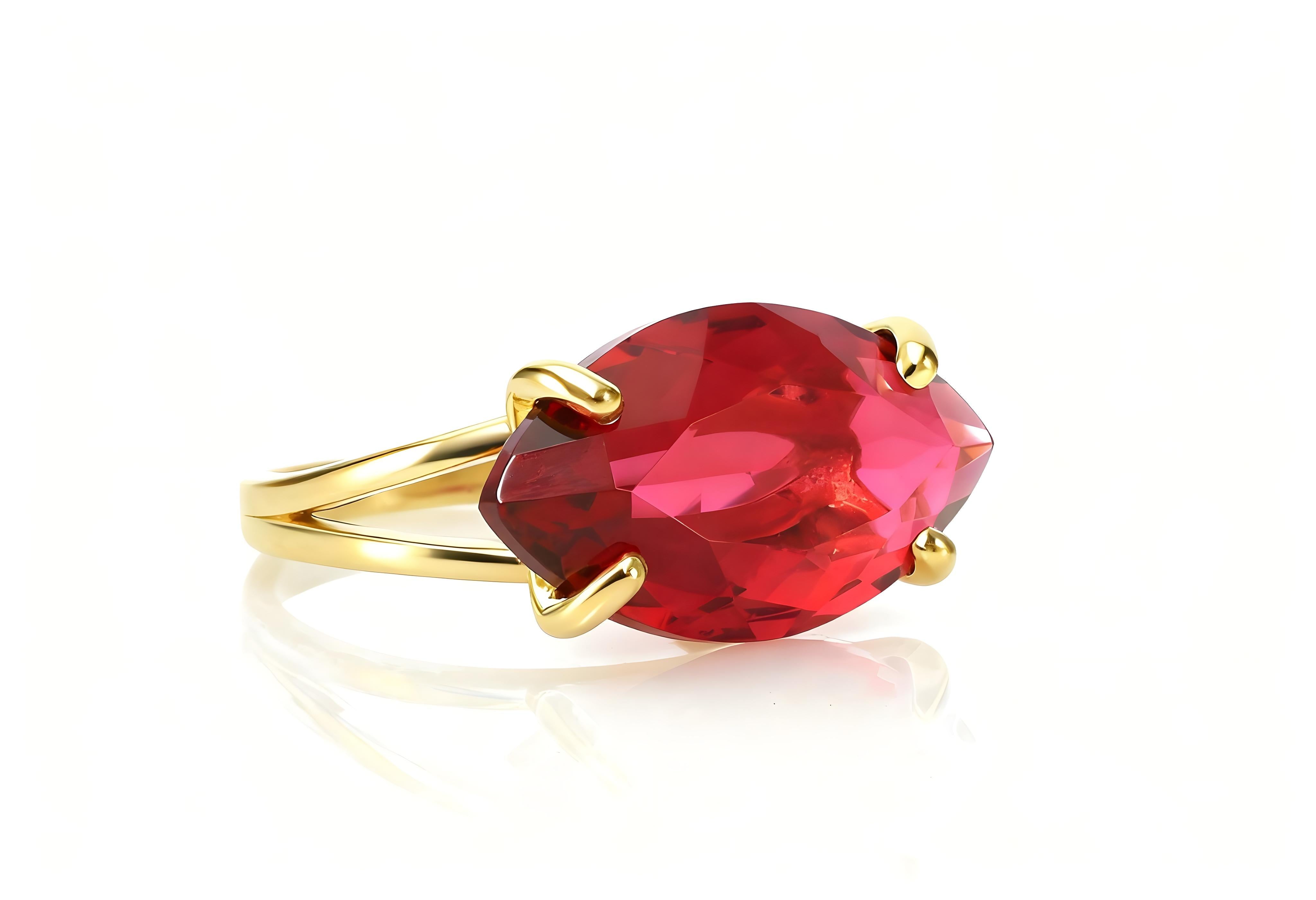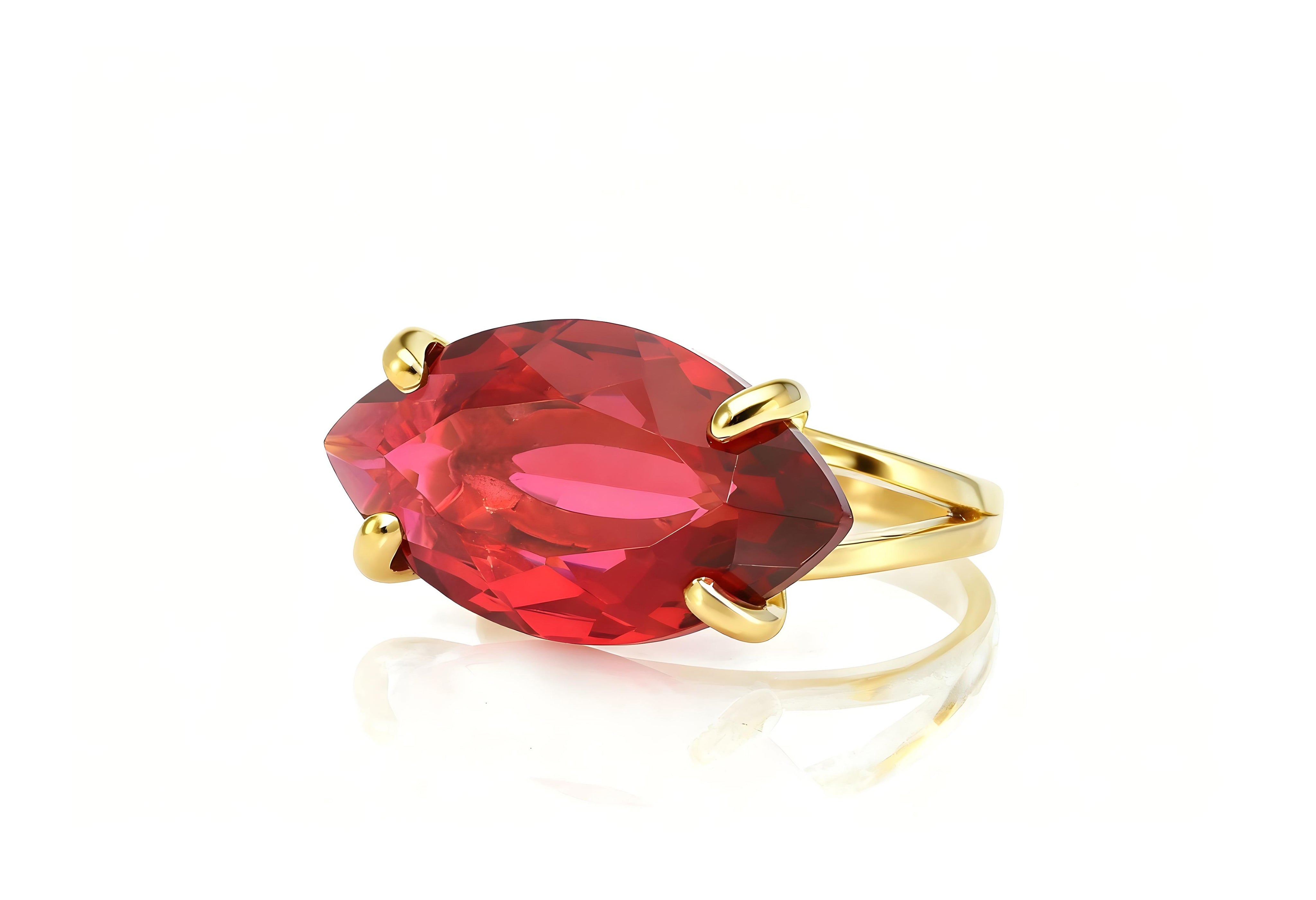 This horizontal marquise-cut pink tourmaline ring radiates bold color and modern allure. Handcrafted in 18k gold vermeil, it features a wide gemstone that shimmers with every movement. The rich pink tone of the faceted stone is perfectly framed by a mirror-shine gold finish, creating a striking contrast. Ideal for October birthdays or anyone drawn to vibrant, eye-catching jewelry, this ring makes a stunning cocktail piece or gift. Its elegant silhouette and double band structure balance sophistication with everyday versatility.