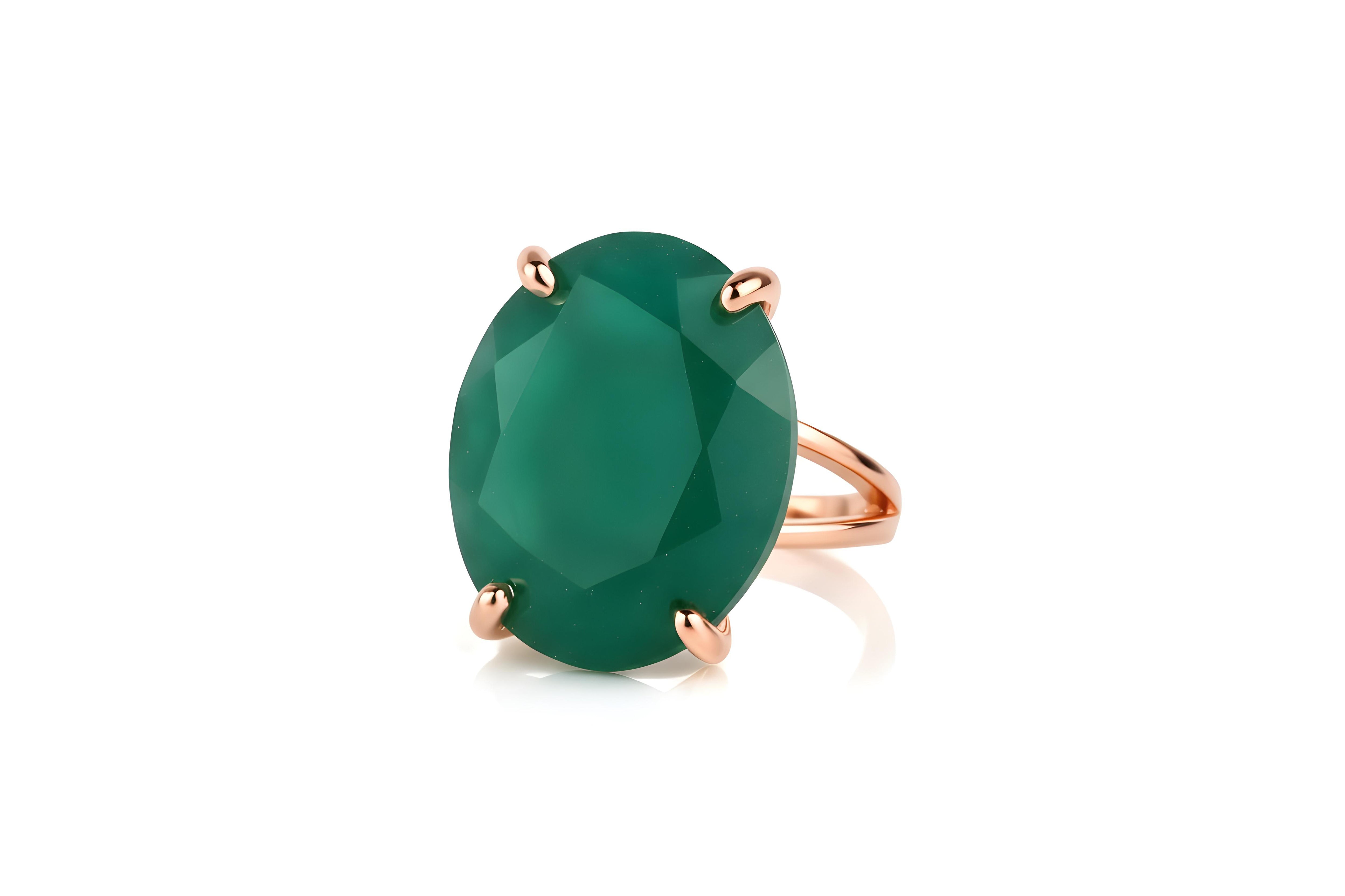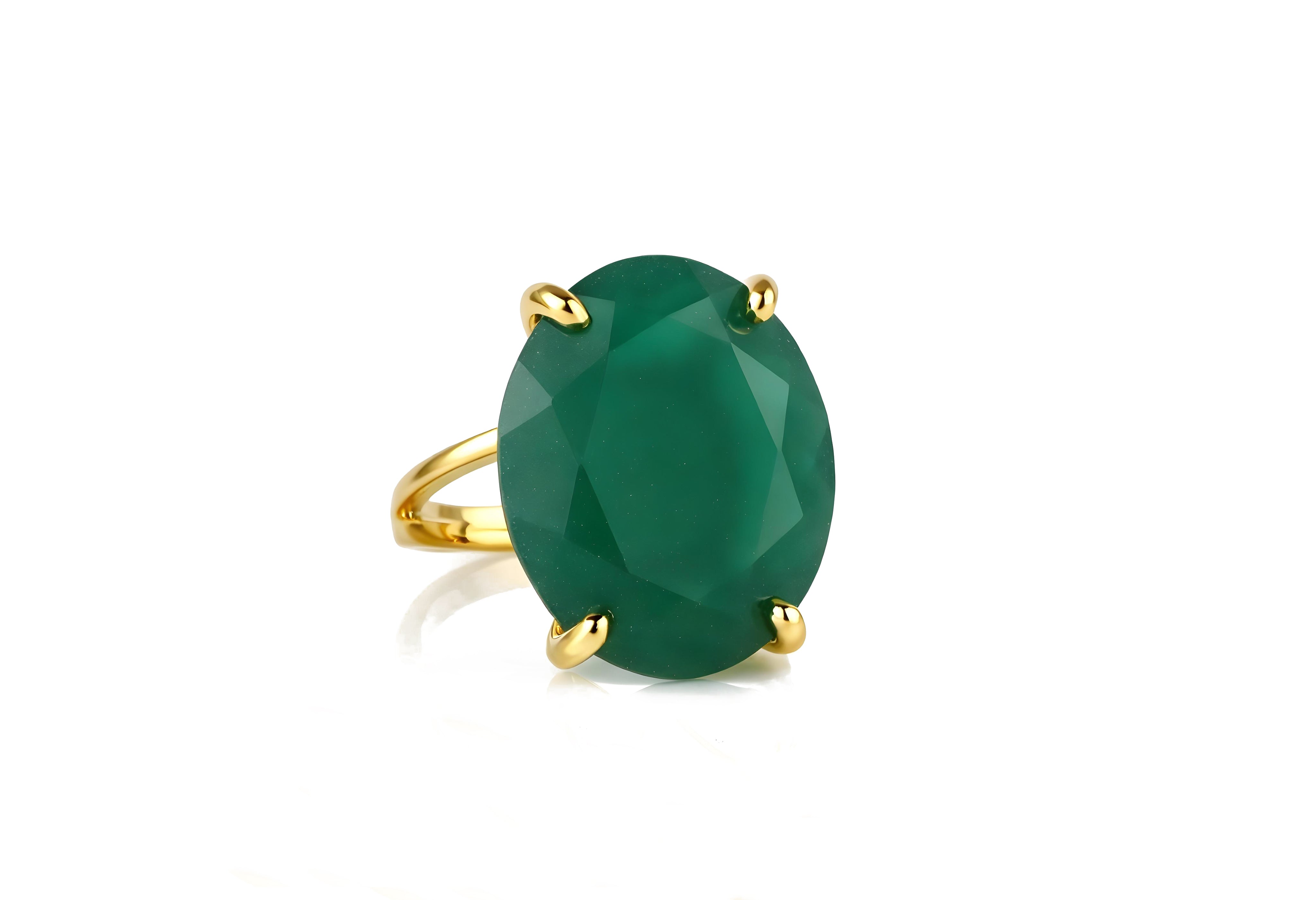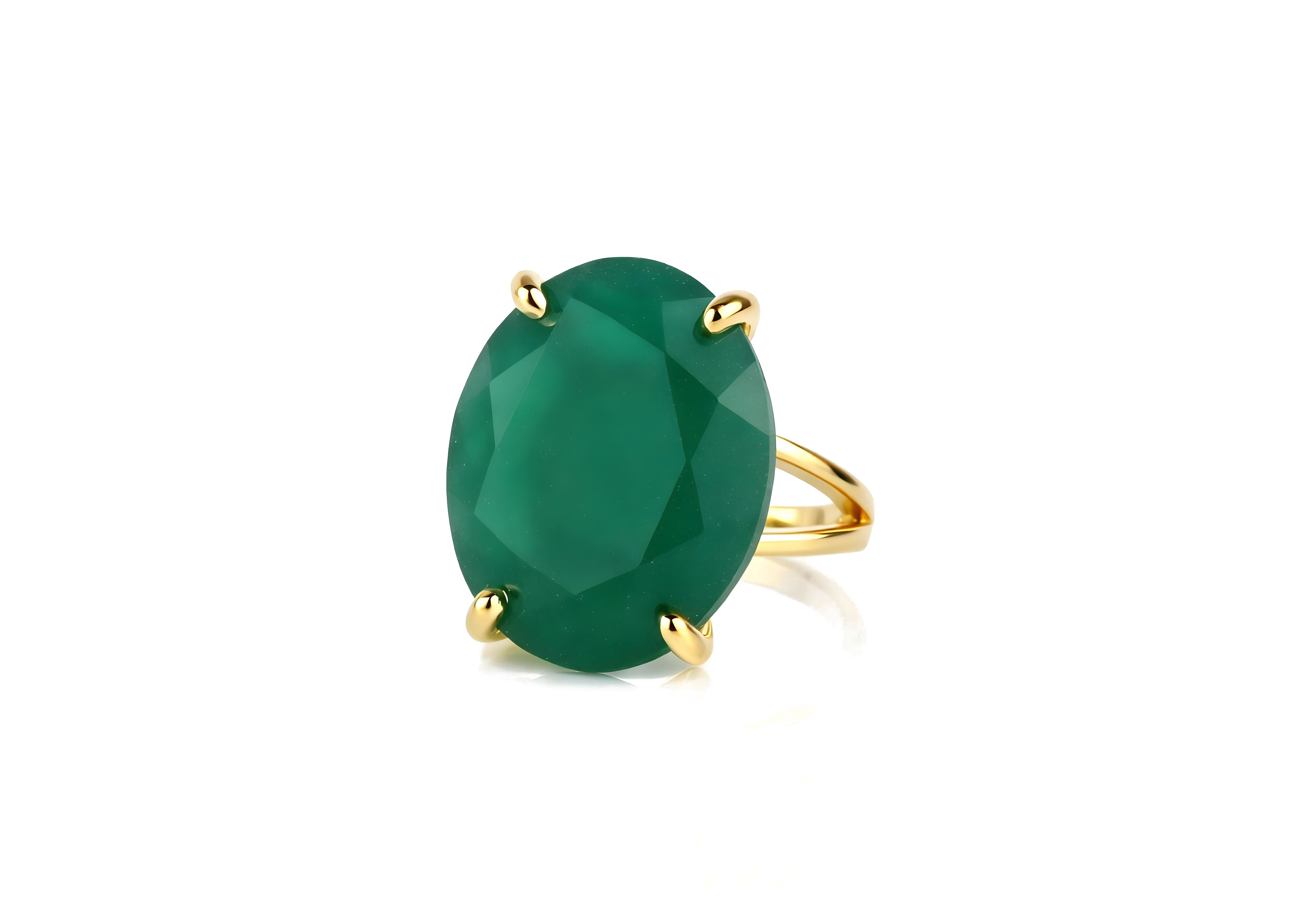 This Green Onyx ring captures attention with its vivid emerald-like hue and faceted oval cut. Set in a polished 14k gold filled band, it blends sophistication and natural charm, perfect for cocktail events or everyday confidence.