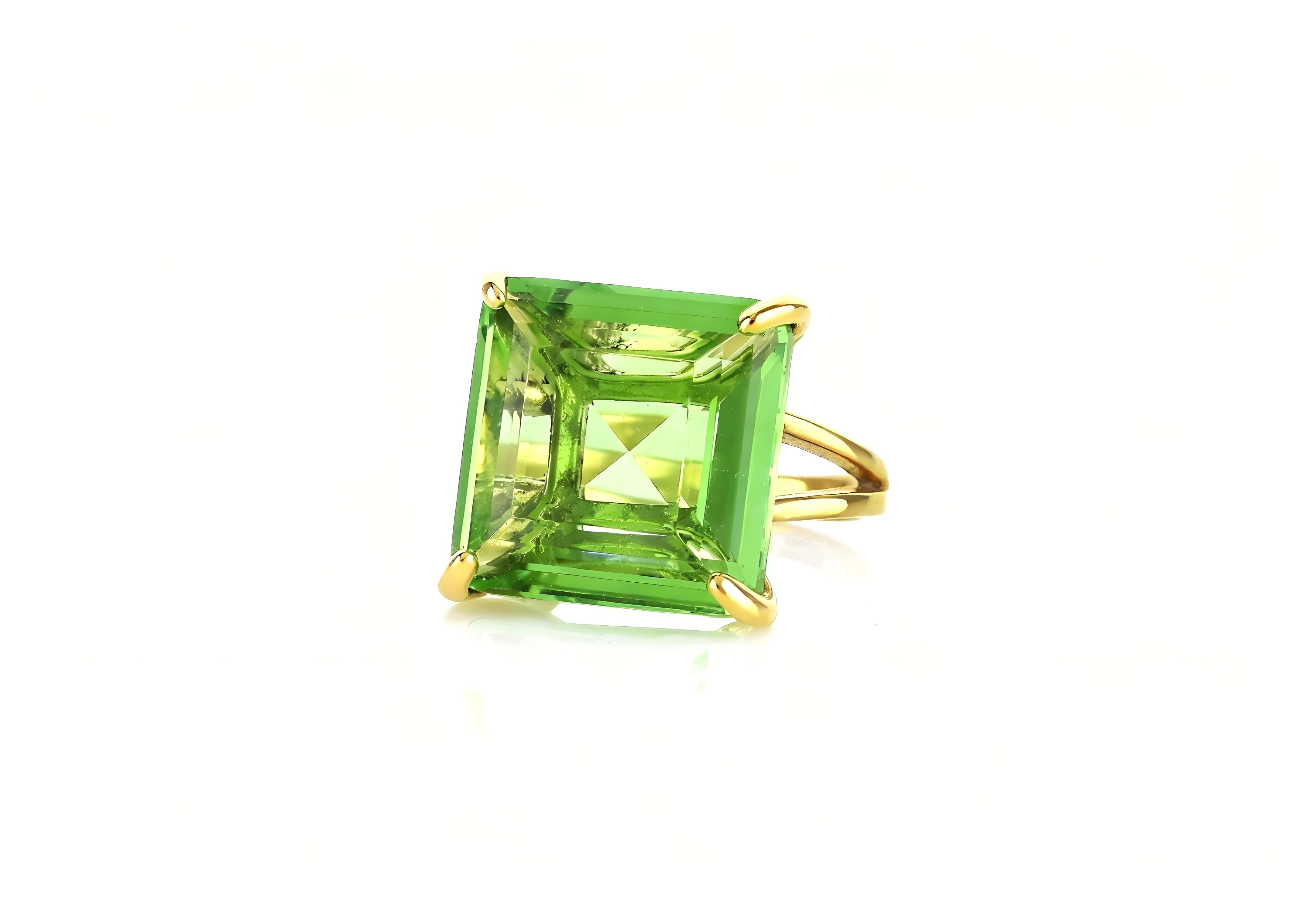 Make a bold statement with our Gold Statement Ring, featuring a stunning green tourmaline in a square cut gemstone setting. This elegant vermeil gold ring is perfect for those born in October, offering a luxurious touch with its yellow gold finish. The cocktail solitaire design makes it ideal for special occasions or adding a touch of glamour to everyday wear. Whether you're celebrating a birthday or looking for a unique accessory, this ring is a perfect choice.