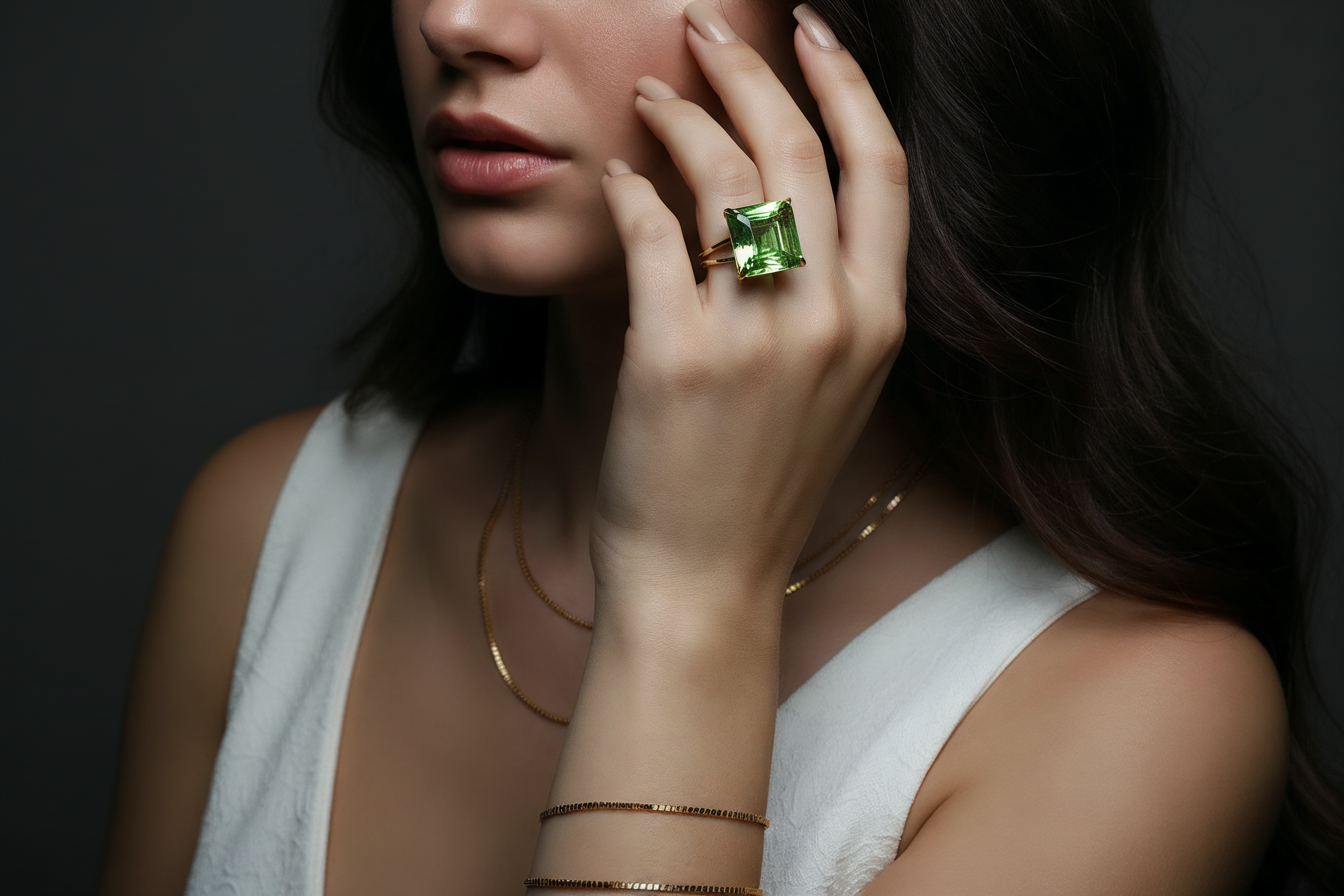 Green Tourmaline Gold Statement Ring
