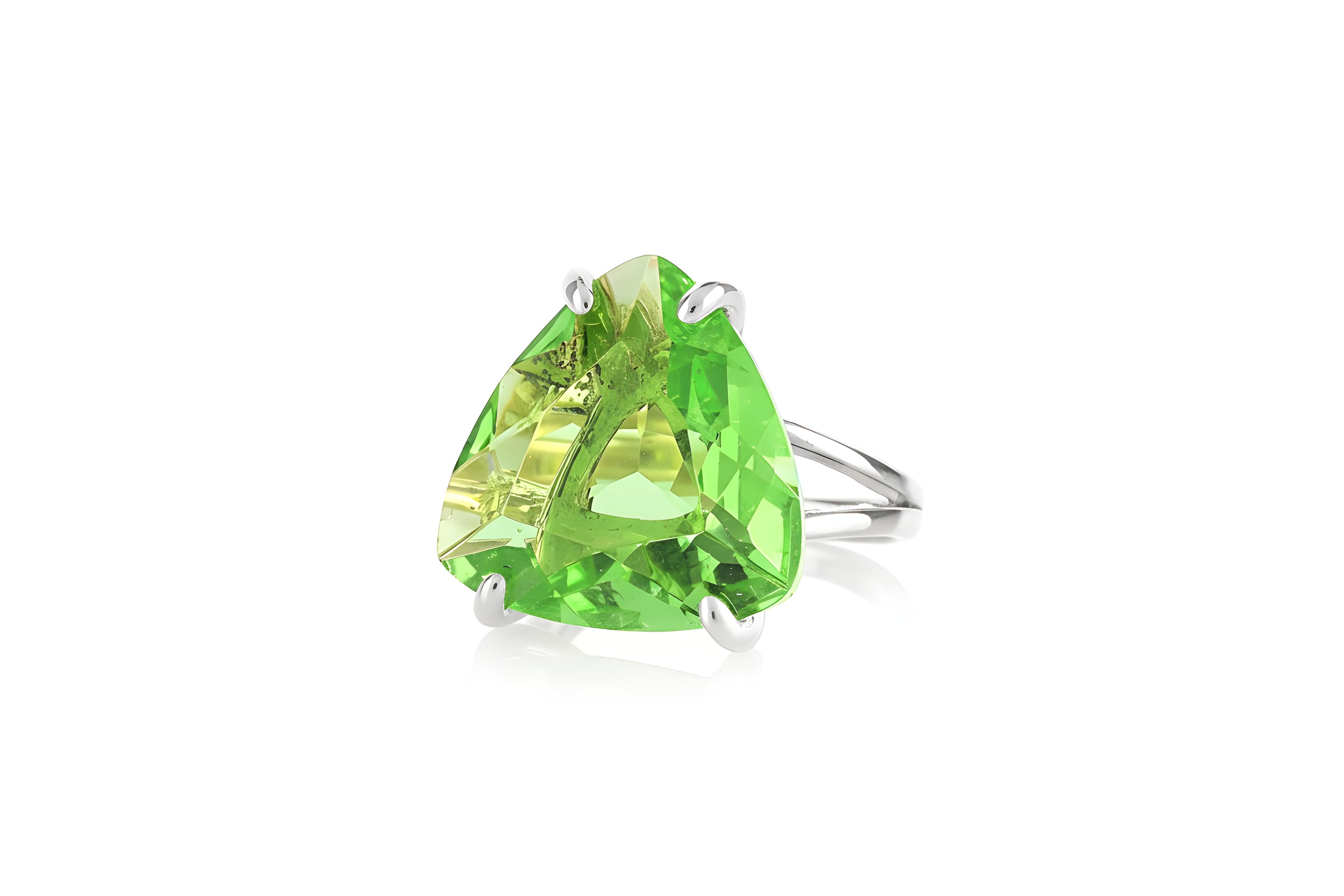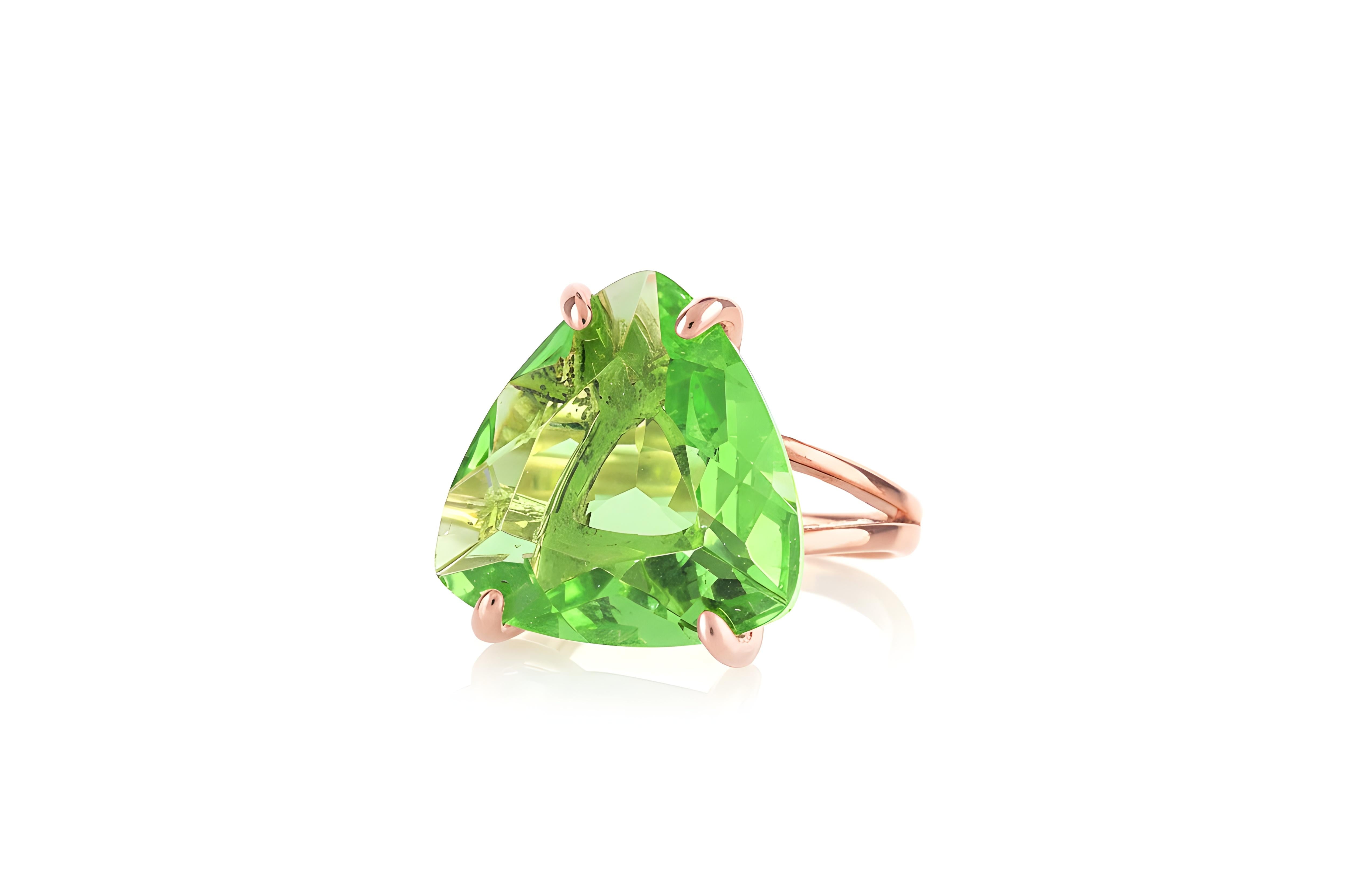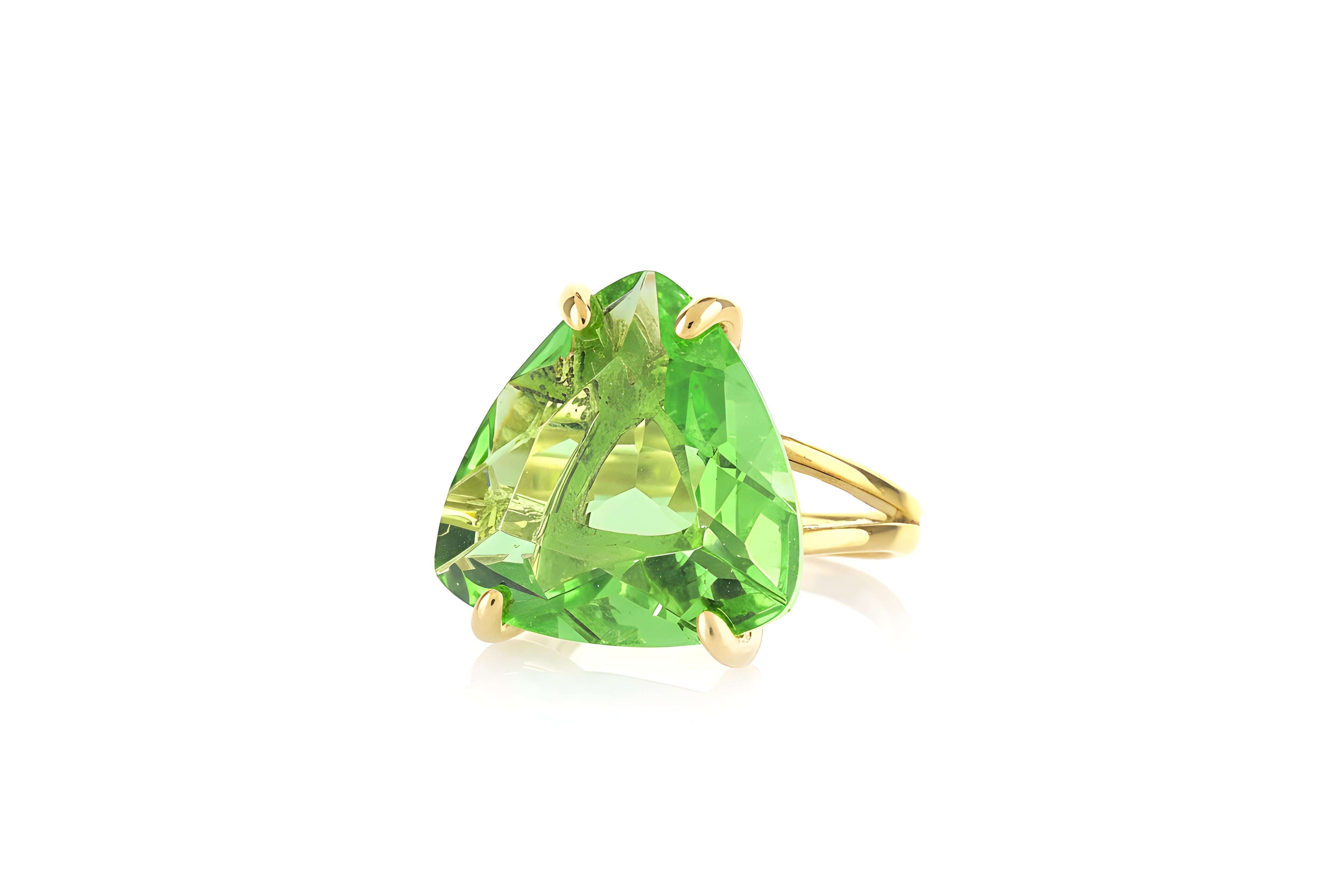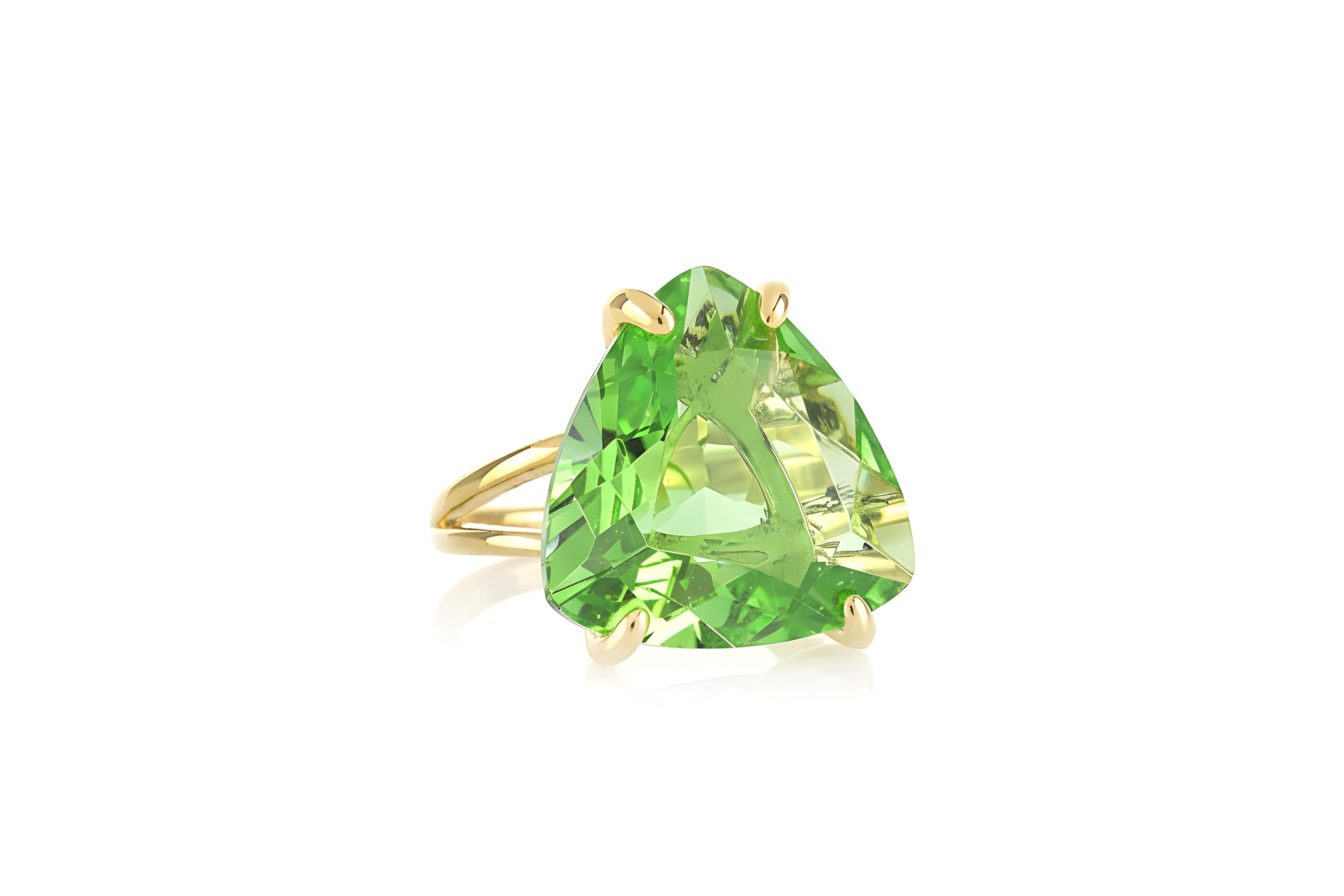 Make a statement with our Green Tourmaline Trillion Cut Ring, featuring a striking 18mm trillion cut green tourmaline set in luxurious 14k gold. This bold gemstone ring is perfect for women who love unique and sophisticated jewelry. The vibrant green tourmaline adds a pop of color and elegance to any outfit, making it ideal for special occasions or everyday wear. Whether you're looking for a gift or a stunning piece to elevate your own jewelry collection, this ring is a perfect choice.