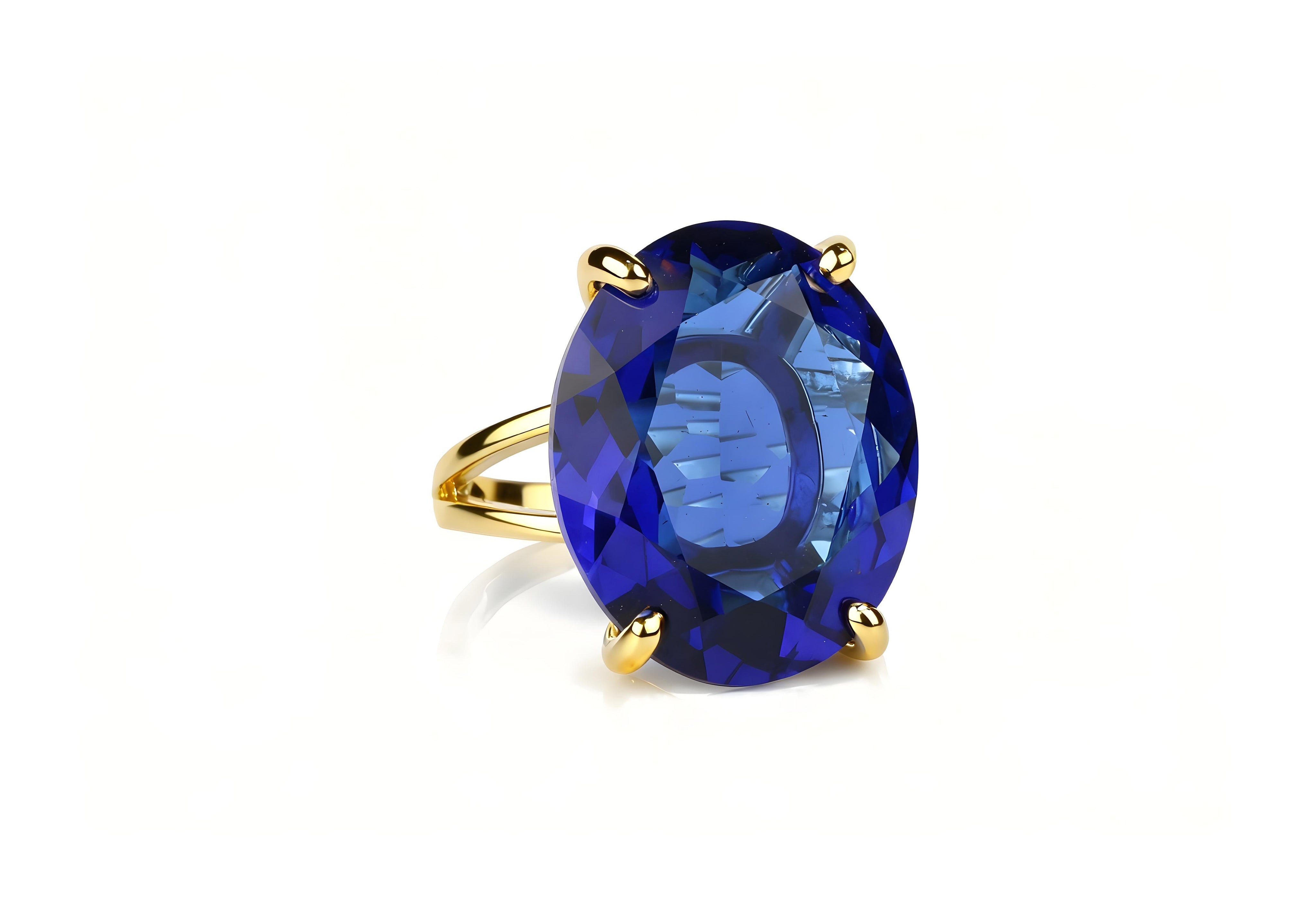 Handmade 14K Gold Statement Oval Sapphire Ring