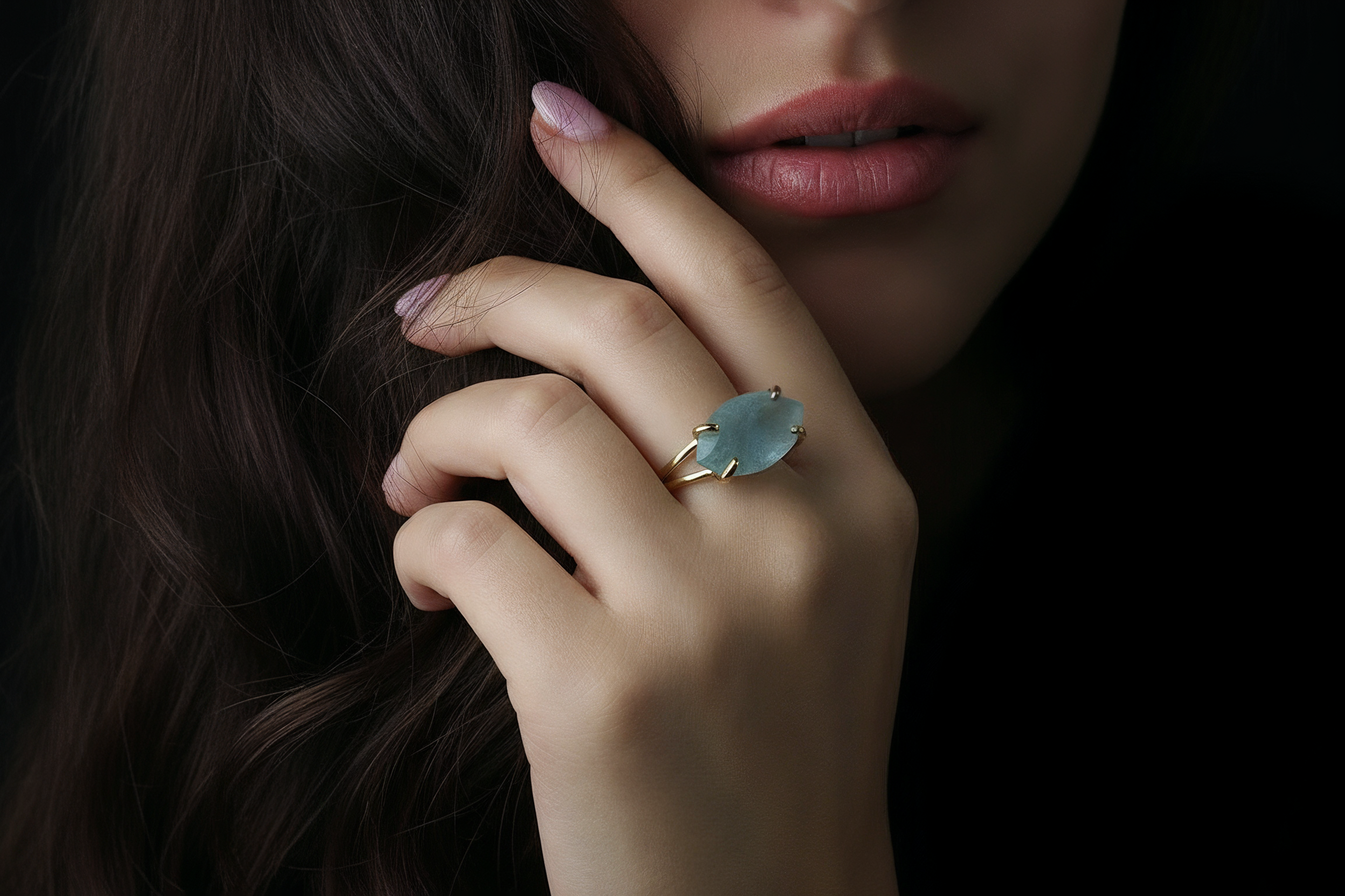 This aquamarine marquise gemstone ring embodies calm and balance with its soft blue tone and graceful marquise shape. Set in polished sterling silver, it reflects both modern minimalism and gentle spiritual energy. Perfect as a March birthstone or a meaningful gift, this handmade ring symbolizes clarity, inner peace, and timeless elegance.