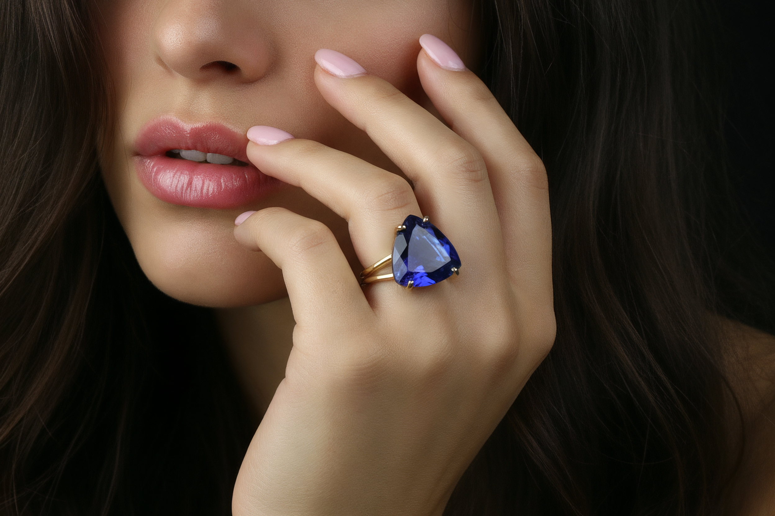 This silver trillion sapphire ring brings together clean geometry and deep blue brilliance. The triangular sapphire catches the light from every angle, creating a striking, modern look. Perfect as a September birthstone ring or a meaningful gift for a best friend, it’s a timeless piece that combines elegance and bold design.