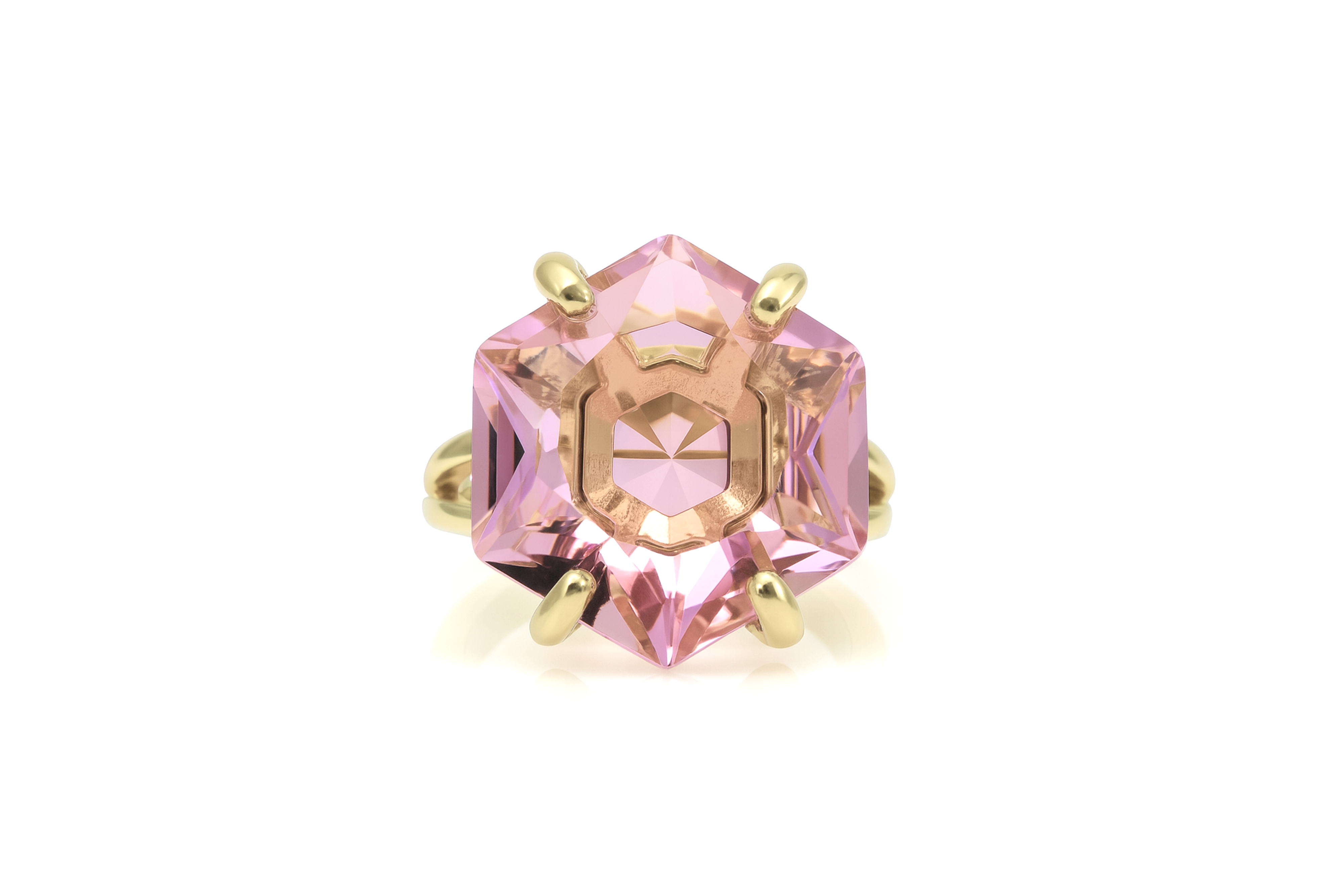 This hexagon shape rose quartz ring is crafted in solid yellow gold with a soft pink gemstone full of meaning. Known as the self love stone, rose quartz represents compassion, harmony, and positivity. The geometric hexagon cut gives it a modern look while the polished band adds timeless beauty. Perfect for women who love gemstone jewelry, this ring makes a thoughtful gift or a lasting everyday accessory.
