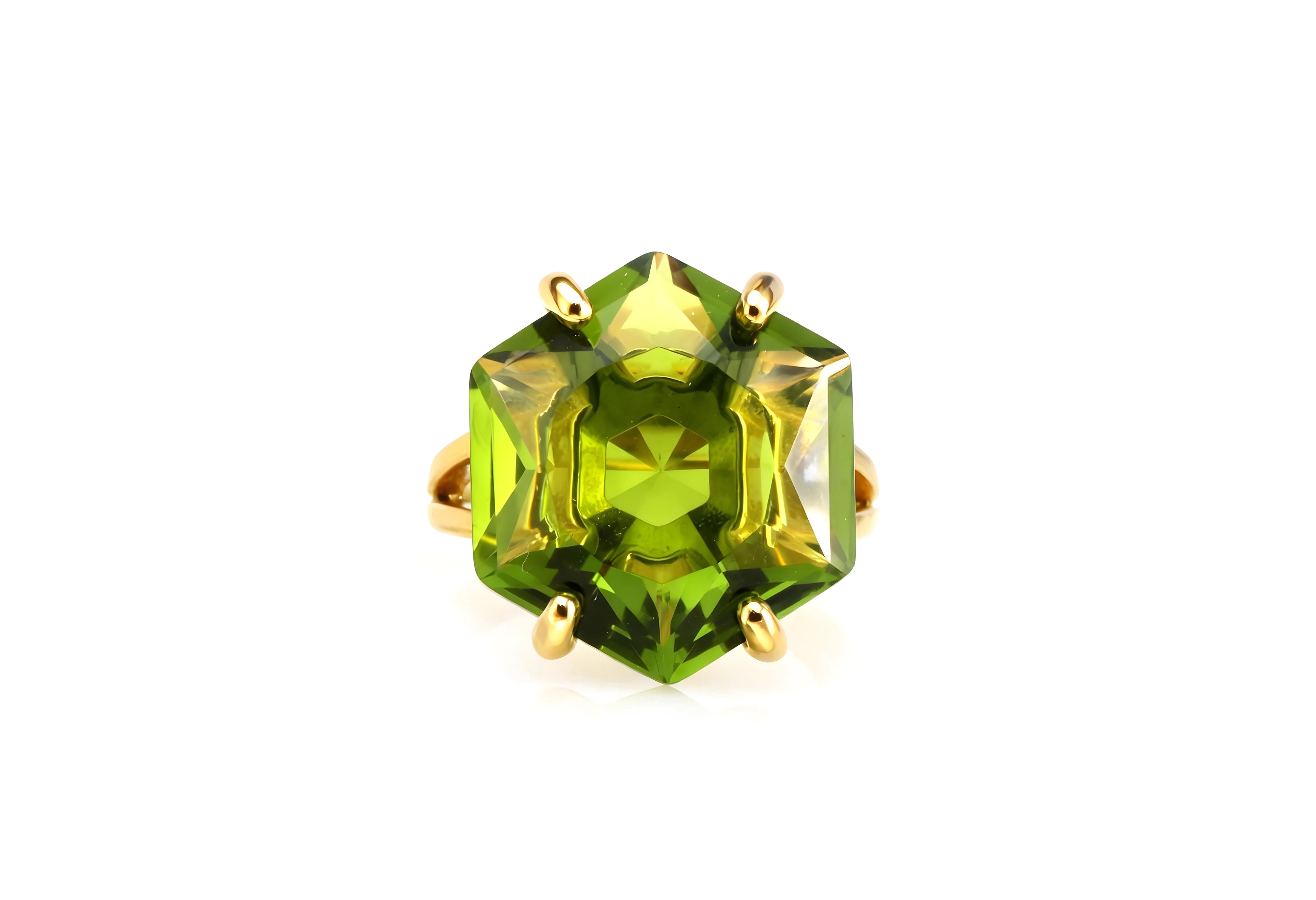 Hexagon Peridot Ring in 14k Gold
