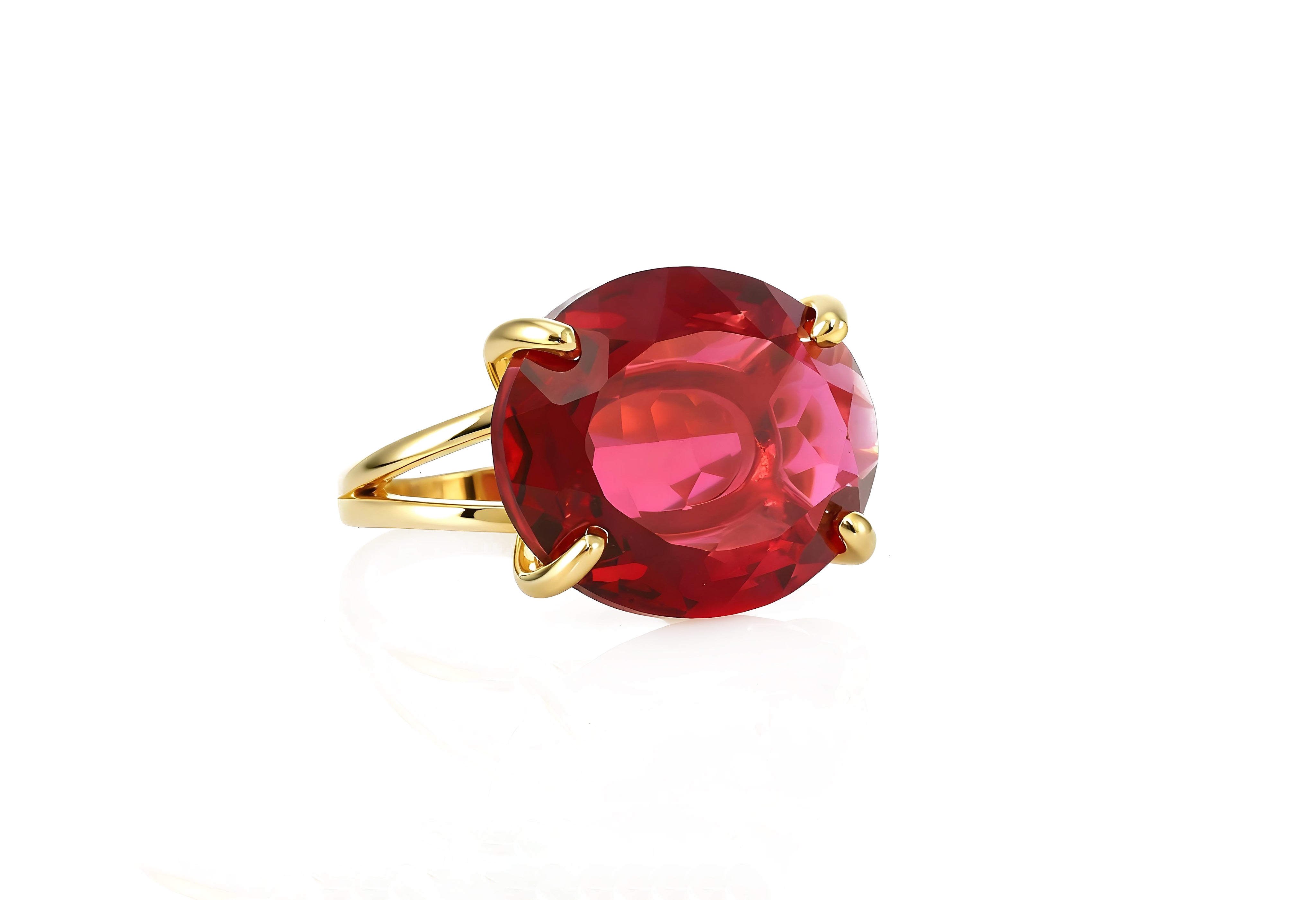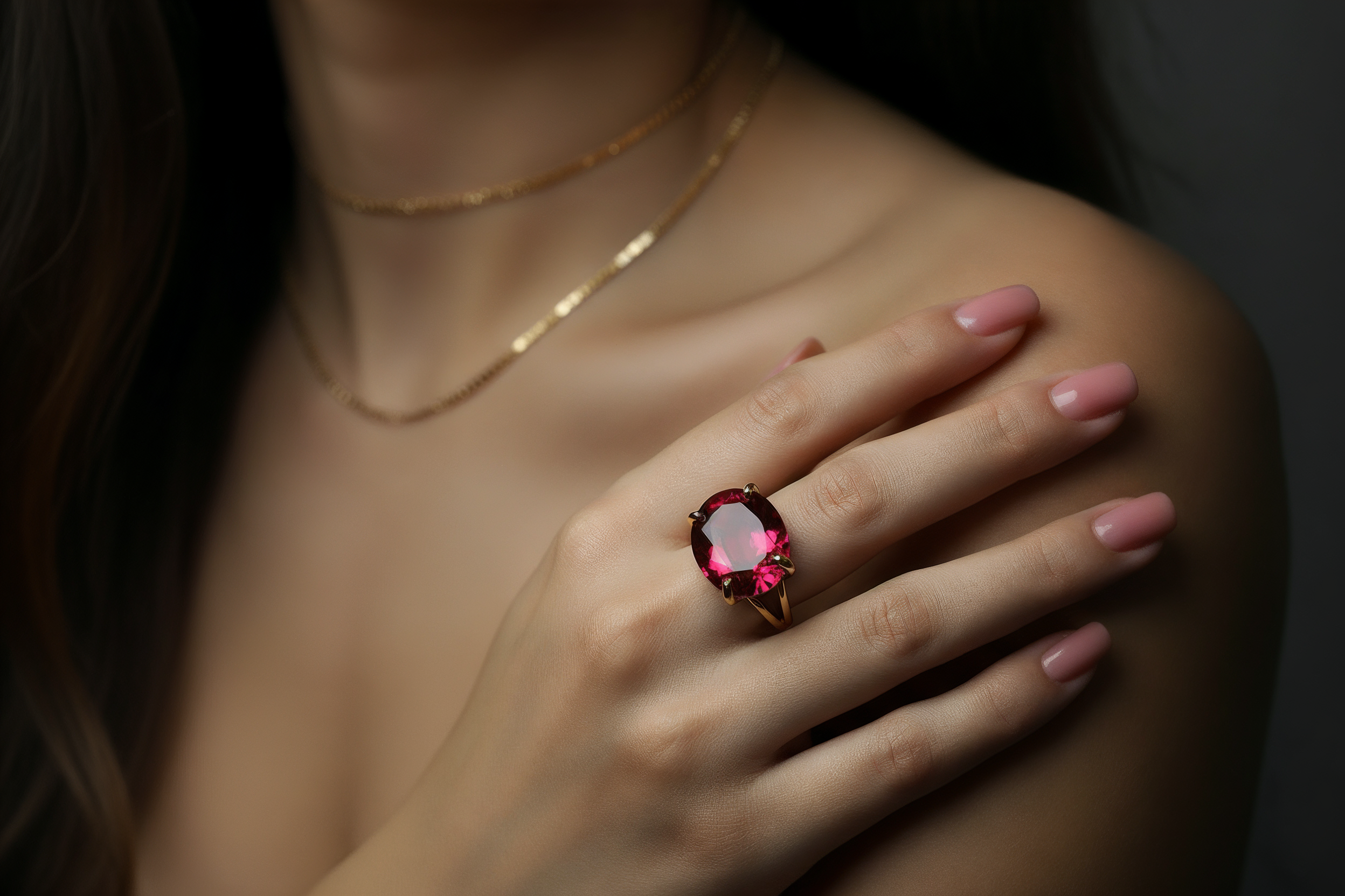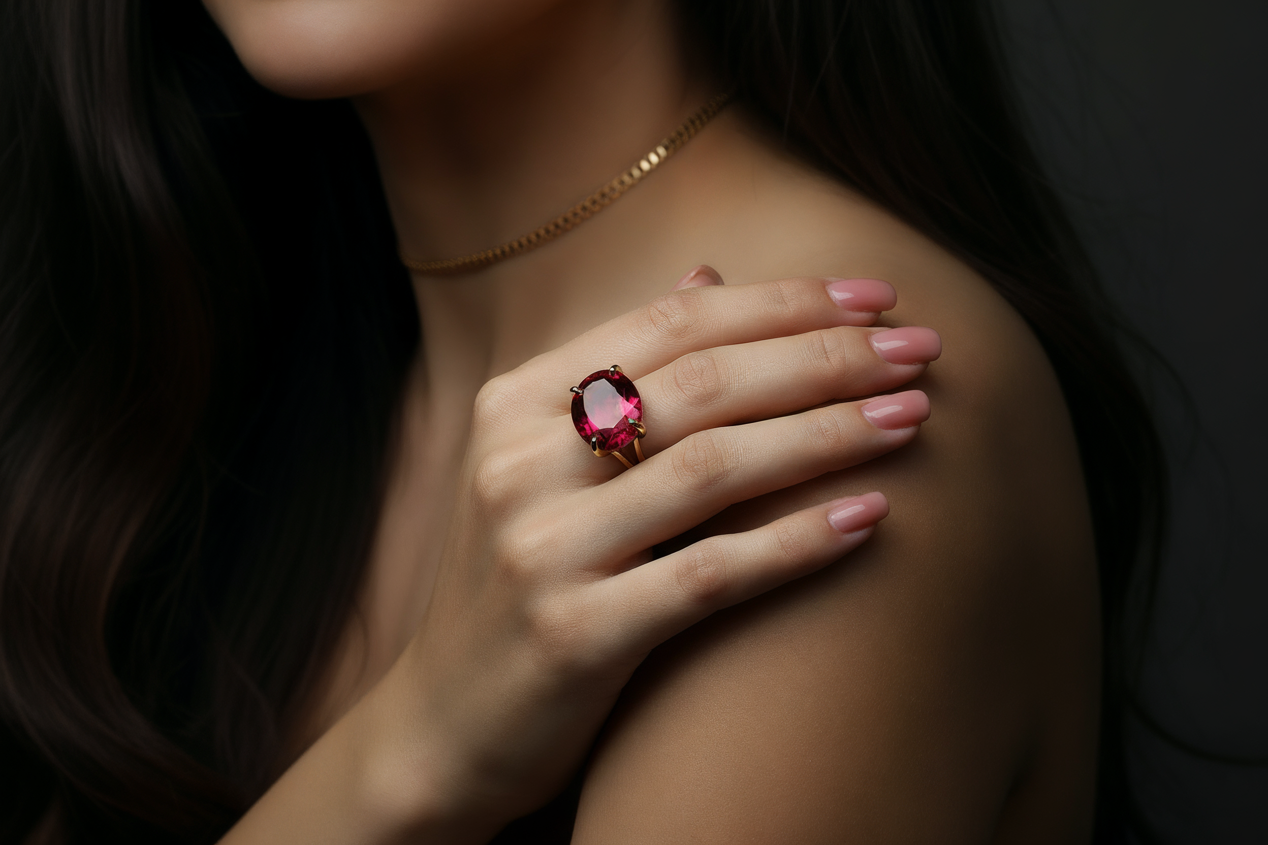 This gold filled oval-cut pink tourmaline ring captures the vivid brilliance of the gemstone with its faceted finish and radiant hue. Set in a secure four-prong design, it balances bold color with timeless elegance. A stunning choice for October birthdays or anyone drawn to the warmth of pink gemstones.