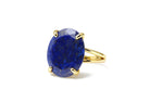 This stunning silver ring showcases a natural lapis lazuli gemstone, rich in deep blue hues and golden flecks that sparkle subtly under the light. The oval cut and prong setting enhance its beauty, making it a timeless piece for everyday elegance or special occasions.