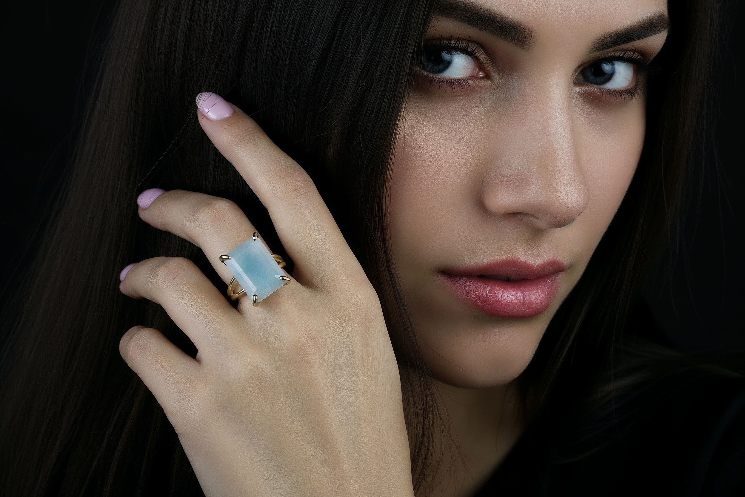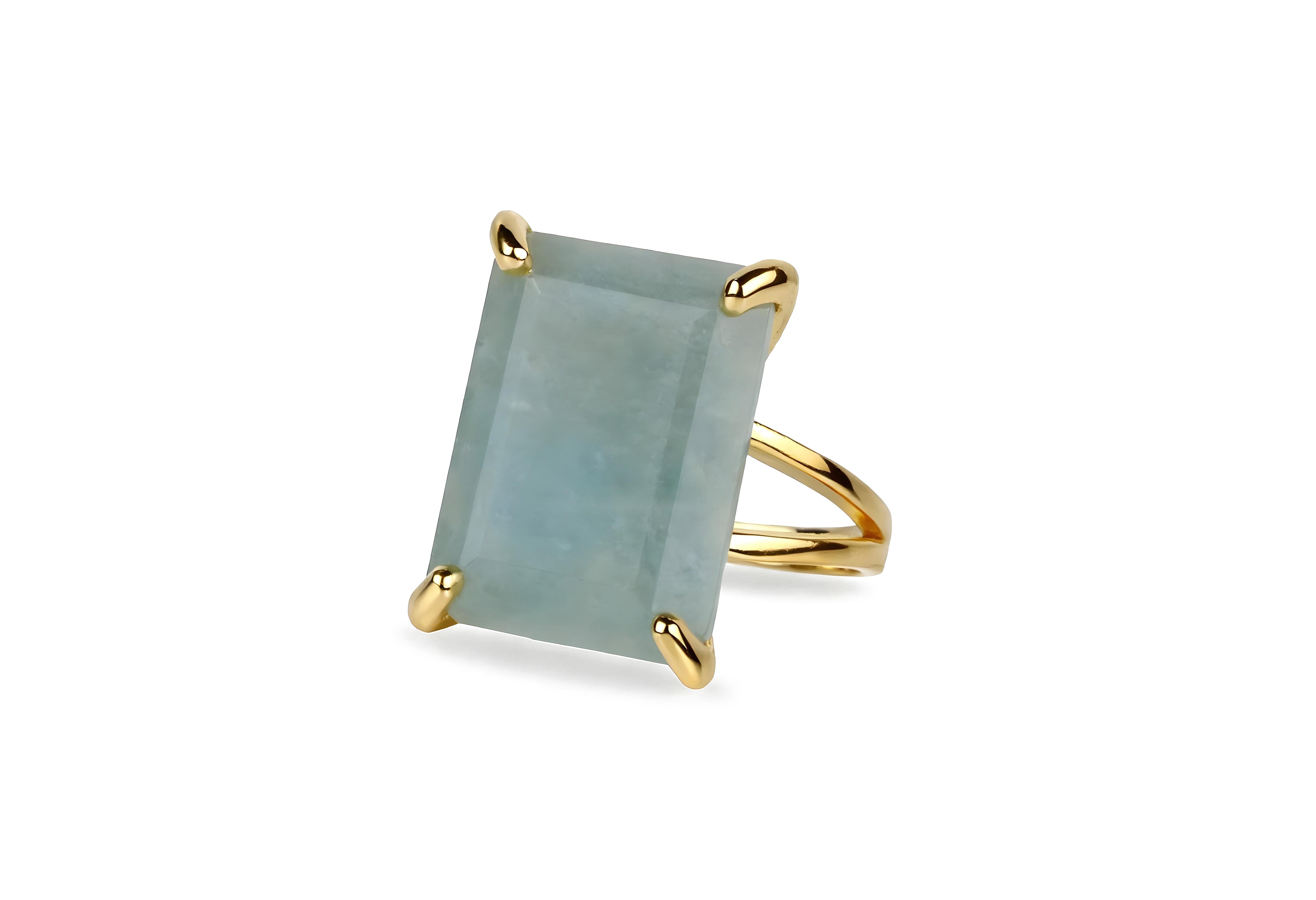 This 14k gold aquamarine ring features a radiant rectangular emerald-cut gemstone, perfectly set in a sleek golden frame. Its soft blue hue reflects clarity and serenity, making it an elegant addition for everyday wear or special occasions. A thoughtful March birthstone piece symbolizing calm and renewal — handcrafted for lasting beauty and sophistication.