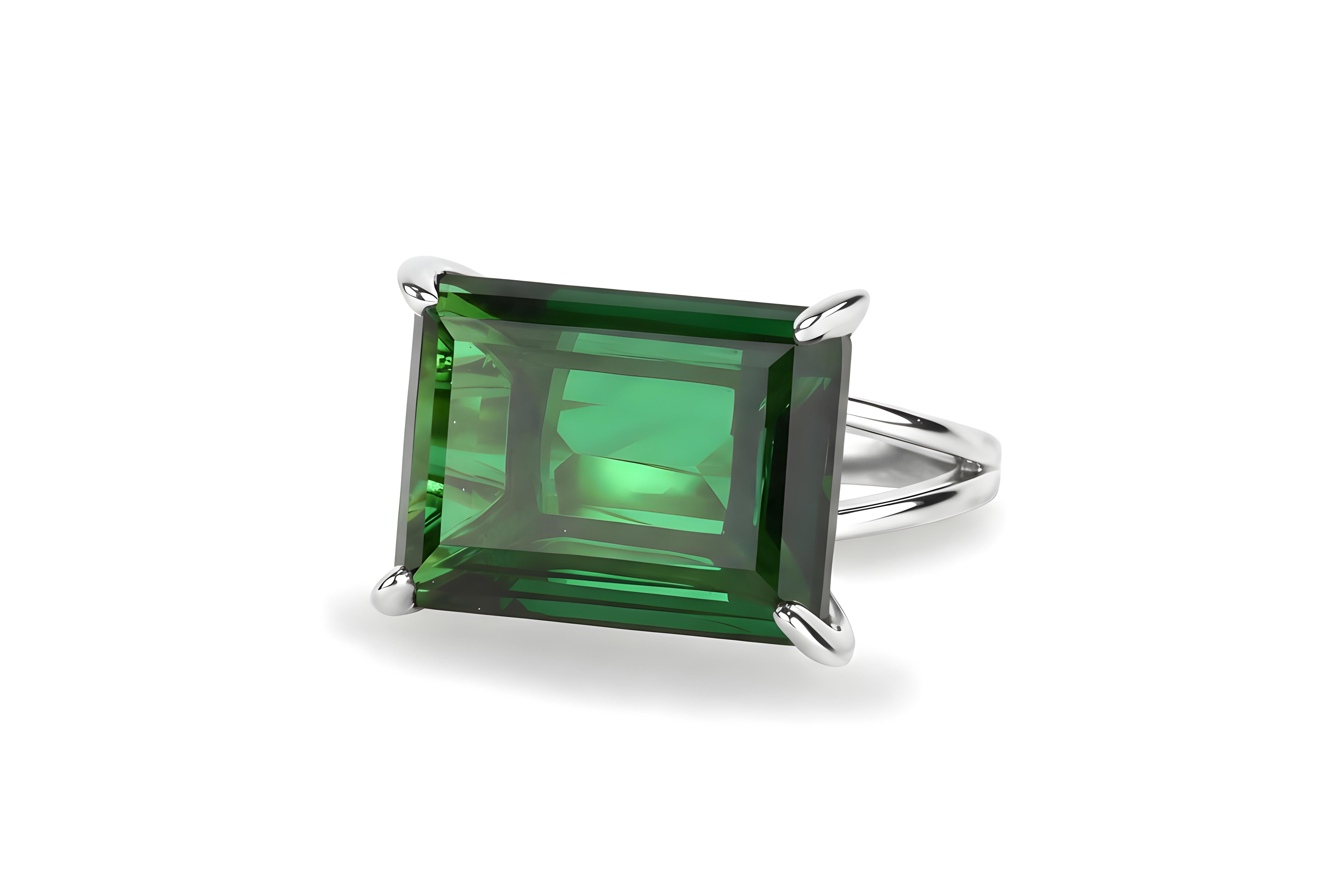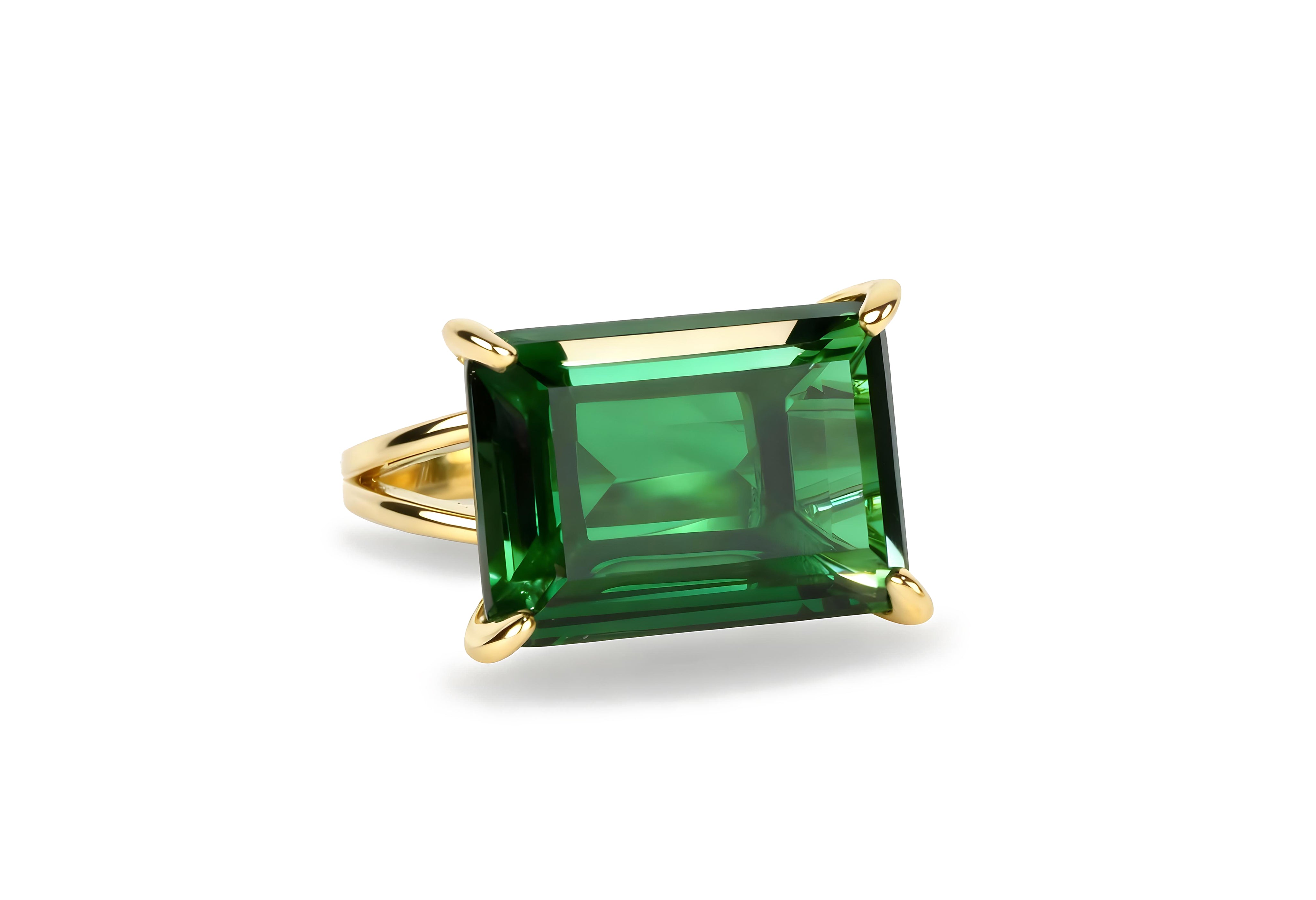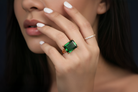 This striking ring features a wide, rectangular-cut emerald set in 14k gold, capturing the deep green brilliance of May’s birthstone. The mirror-polished gold band and precise prong setting highlight the gemstone’s natural glow, creating a timeless and luxurious statement piece. Perfect for gifting or special occasions, this vintage-inspired emerald ring embodies elegance, renewal, and sophistication.