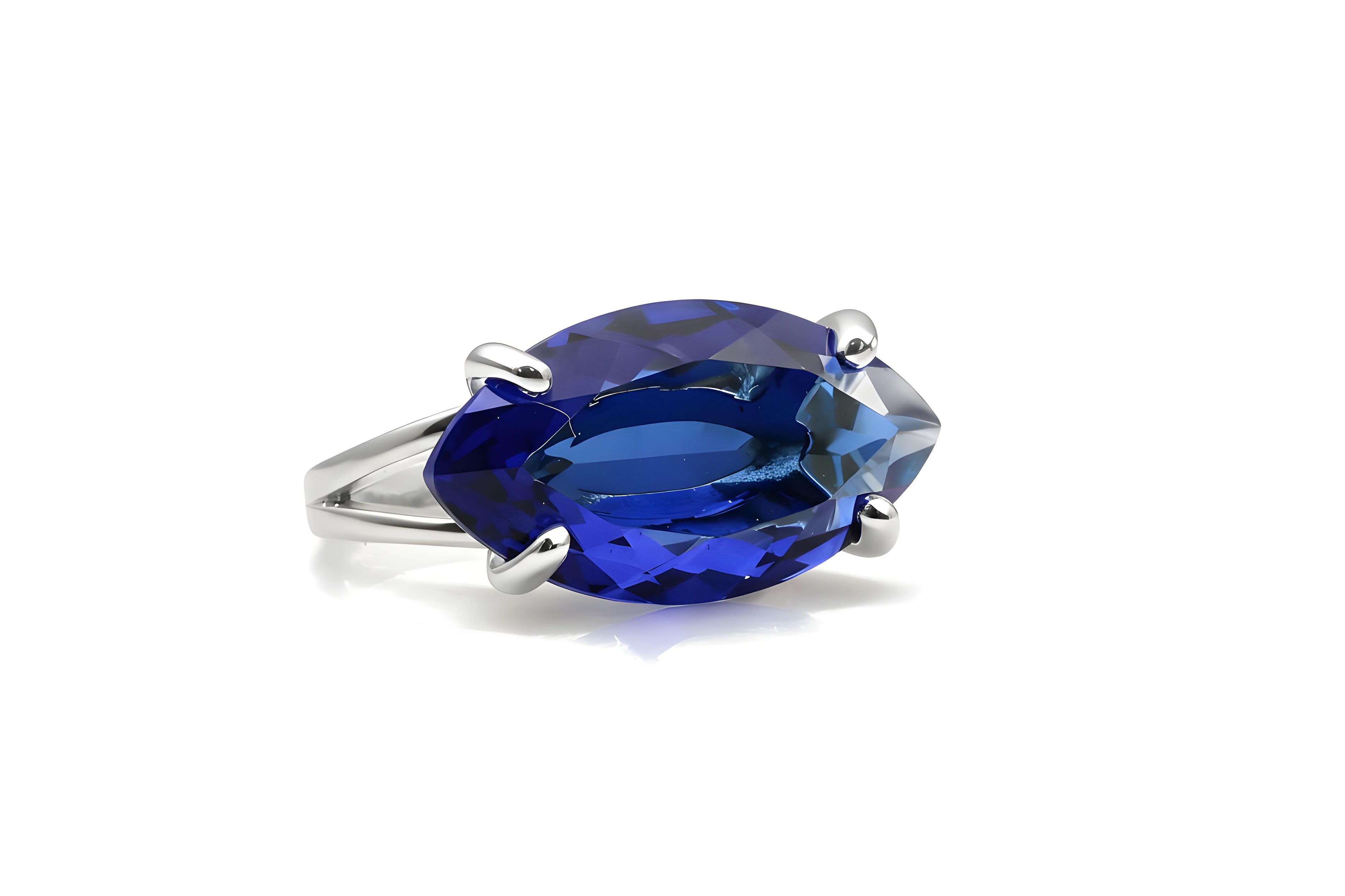 Marquise 12x22mm Sapphire Jewelry 925 Sterling Silver Ring