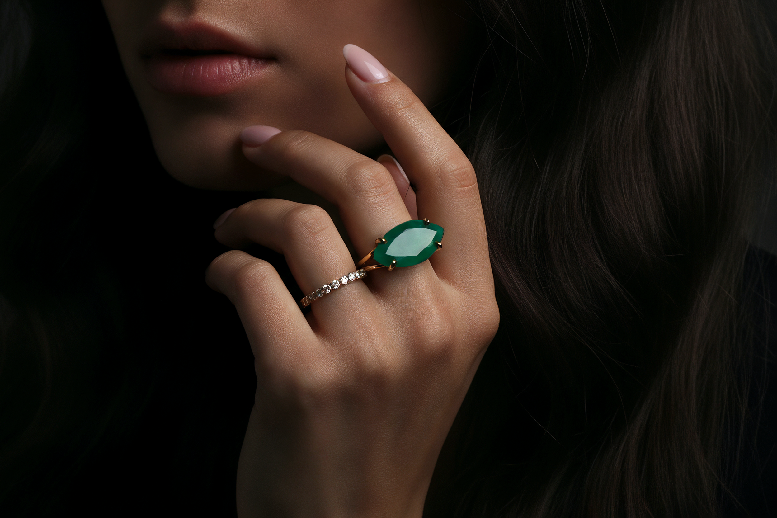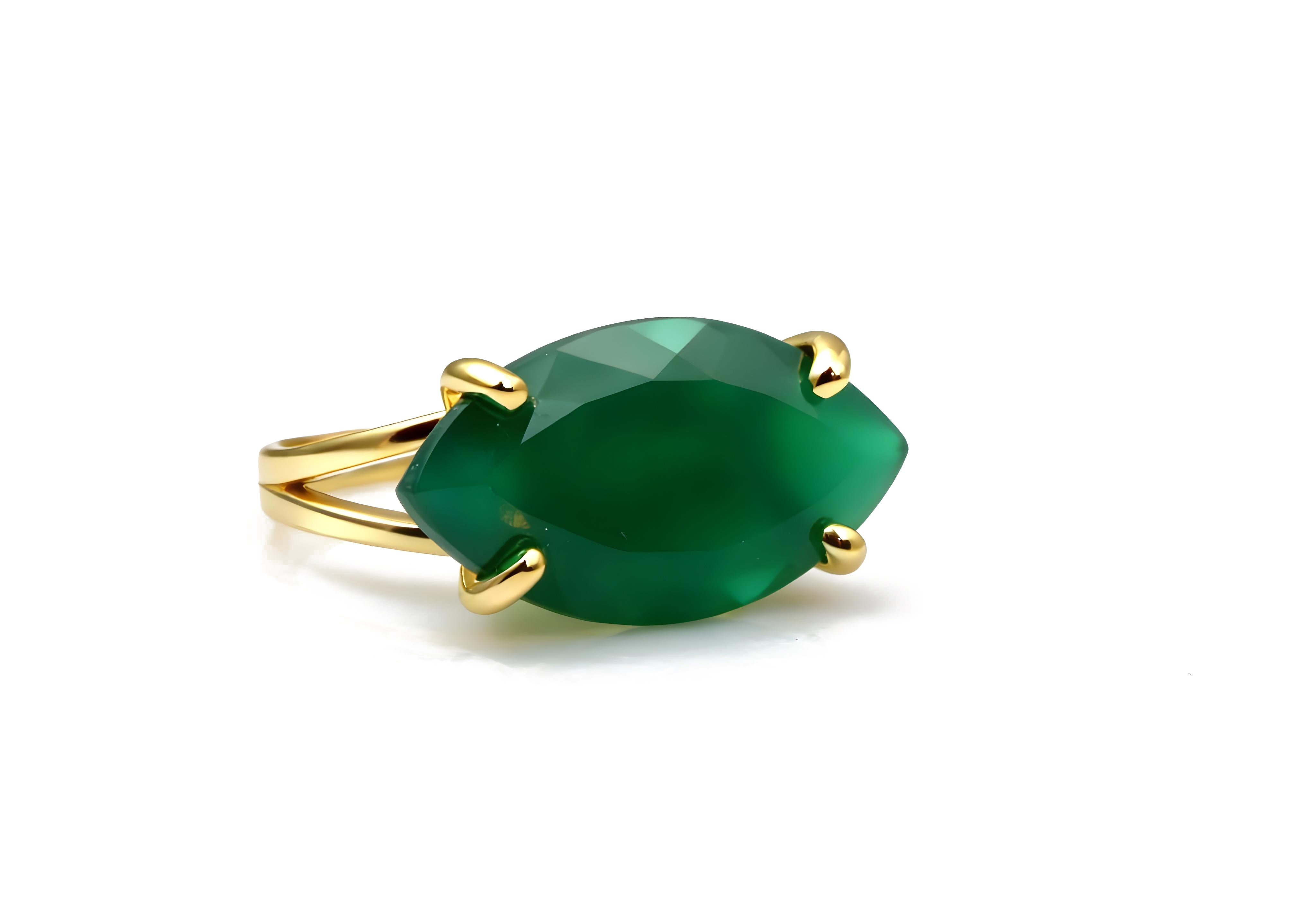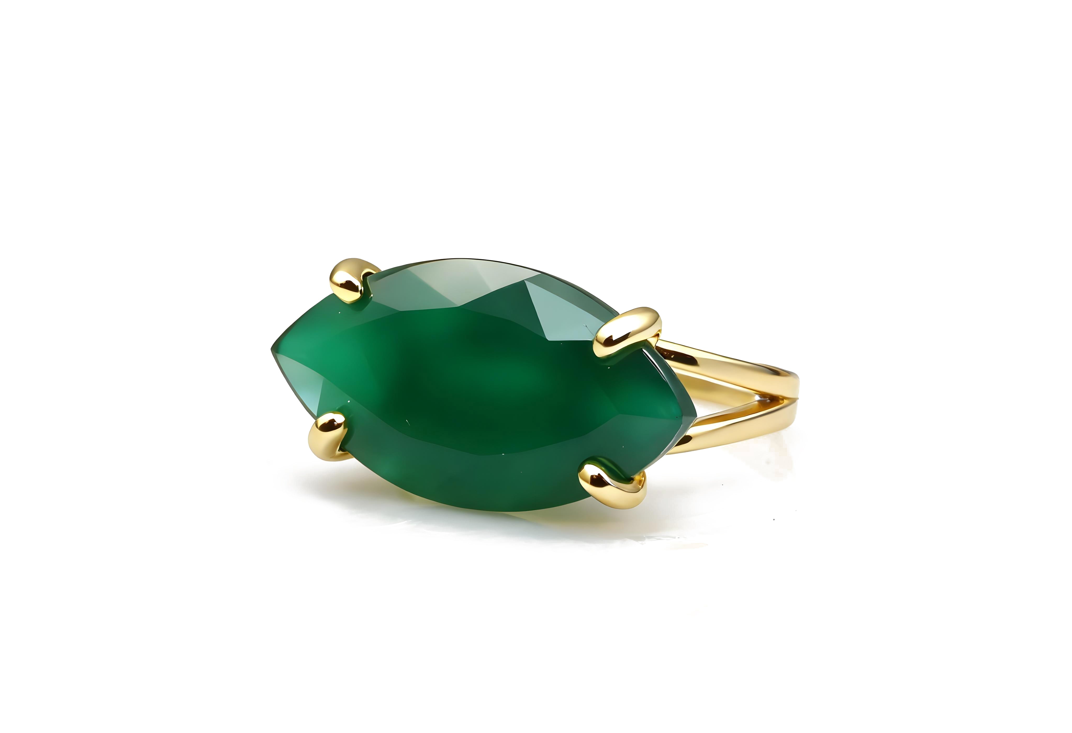 A radiant oval-cut green onyx gemstone takes center stage in this 14k gold ring, glowing with a rich emerald hue that brings life and vibrancy to any look. Expertly handcrafted with a mirror-polished gold band, this ring blends timeless elegance with modern simplicity. Perfect for daily wear or special occasions, it makes a thoughtful May birthstone gift or a striking statement piece that highlights natural beauty and confidence.