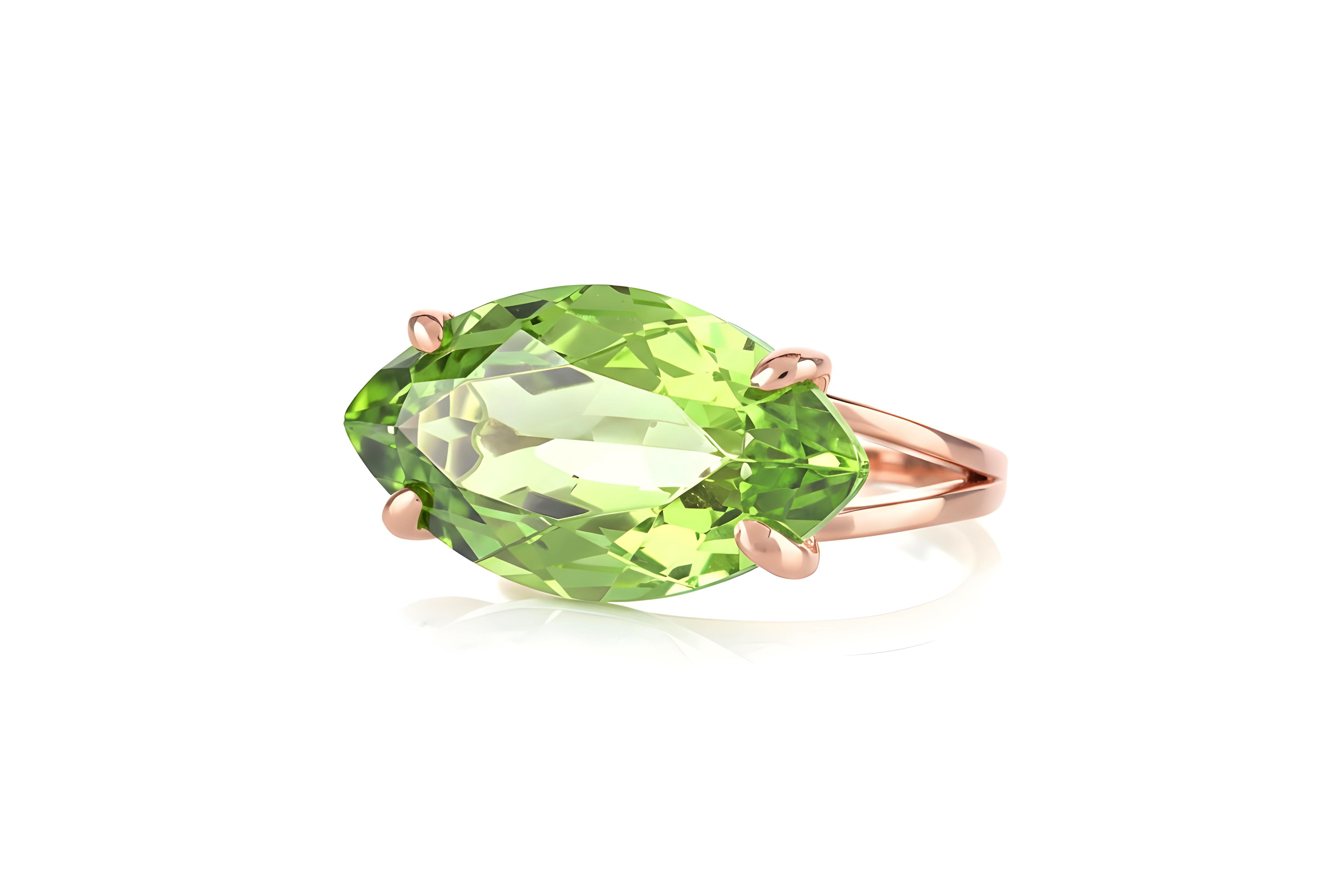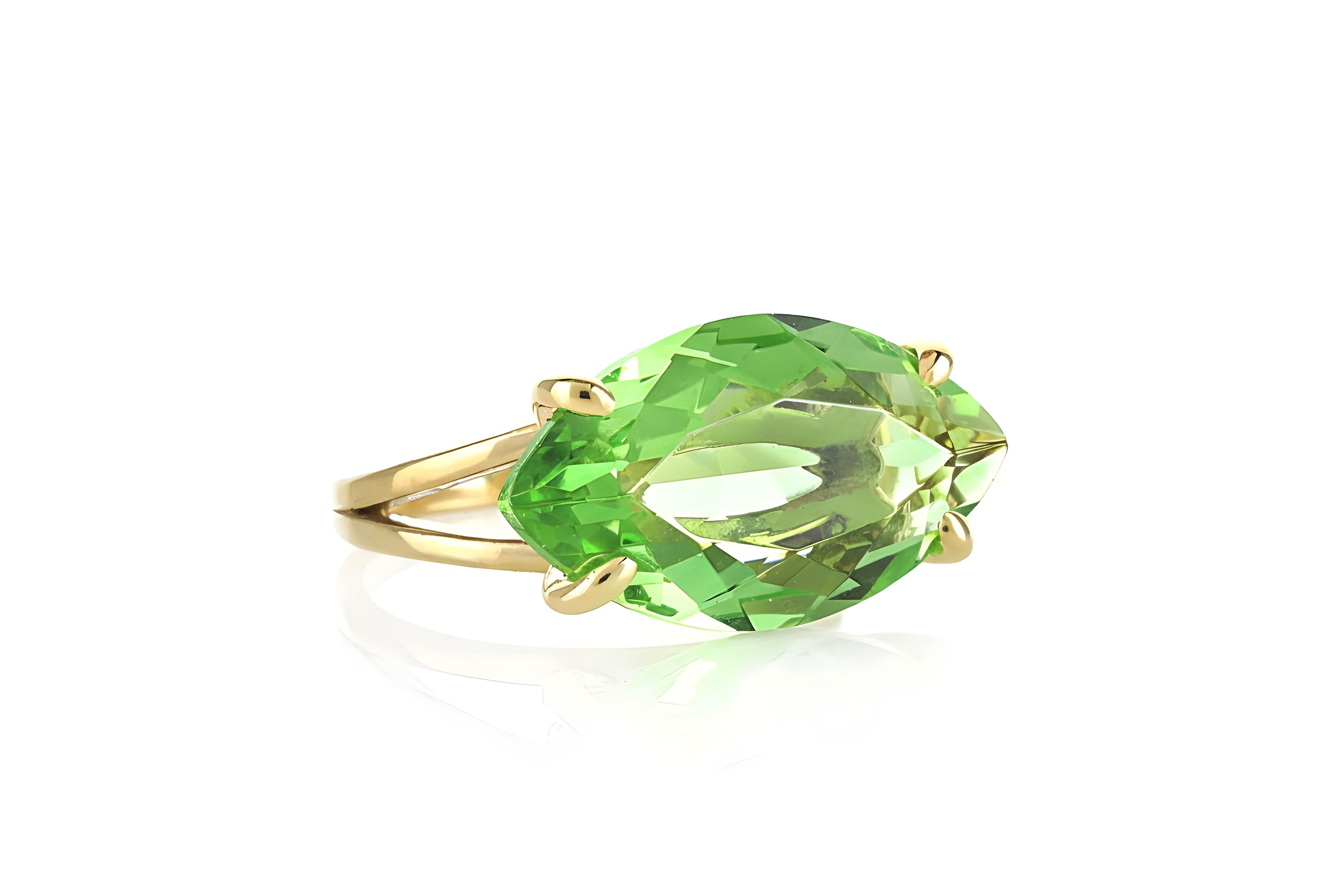 This marquise-cut Green Tourmaline ring showcases bright, vivid green tones set in polished 14k yellow gold. The elongated marquise shape enhances the gemstone’s sparkle while creating a refined and eye-catching profile. A secure multi-prong setting keeps the stone elevated, making it ideal for everyday wear or gifting. As an October birthstone, Green Tourmaline is known for its vibrant color and energetic presence. Each piece is made with attention to detail, and a personalized engraving option adds a meaningful touch.