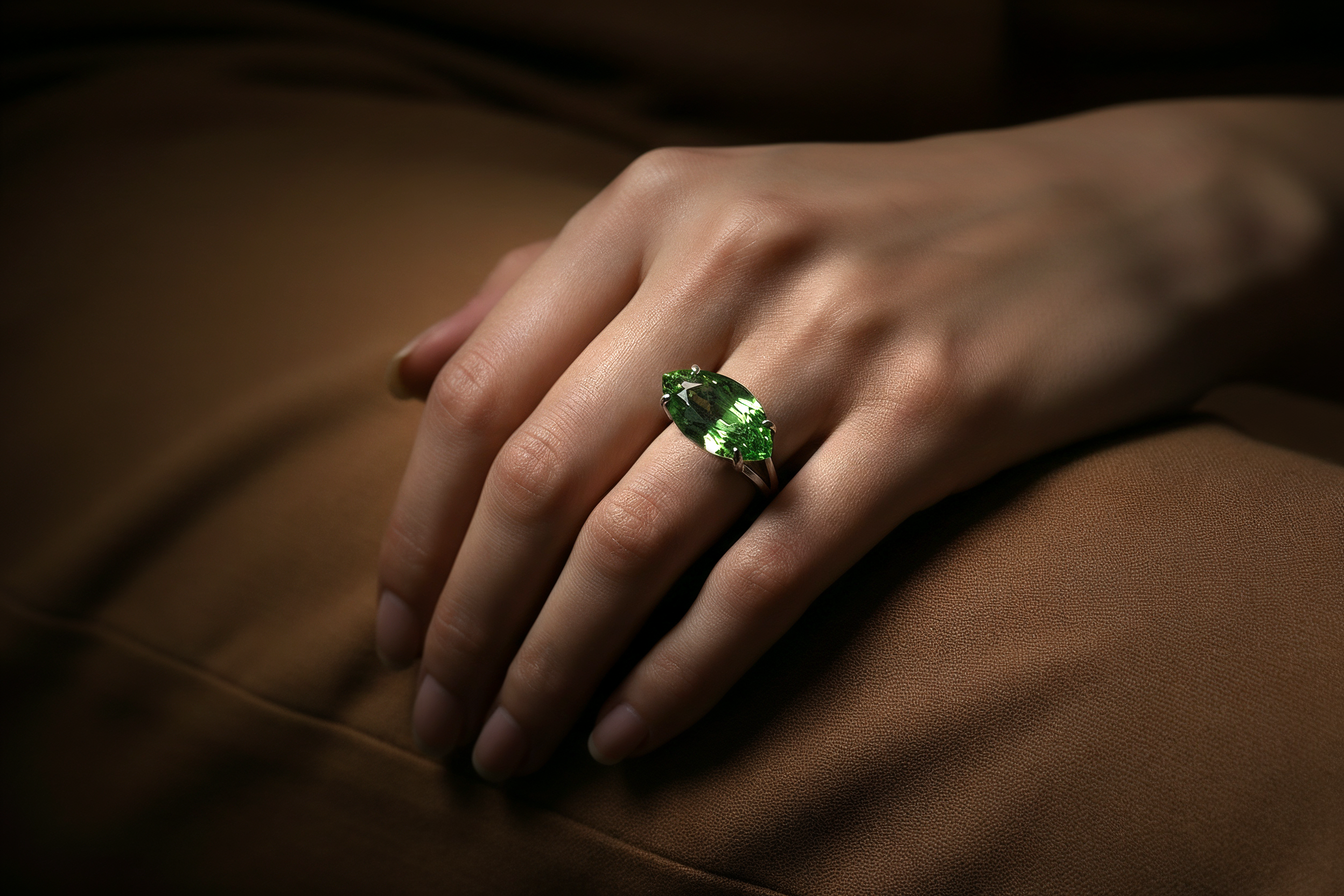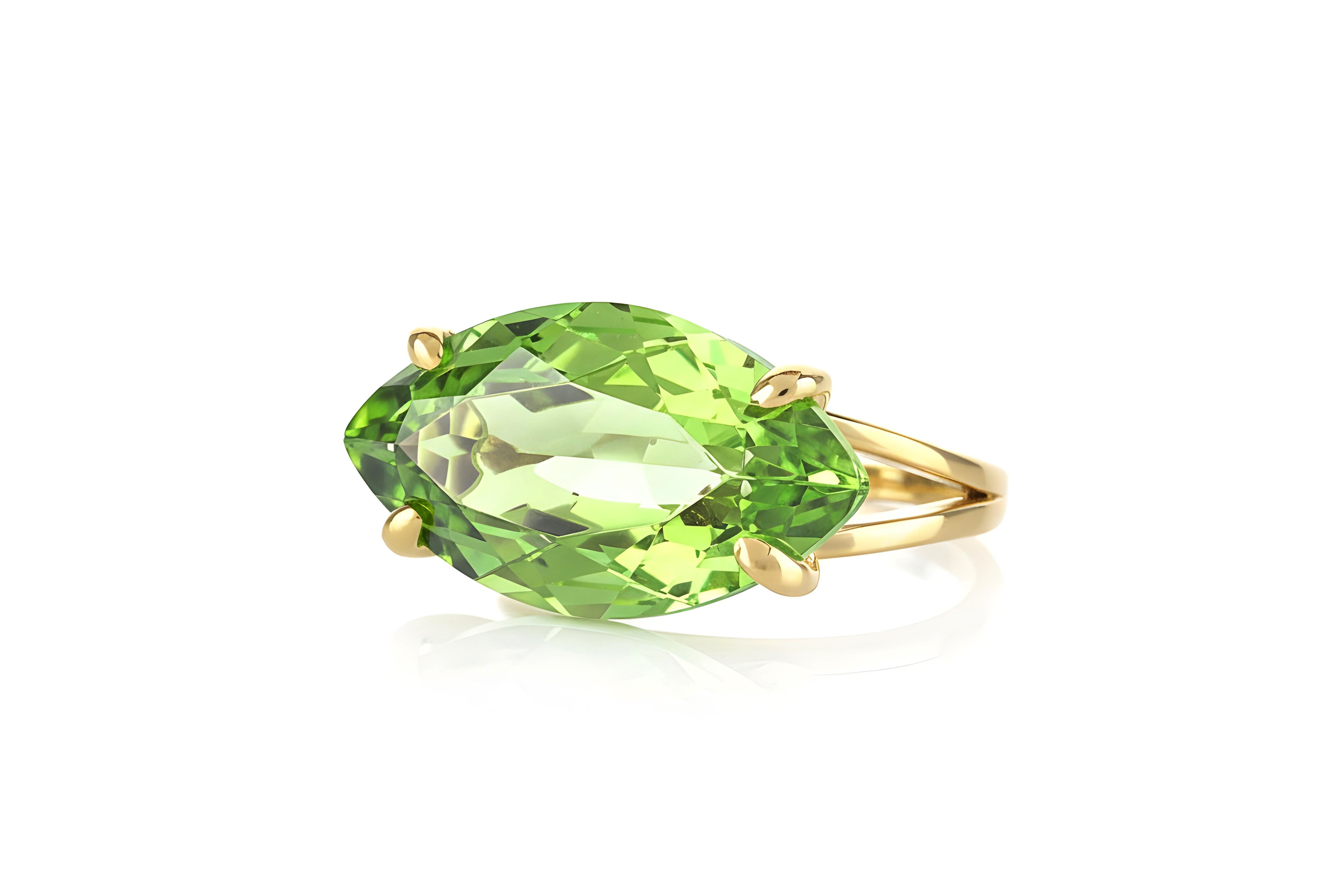 This sterling silver ring features a vibrant marquise-cut Green Tourmaline that delivers a bright, glowing green sparkle. The elongated marquise shape enhances the stone’s brilliance, while the polished silver band provides a clean and modern finish. Designed for everyday wear, the secure prong setting keeps the gemstone elevated and eye-catching. Perfect as a meaningful gift or a standout addition to any jewelry collection, this piece is crafted with attention to detail to showcase the stone’s natural beauty.