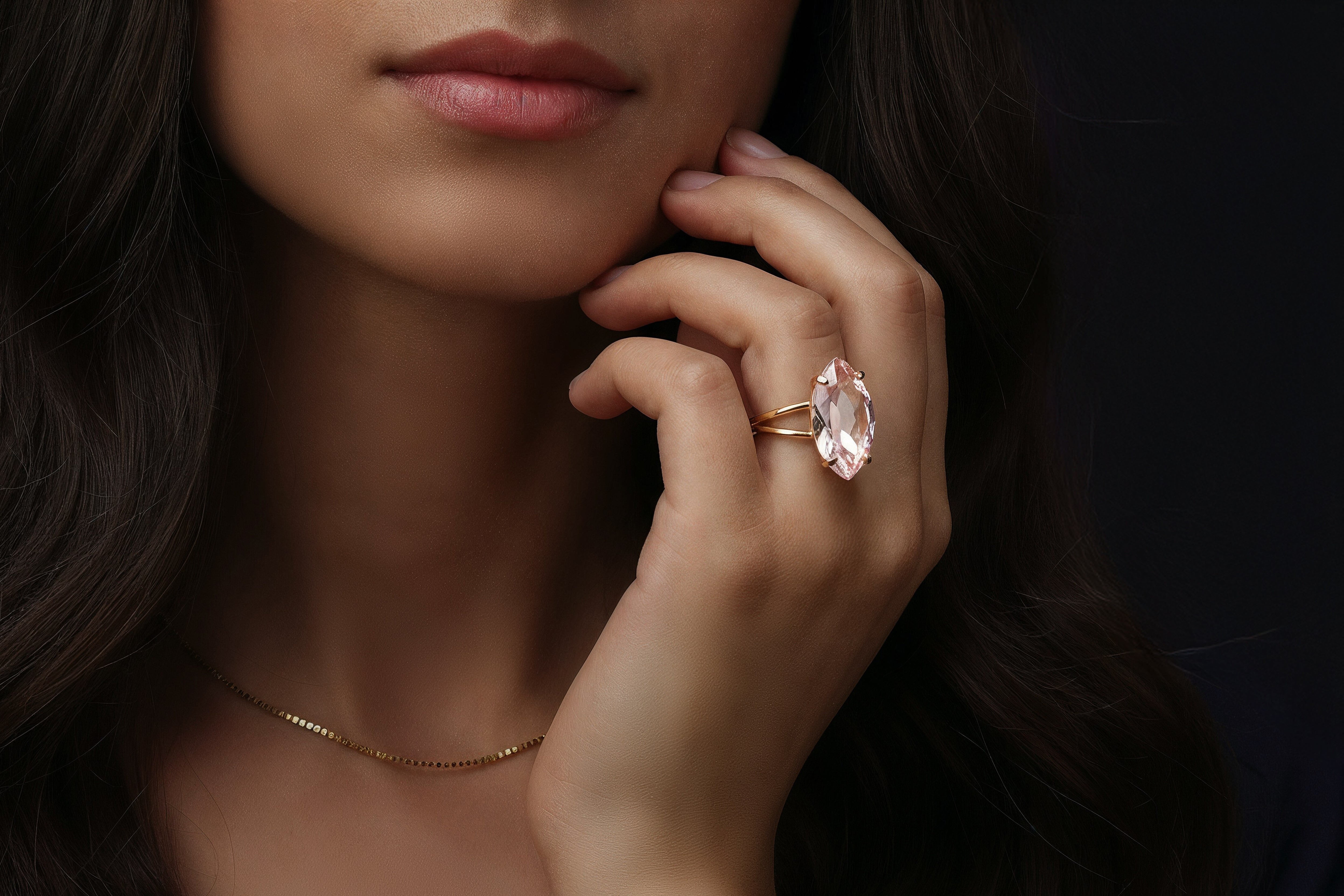 This sterling silver ring features a marquise-cut rose quartz, set in a polished silver band that highlights the stone’s gentle pink tones. Rose quartz, known as the stone of love and compassion, adds both meaning and beauty to this piece. Handcrafted with care, the ring blends timeless style with the healing properties of natural gemstones. Perfect as a daily wear ring, a thoughtful gift, or a special jewelry addition for women who appreciate silver gemstone rings.
