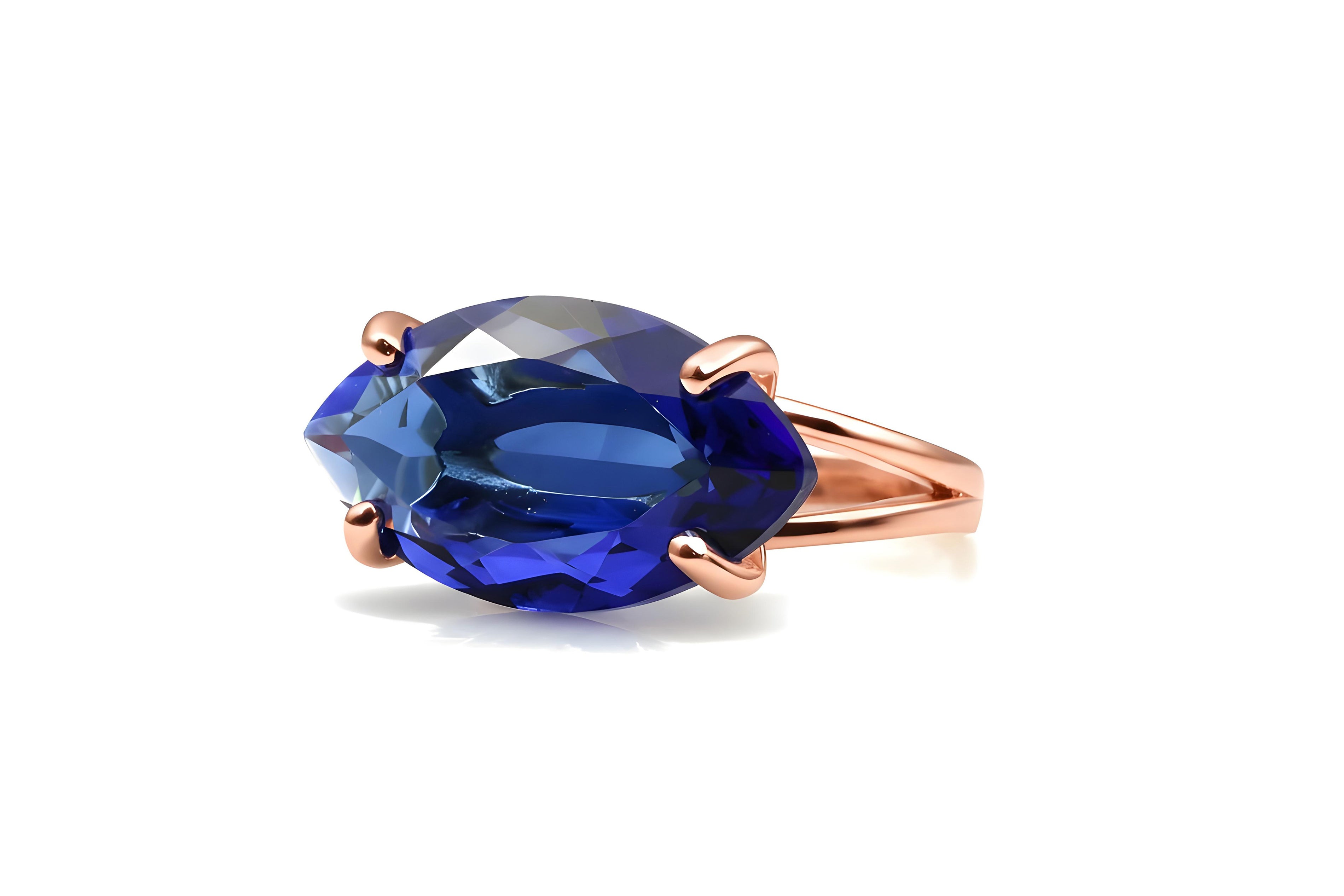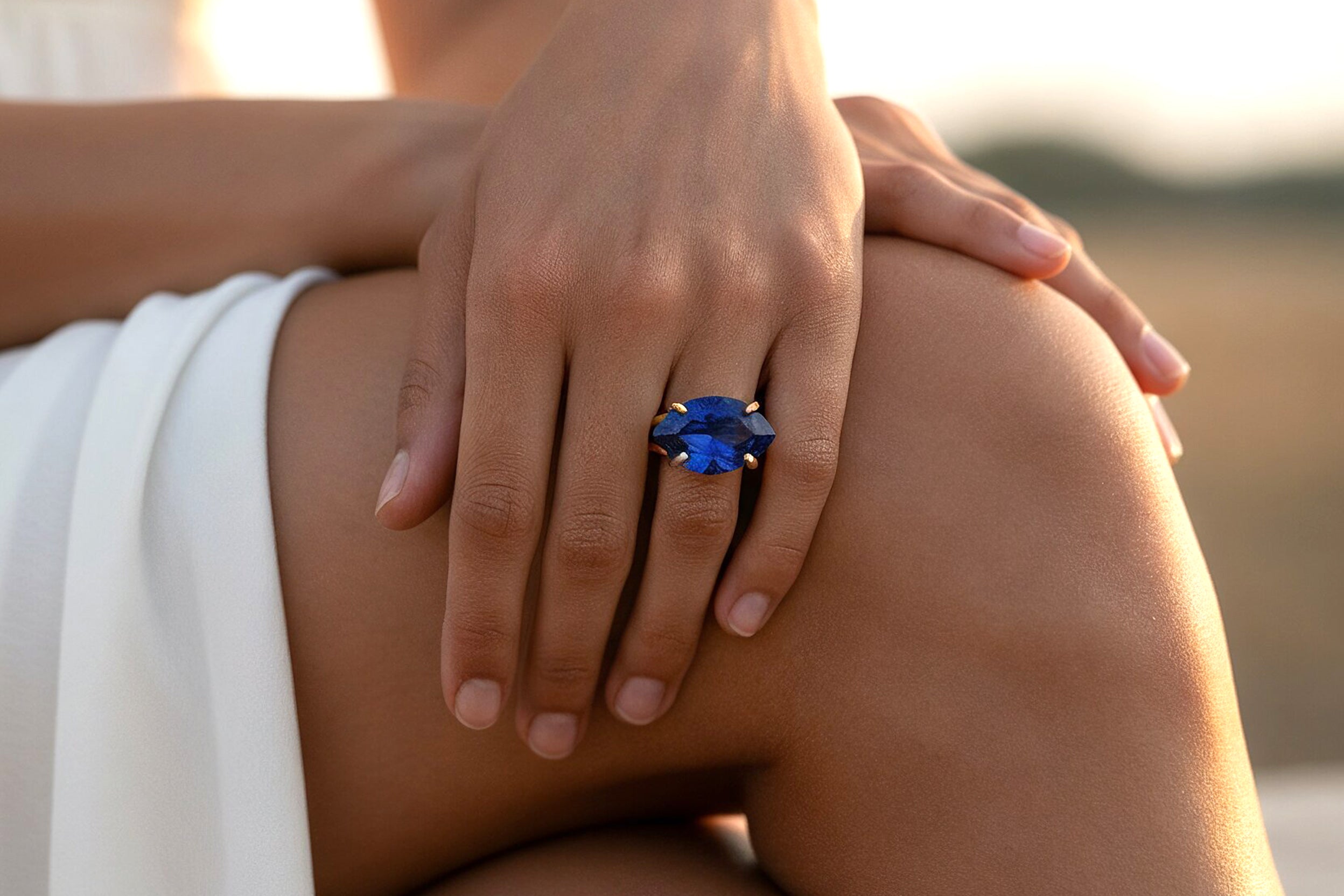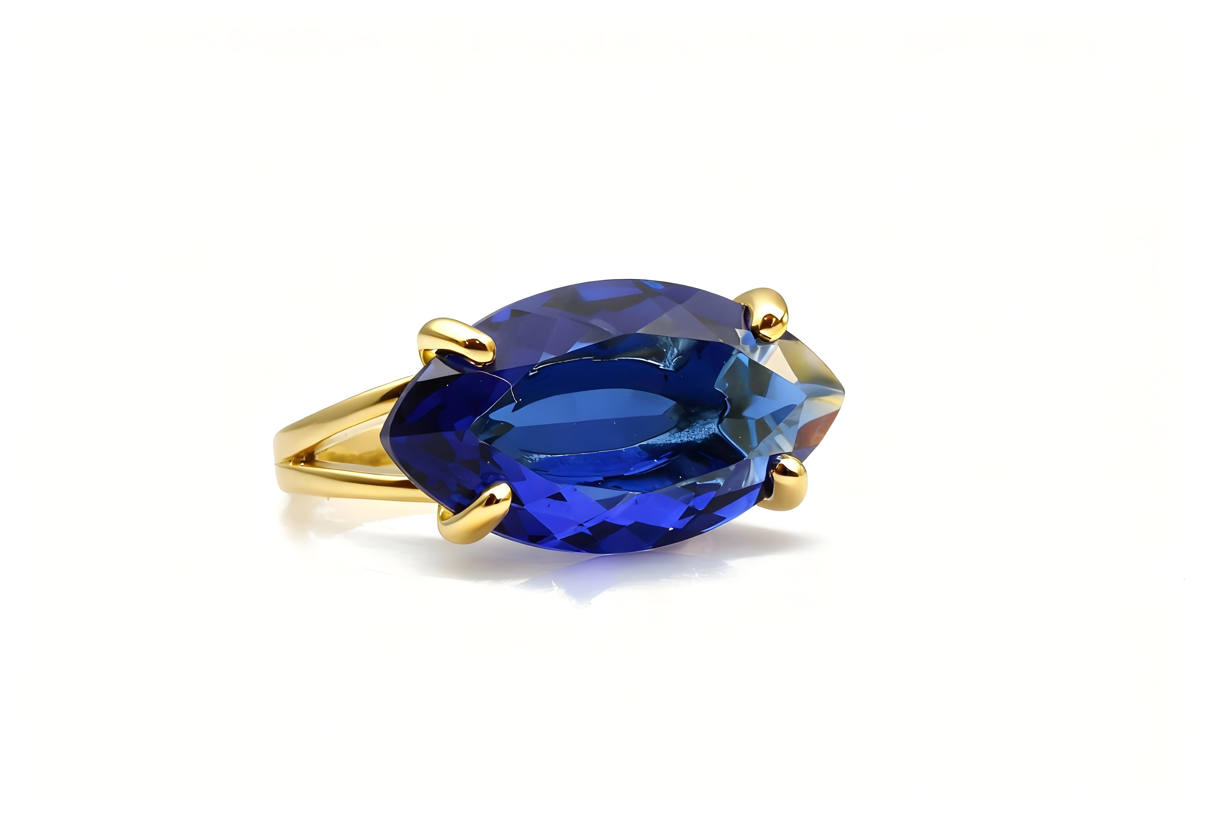This gold sapphire ring showcases a mesmerizing marquise-cut gemstone with a rich, deep blue hue. Its elongated shape and mirror-polished gold band create a striking balance between classic elegance and modern sophistication. Perfect as a September birthstone ring or a statement jewelry piece, it radiates timeless charm and luxury craftsmanship for any special occasion.