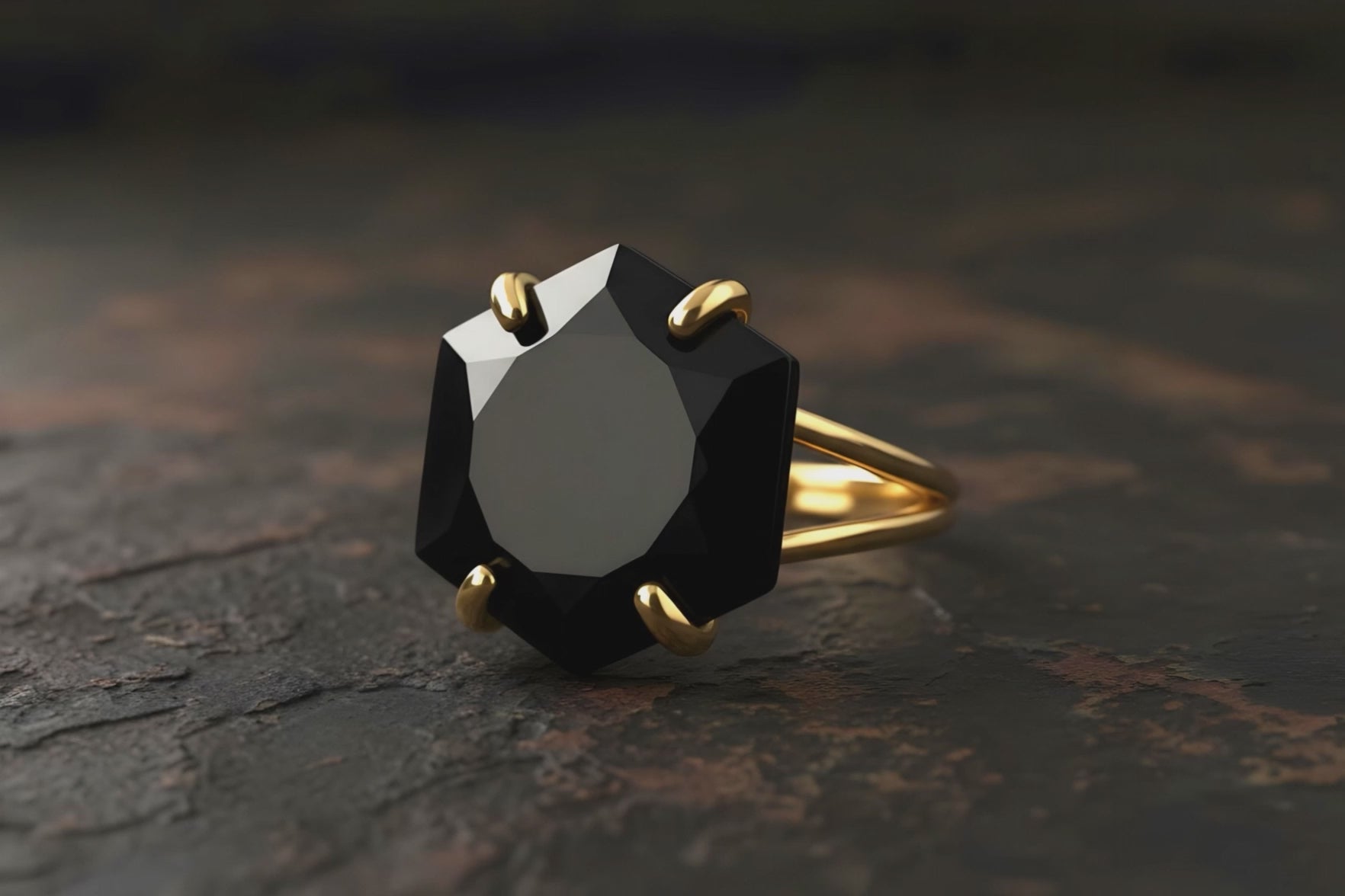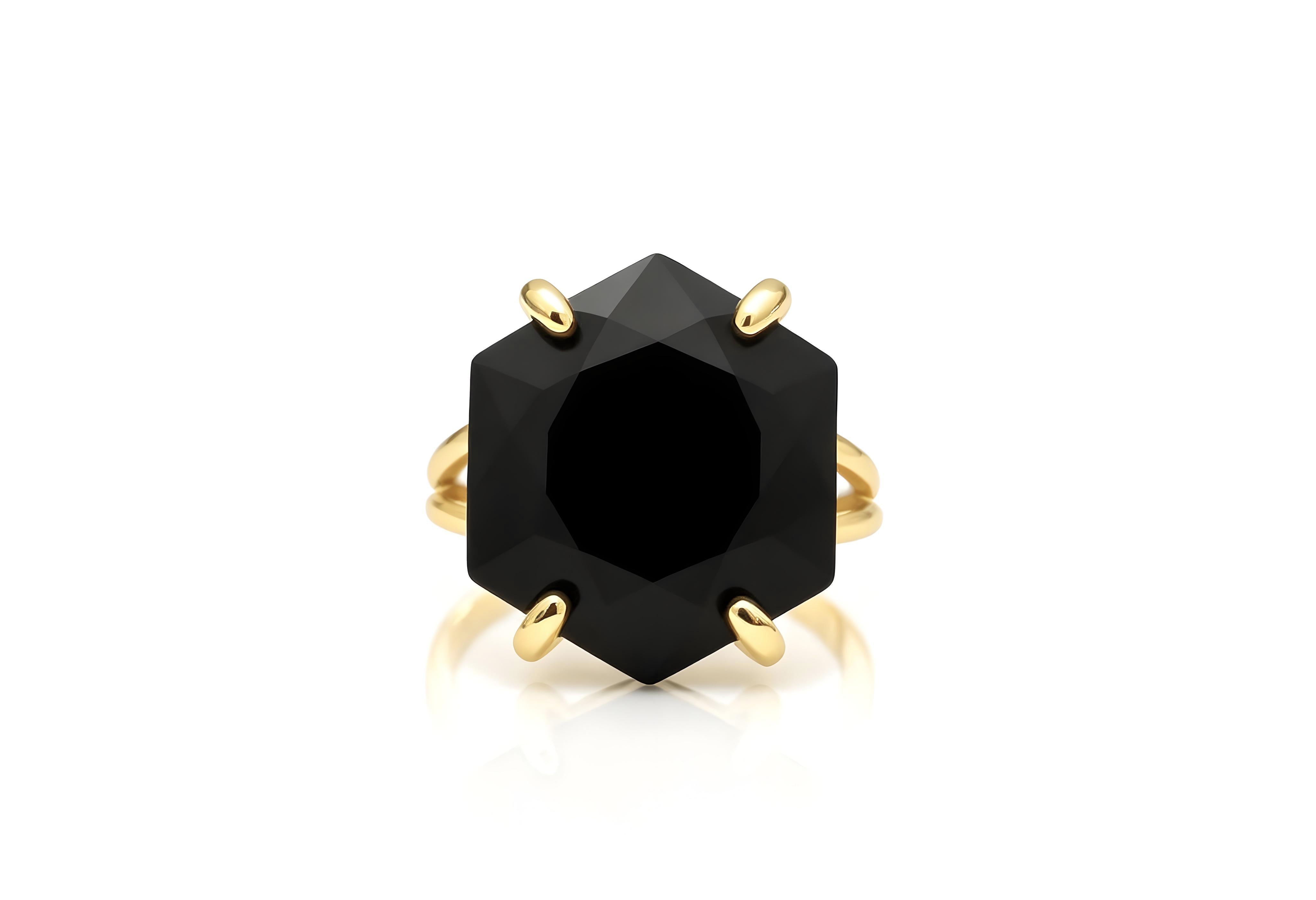 Modern Hexagon Black Onyx Ring
