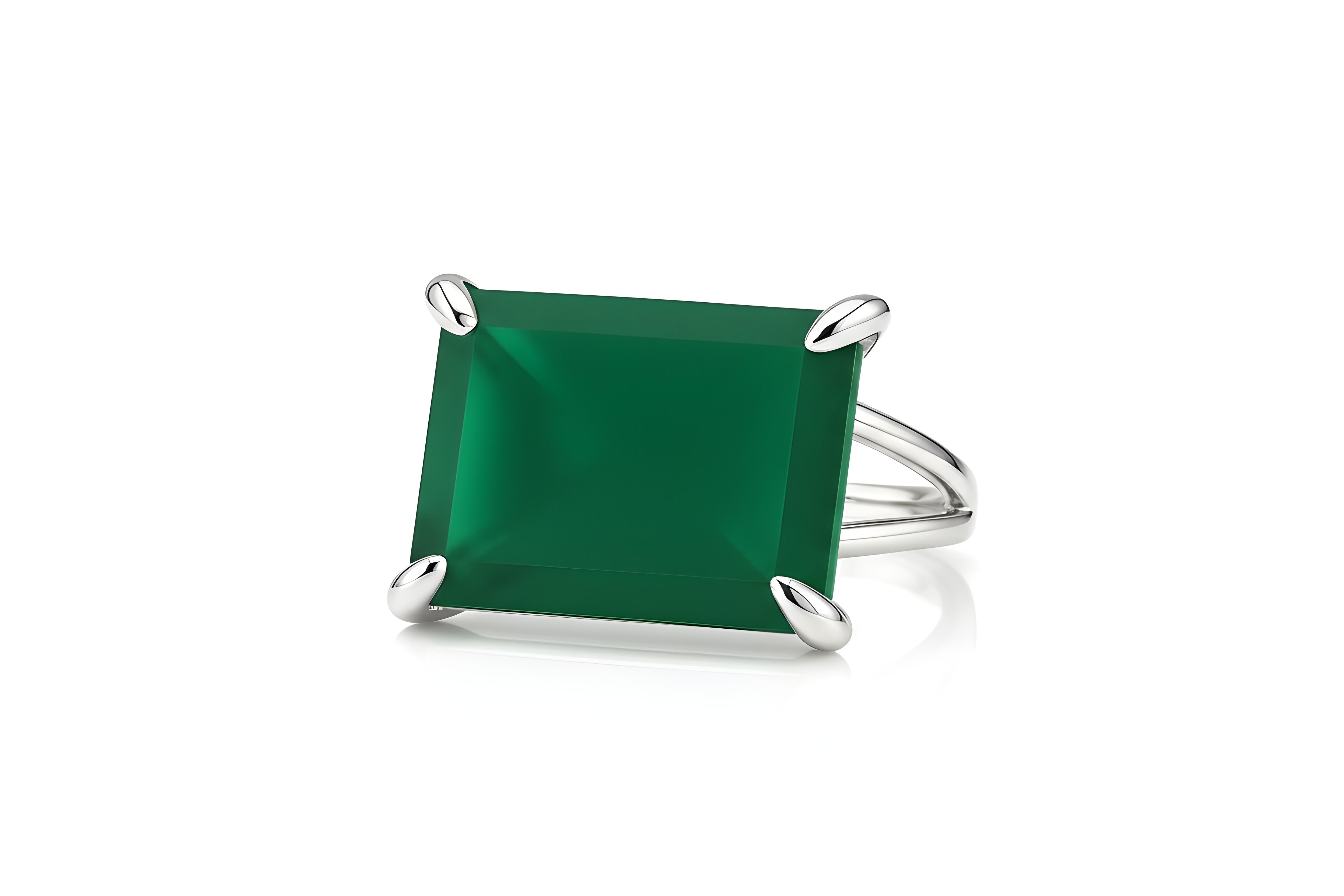 Natural Emerald Cut Gemstone Green Onyx Ring