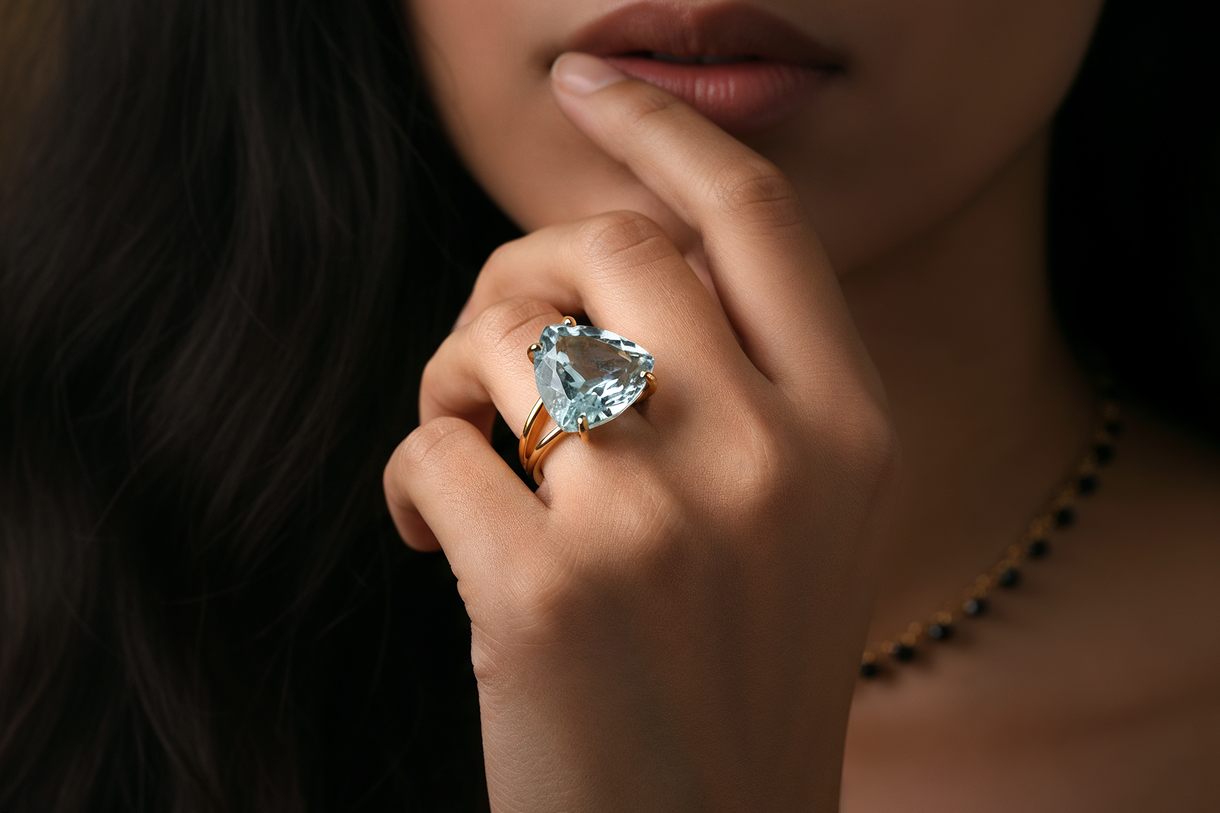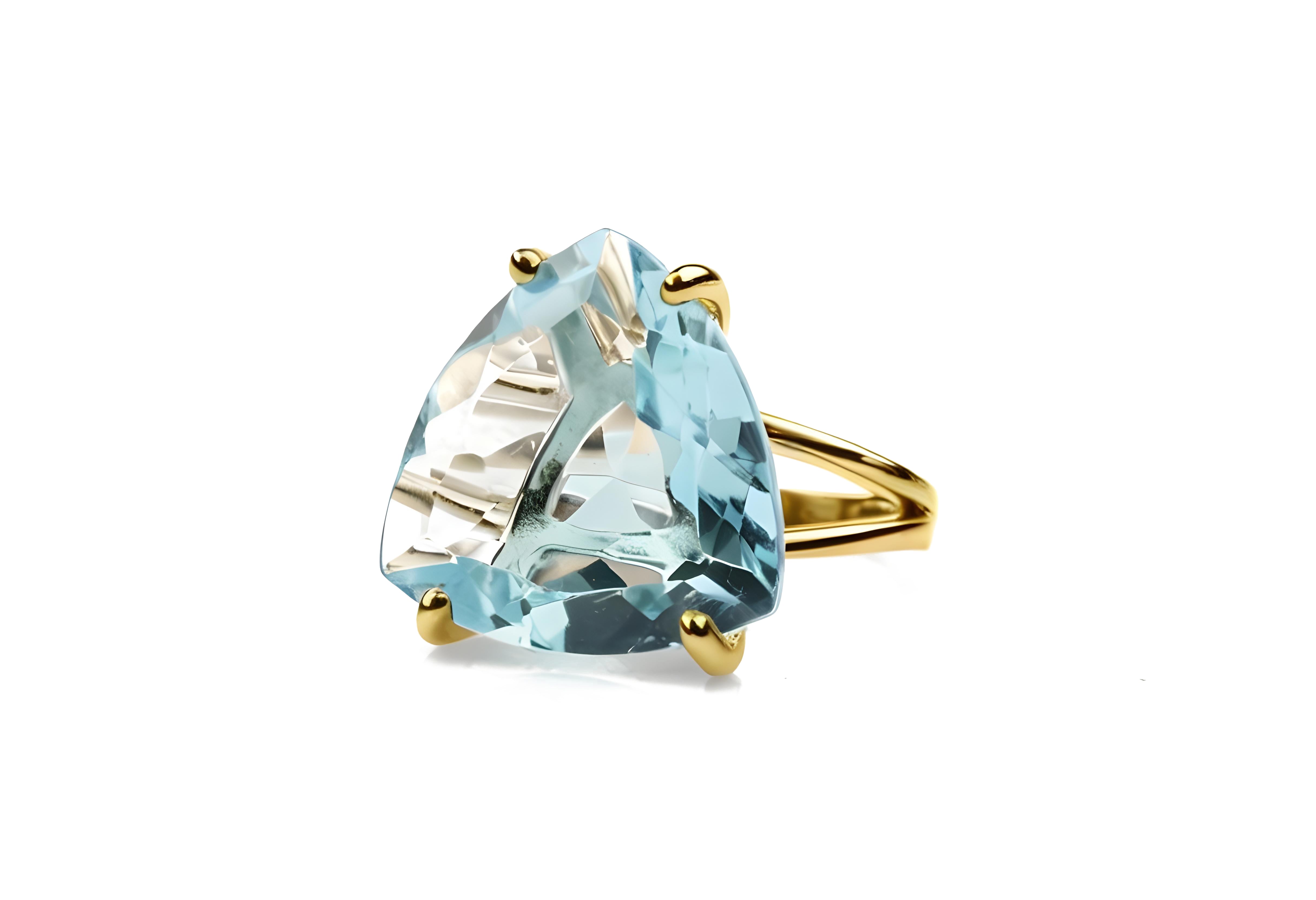 This handmade silver blue topaz ring features a dazzling trillion-cut 18mm gemstone set in polished 925 sterling silver. Its geometric shape and radiant clarity create a striking statement look, perfect for women who appreciate refined, bold jewelry that balances modernity and elegance.