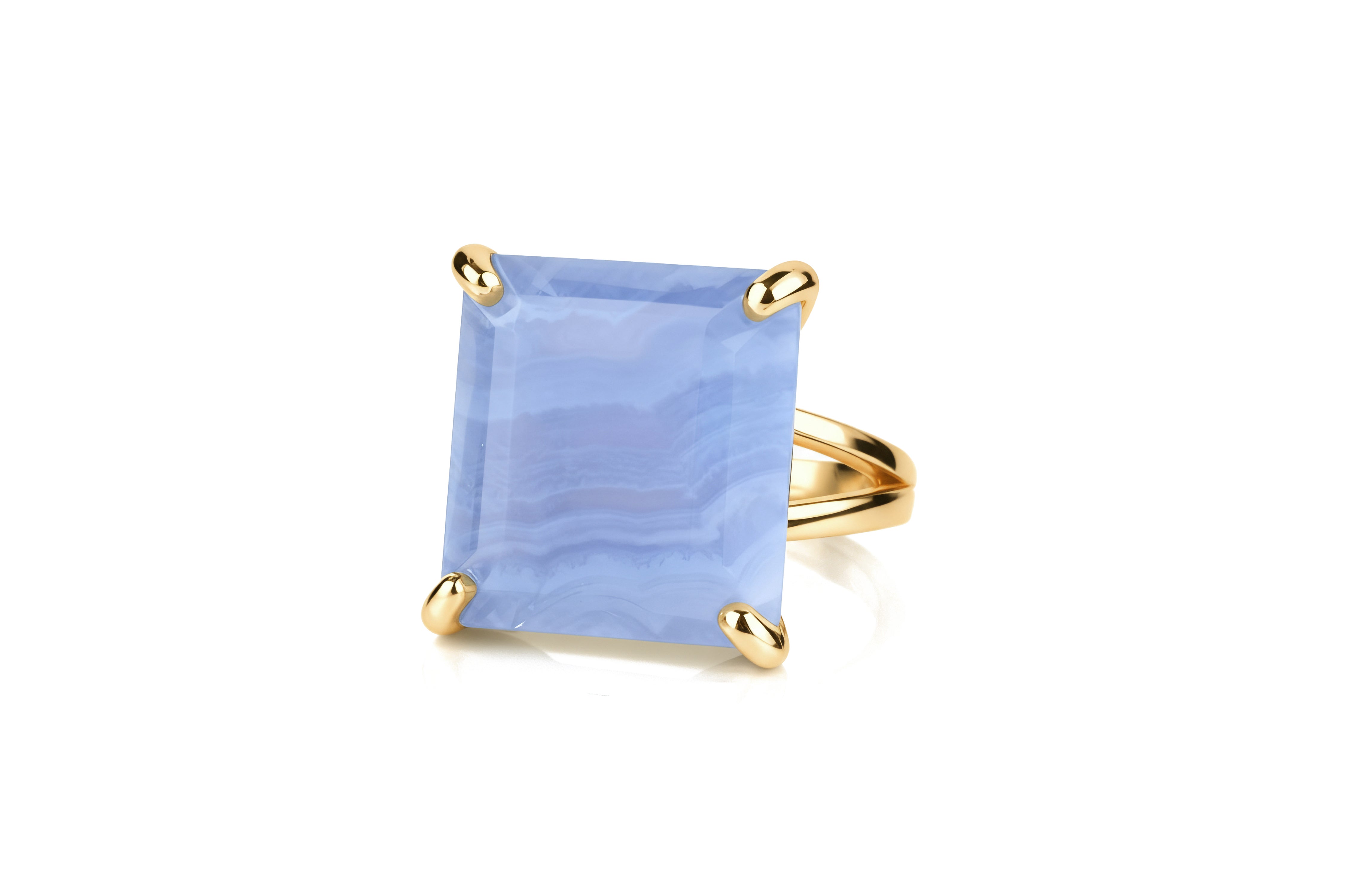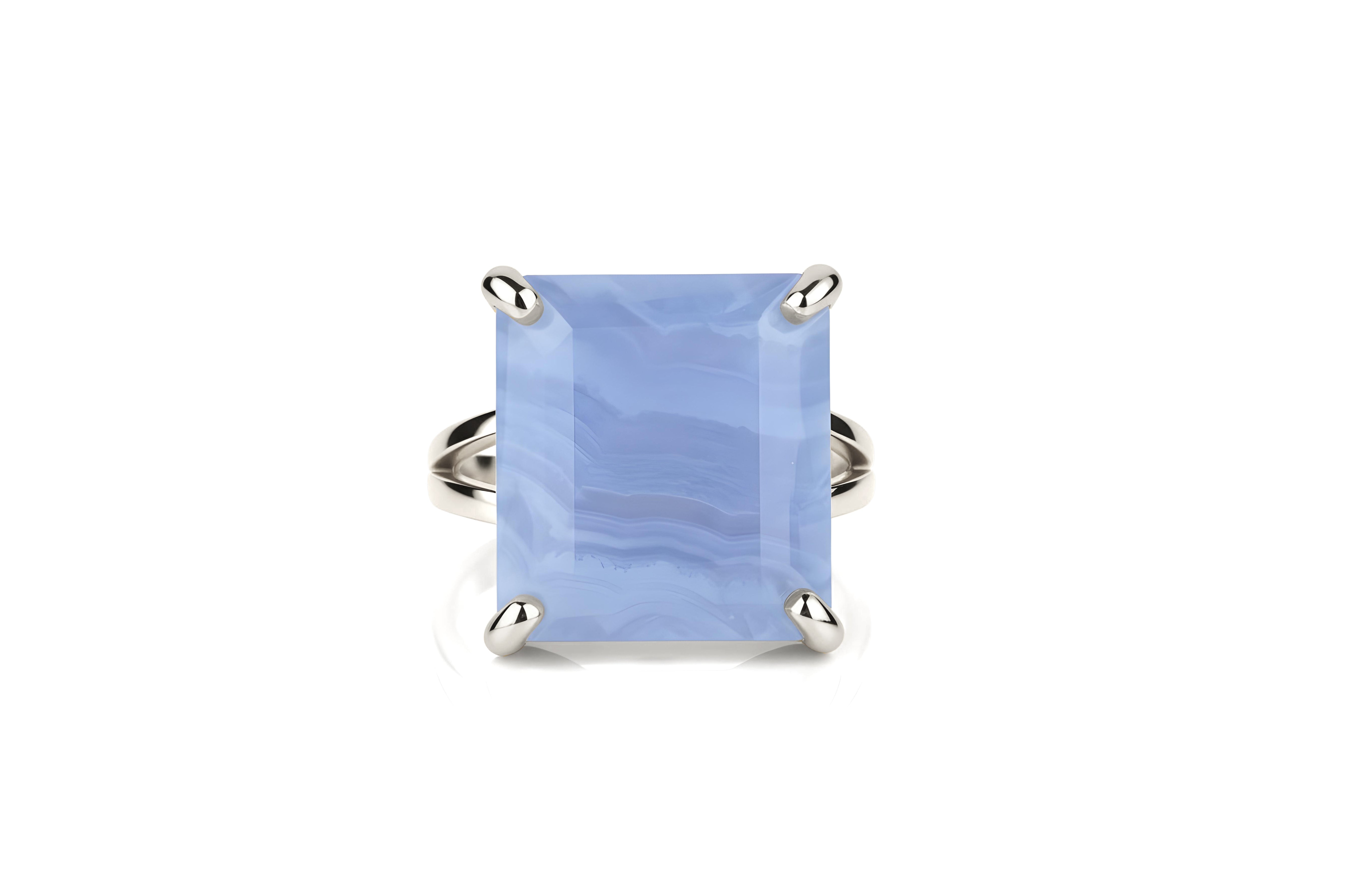 This lace agate ring features a large square-cut gemstone set in a polished sterling silver band. Crafted with a secure prong setting, it highlights the natural soft blue patterns of lace agate, a stone known for its calming and balancing qualities. With its bold design and 925 silver finish, this solitaire ring is perfect as a statement piece, cocktail ring, or meaningful gift. Handcrafted with care, it’s both stylish and timeless.