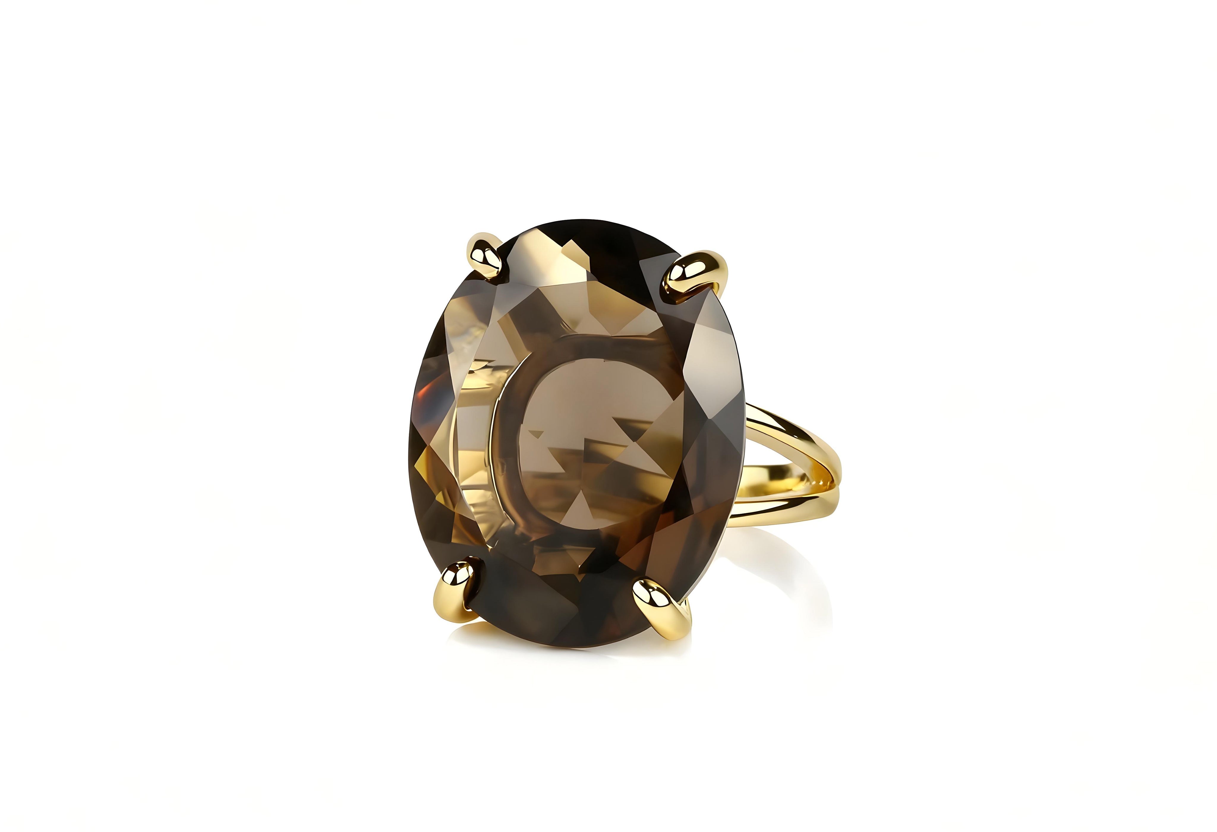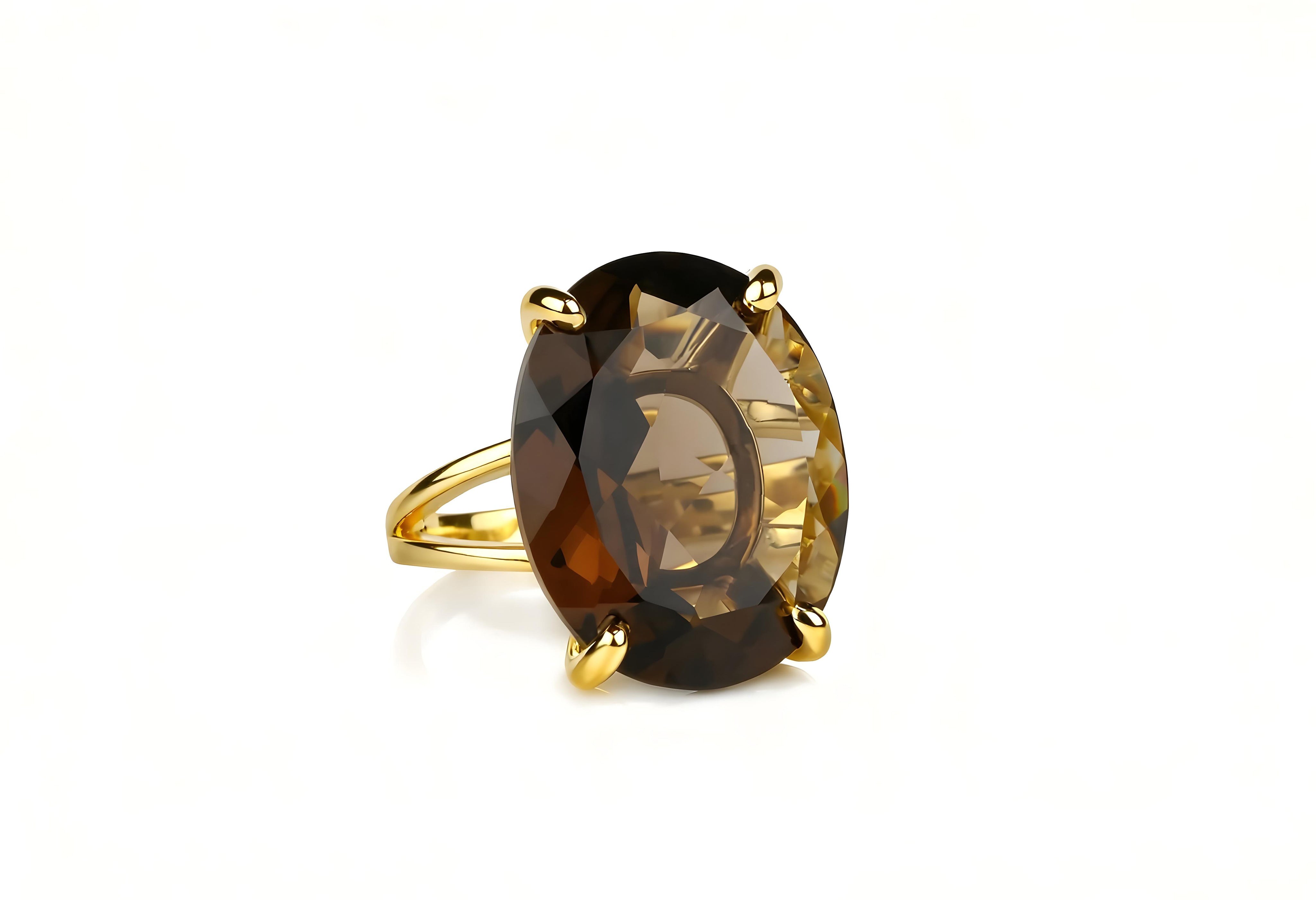 This stunning smoky quartz ring features an oval-cut faceted gemstone set in lustrous 14k gold vermeil. The deep brown tones of smoky quartz bring warmth and sophistication, perfectly paired with a sleek gold band. Handcrafted with precision, this November birthstone ring is both modern and timeless — ideal for statement wear or gifting.