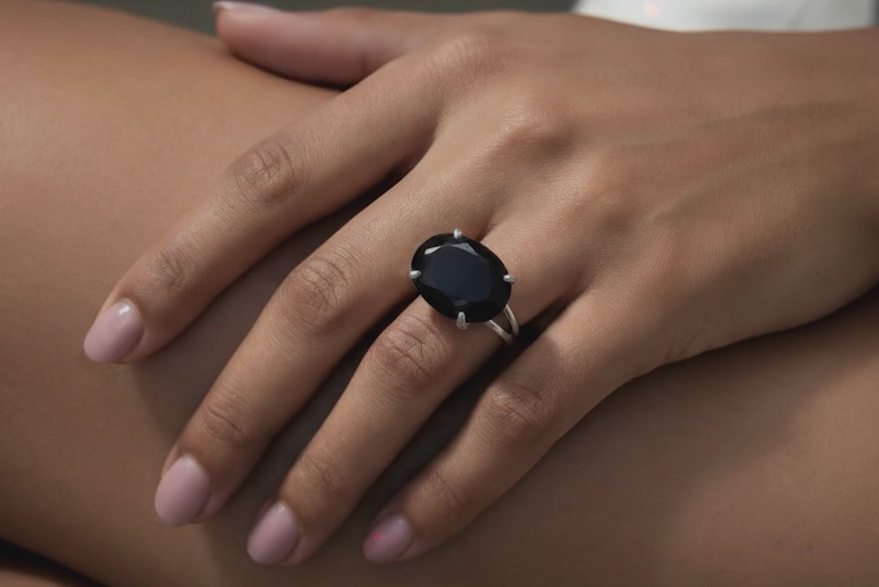 This sterling silver black onyx ring features a faceted oval gemstone set in a classic prong design. The deep black stone adds bold elegance, while the polished 925 silver band provides timeless appeal. Designed as a cocktail-style statement piece, it is versatile enough for everyday wear or special occasions. Handcrafted with care, this gemstone ring is perfect for women who love sophisticated jewelry and makes a thoughtful gift.