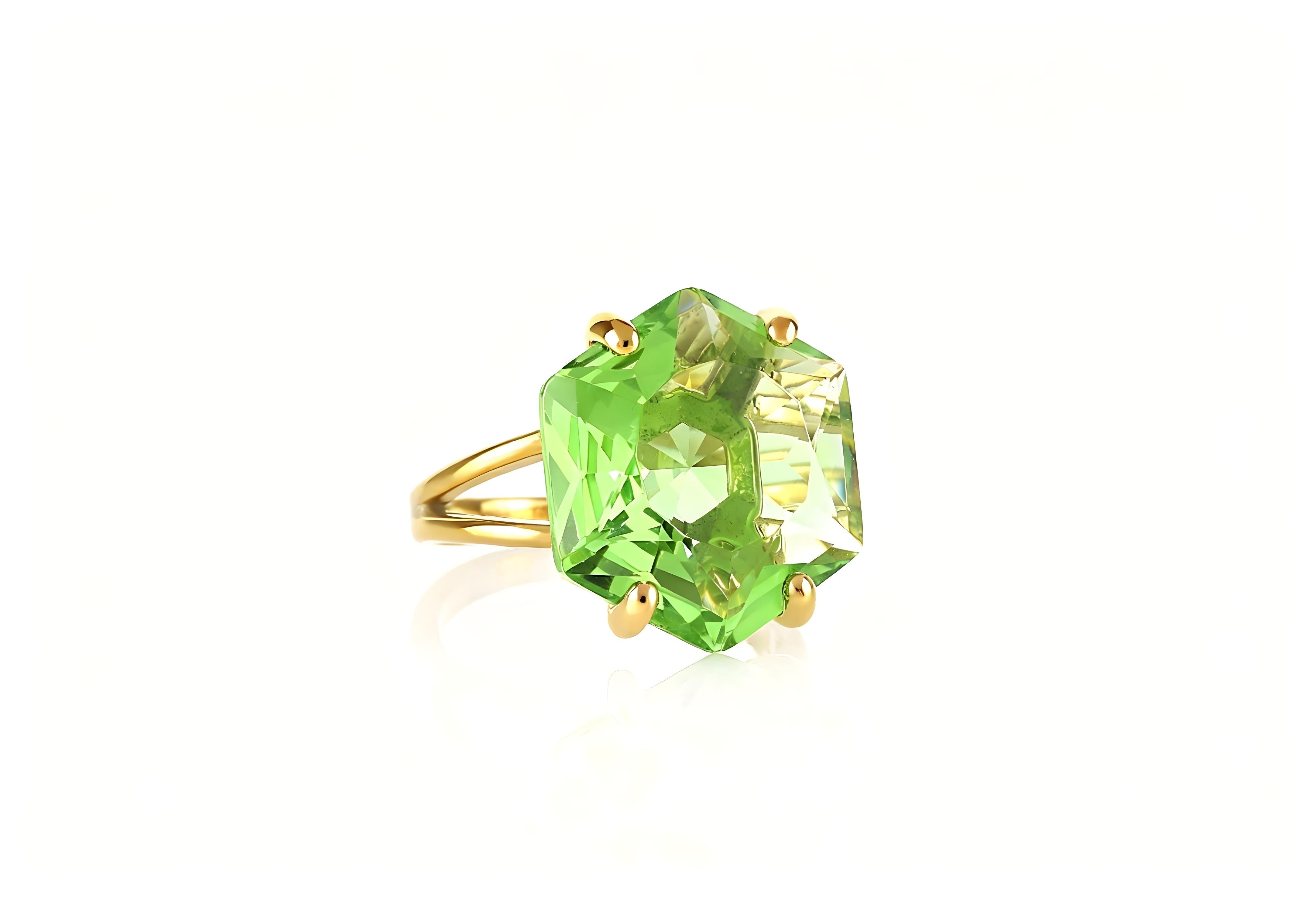 Green Tourmaline Hexagon Cut Gemstone Gold Ring