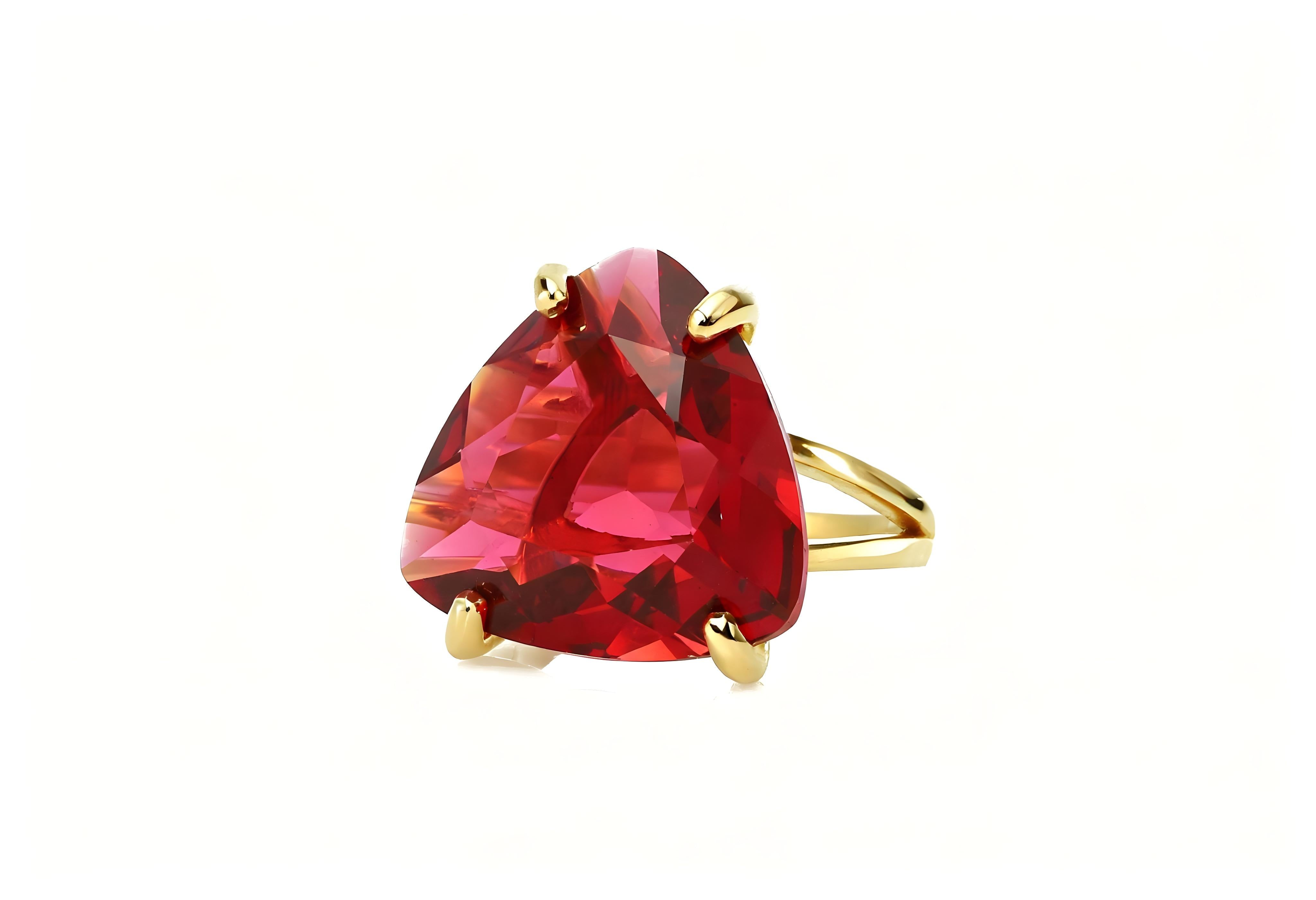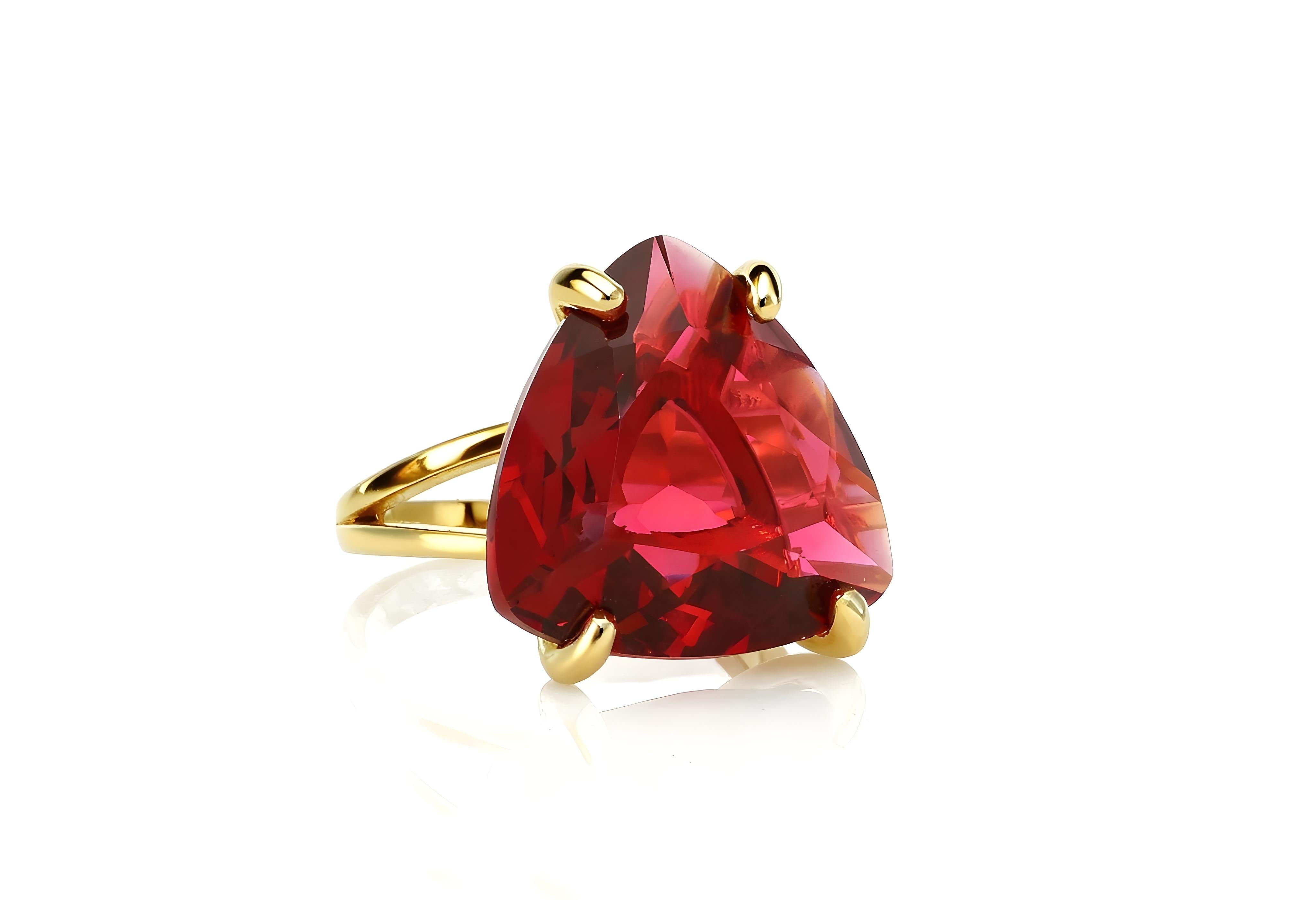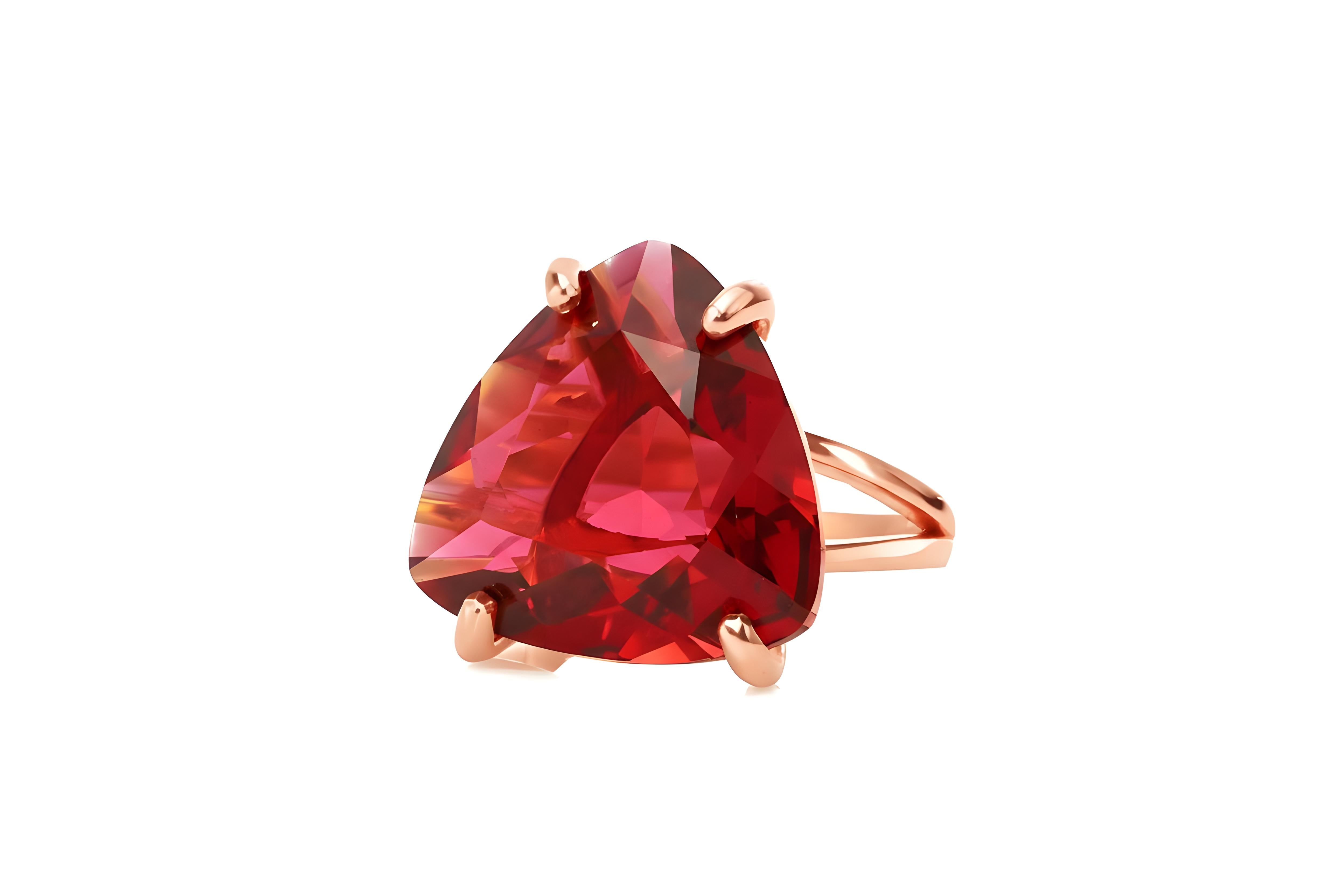 This trillion-cut pink tourmaline ring radiates warmth and brilliance, beautifully set in a polished 14k gold band. The faceted triangular gemstone reflects light from every angle, symbolizing balance and love. Perfect as a meaningful October birthstone gift or a striking statement piece for any jewelry collection.