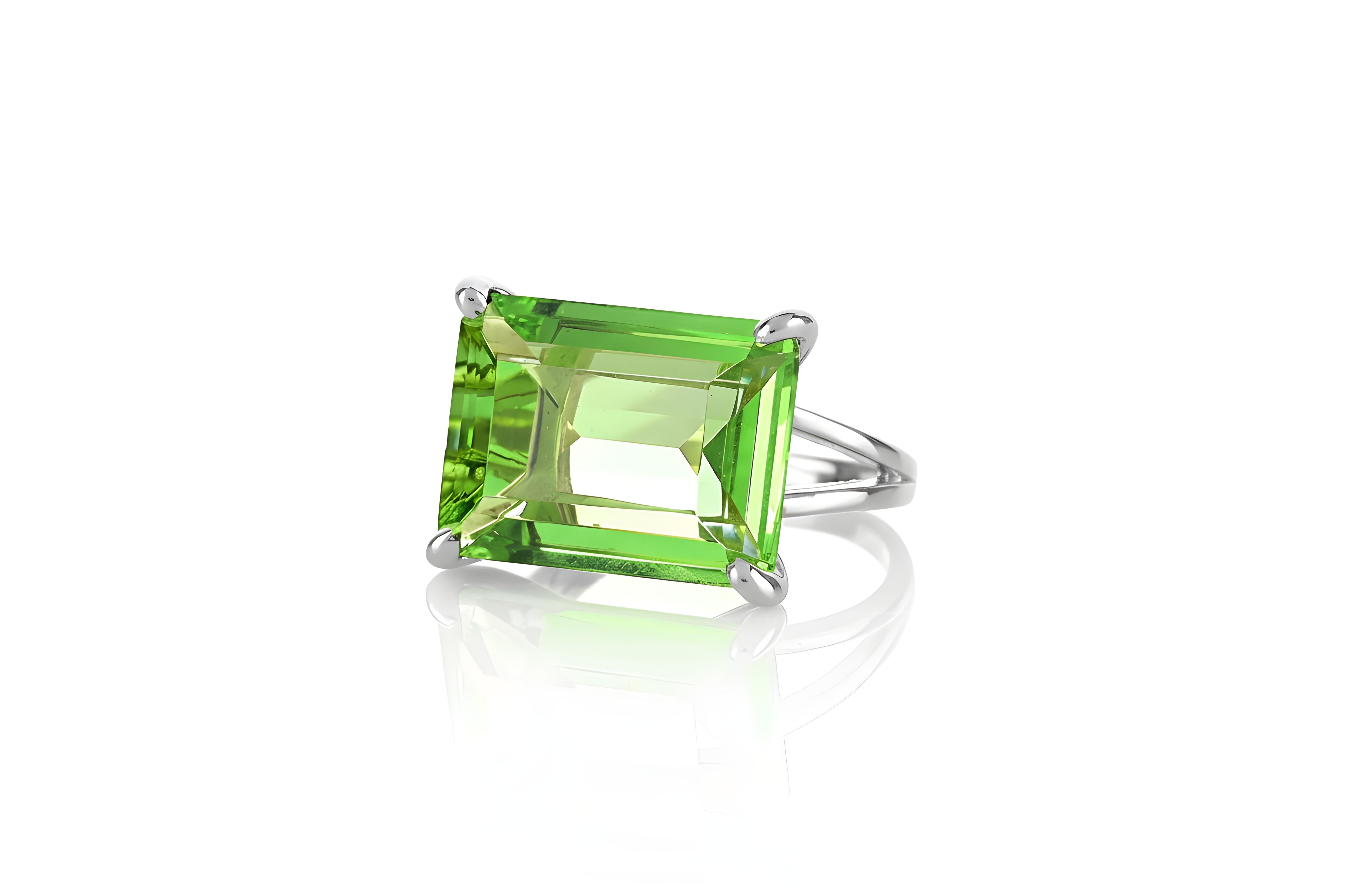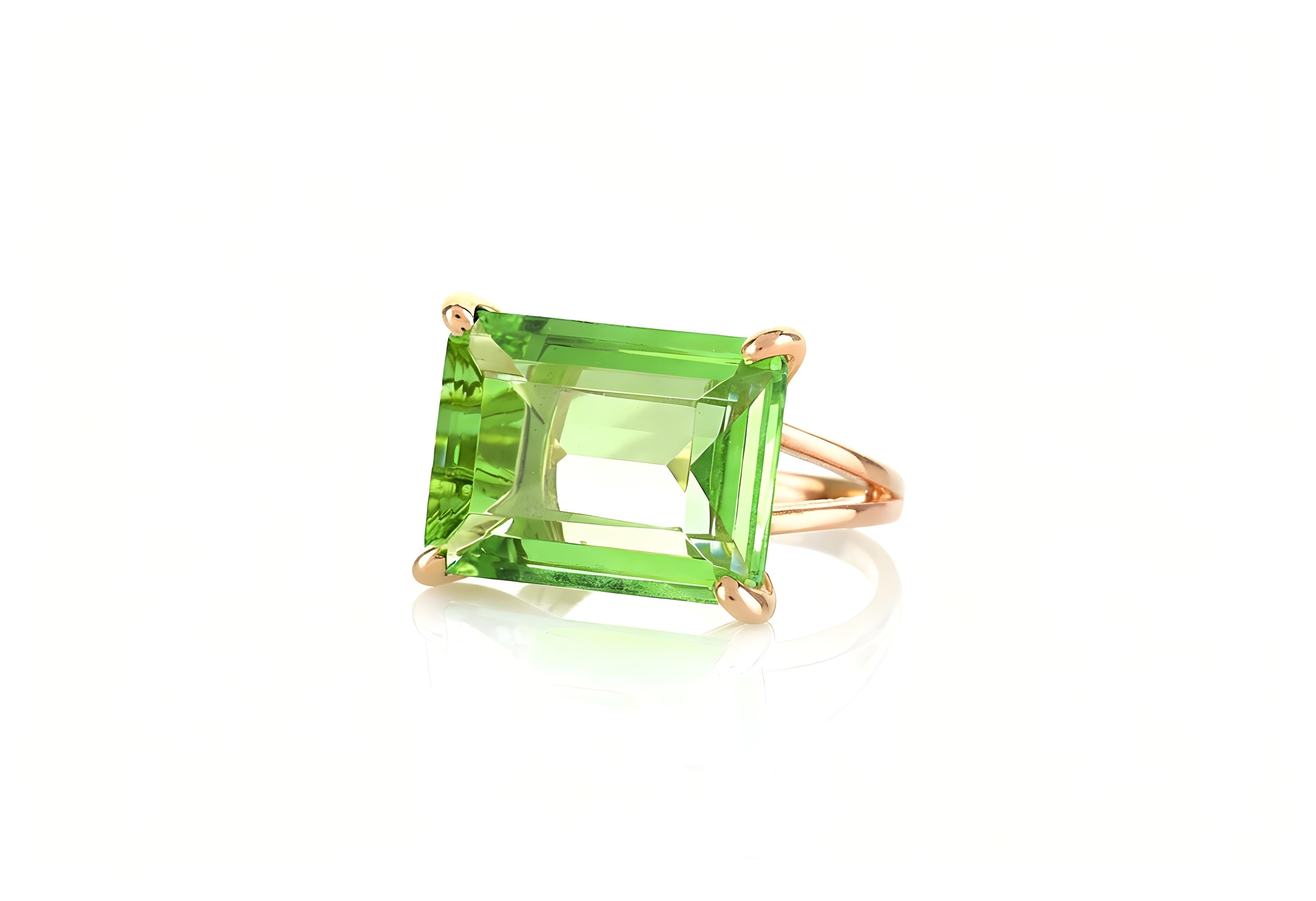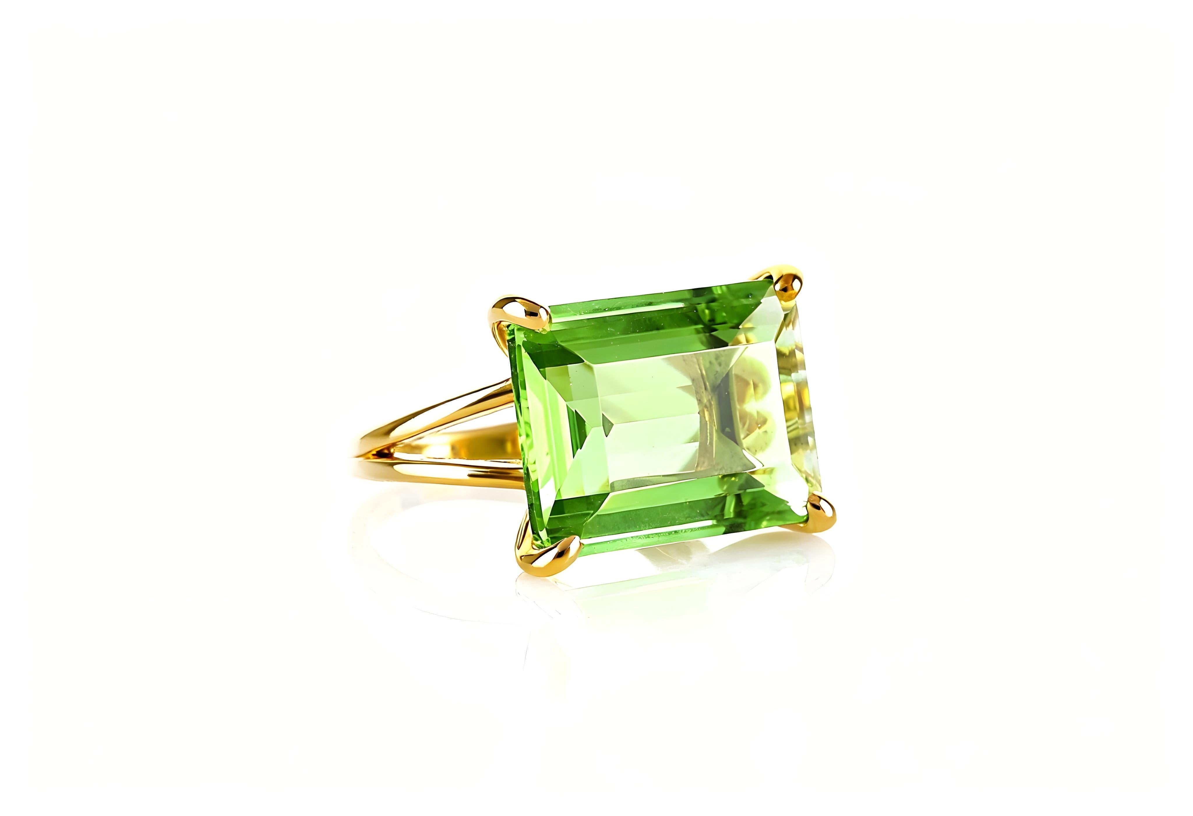 Rectangle Cut Green Tourmaline 14k Gold Ring