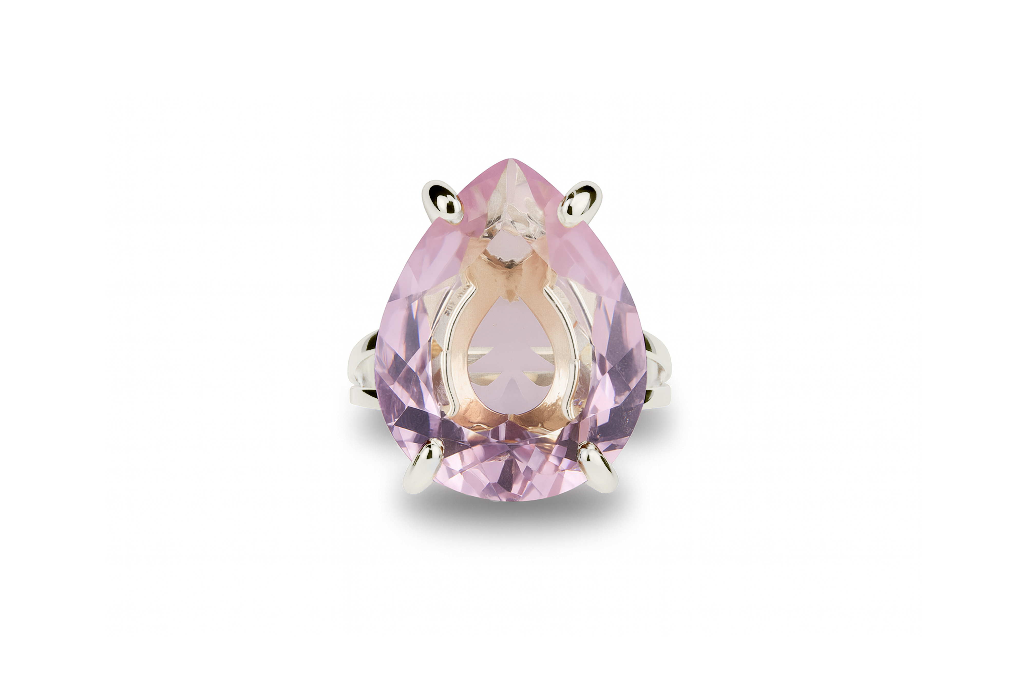 This silver quartz ring features a pear-shaped rose quartz gemstone set in a polished silver band. Known as the January birthstone, rose quartz is the stone of love, compassion, and self-care. Its bold teardrop cut creates a true statement piece while retaining timeless elegance. Handcrafted with care, this gemstone ring is perfect as a self-love reminder, a meaningful gift, or a striking addition to any jewelry collection.